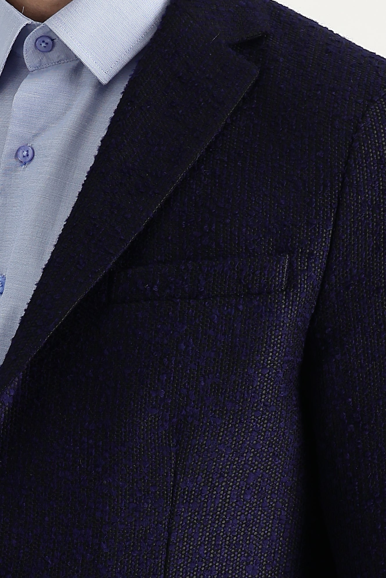 Koyu Lacivert Regular Fit Desenli Yünlü Ceket