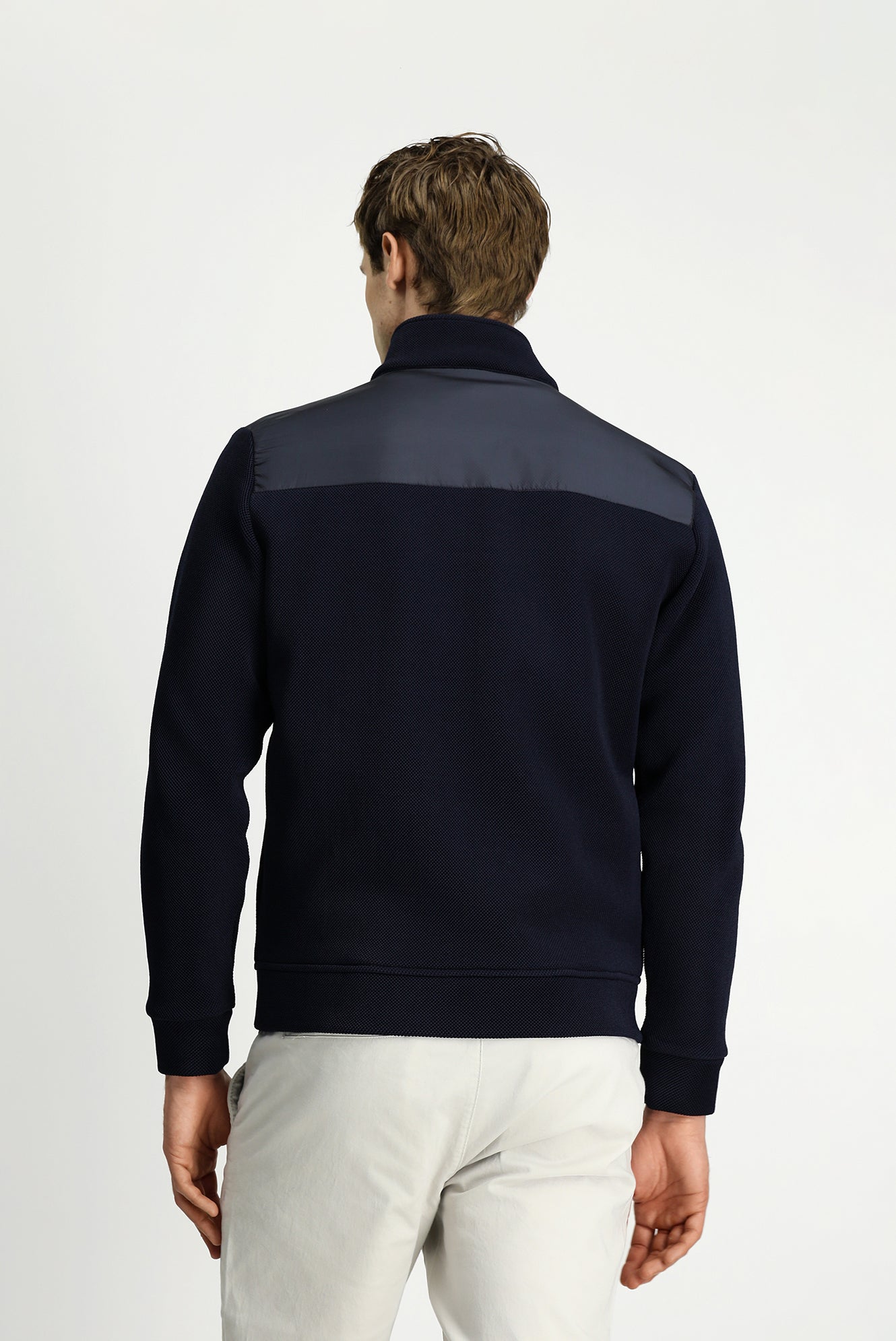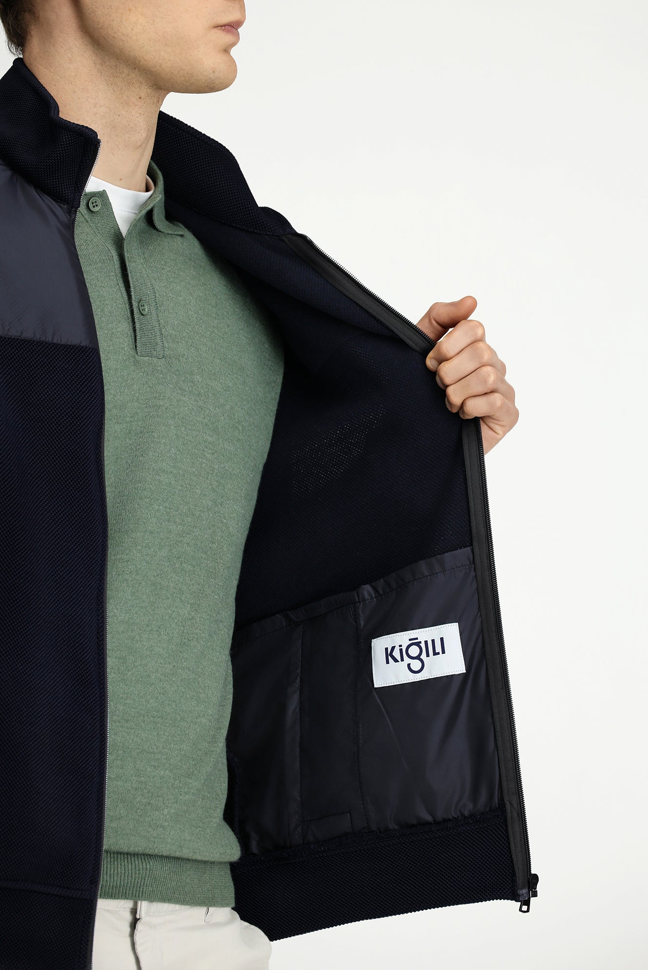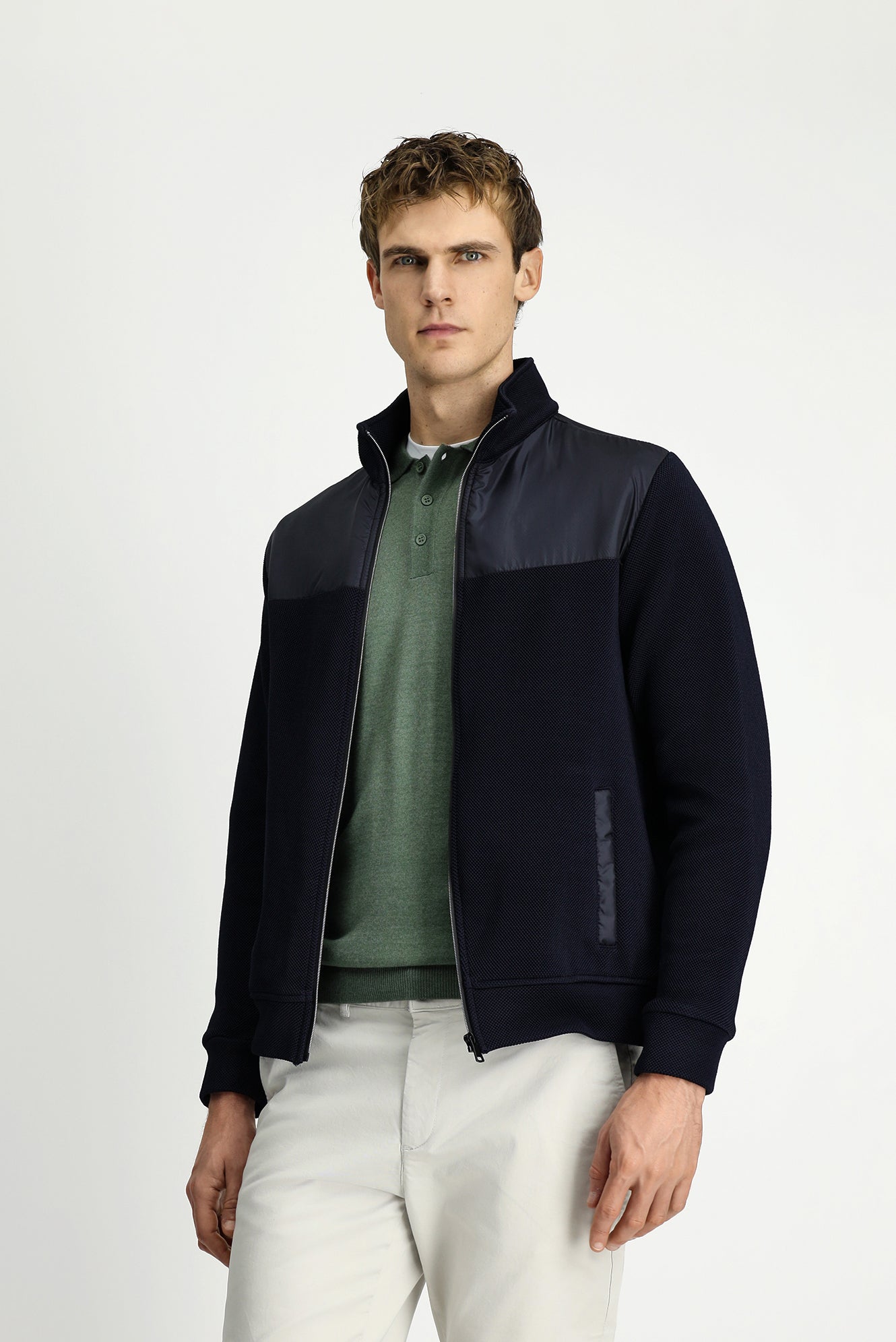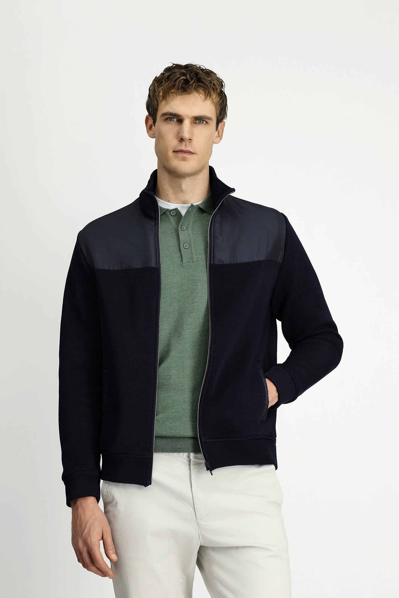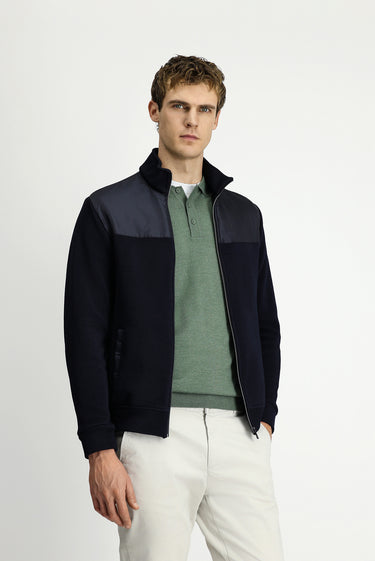Koyu Lacivert Dik Yaka Scuba Detaylı Fermuarlı Örme Mont