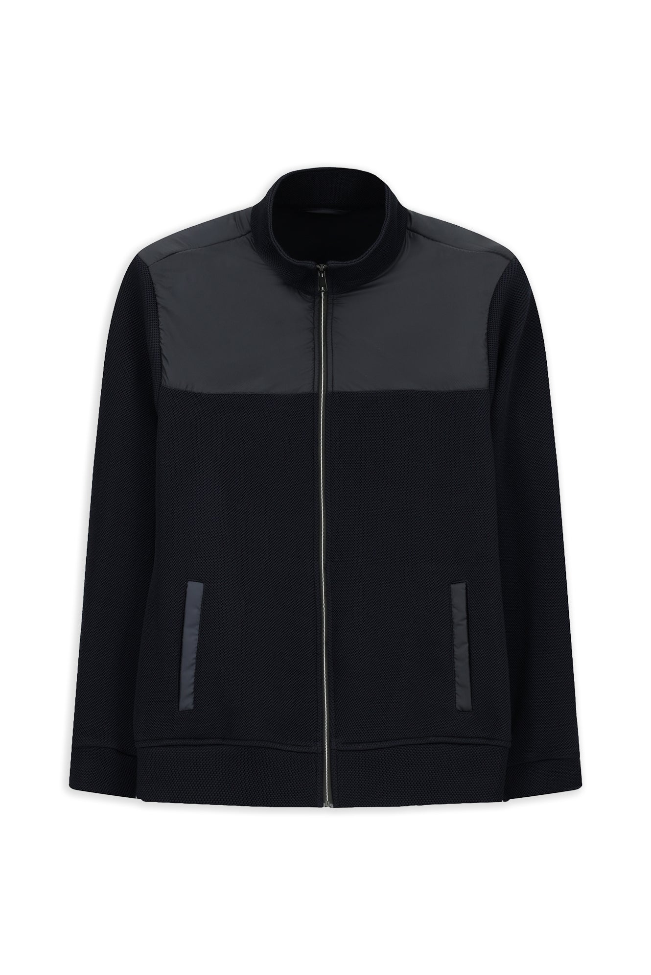 Koyu Lacivert Regular Fit Dik Yaka Scuba Detaylı Bonded Mont