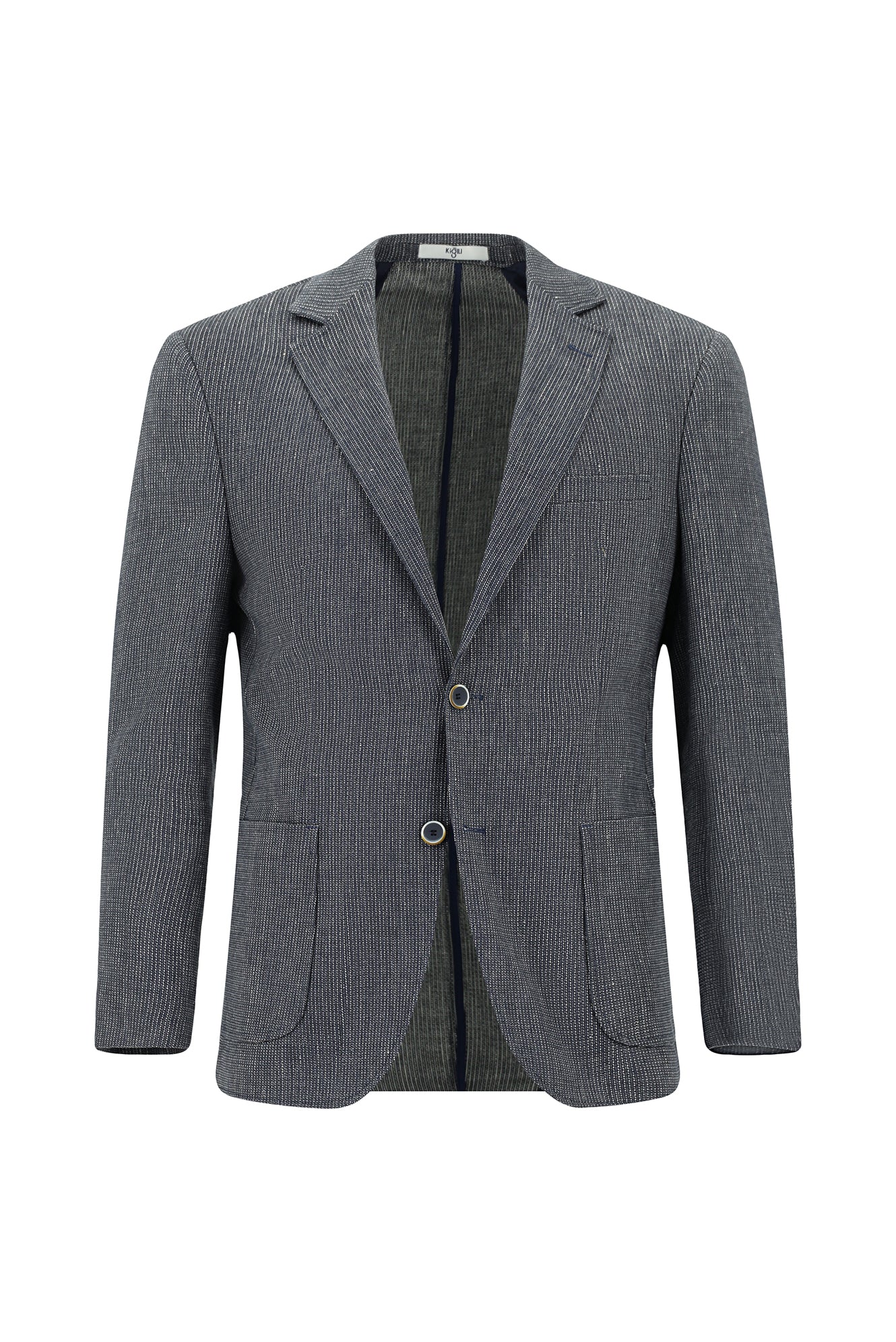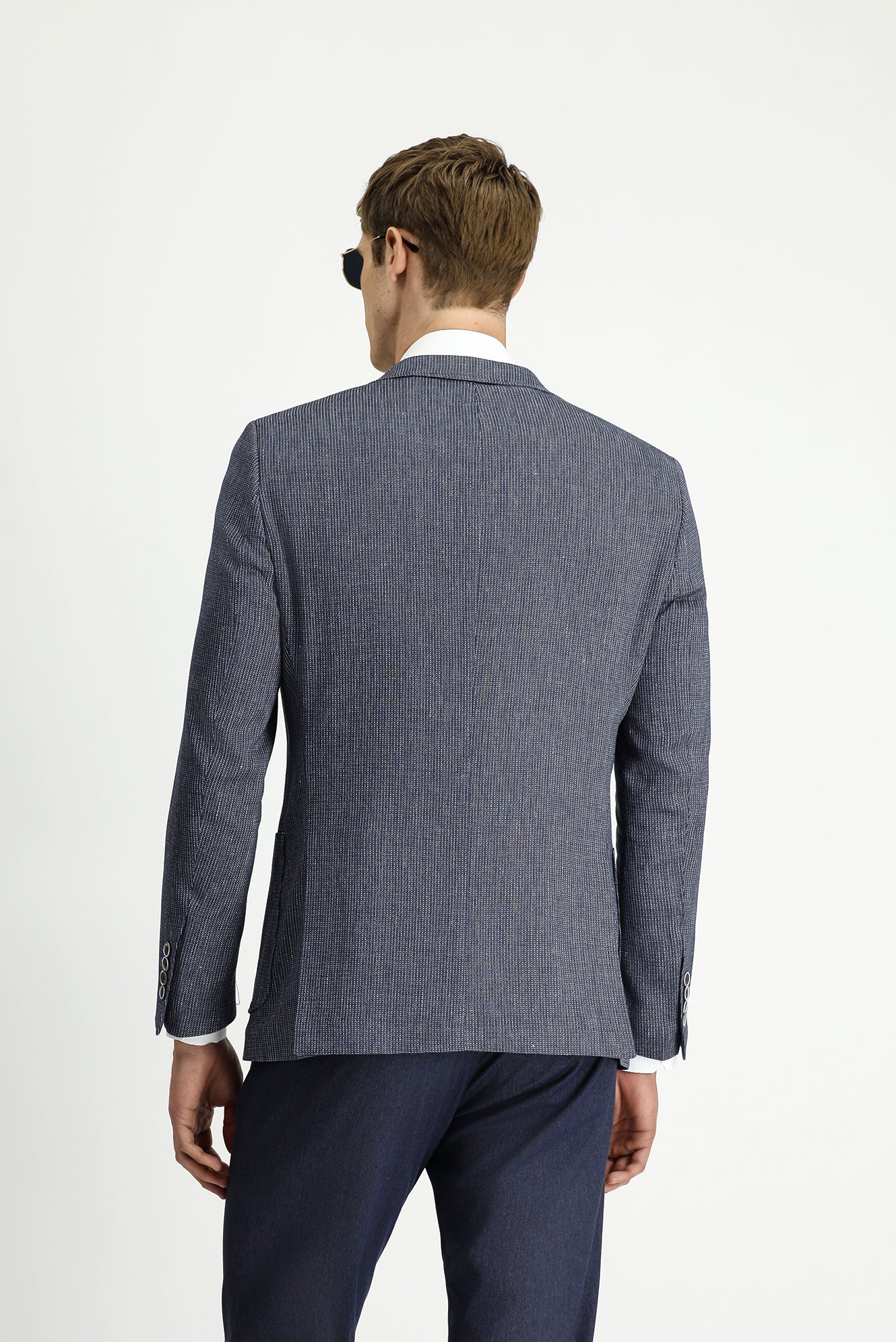 Koyu Lacivert Regular Fit Keten Karışımlı Çizgili Spor Ceket