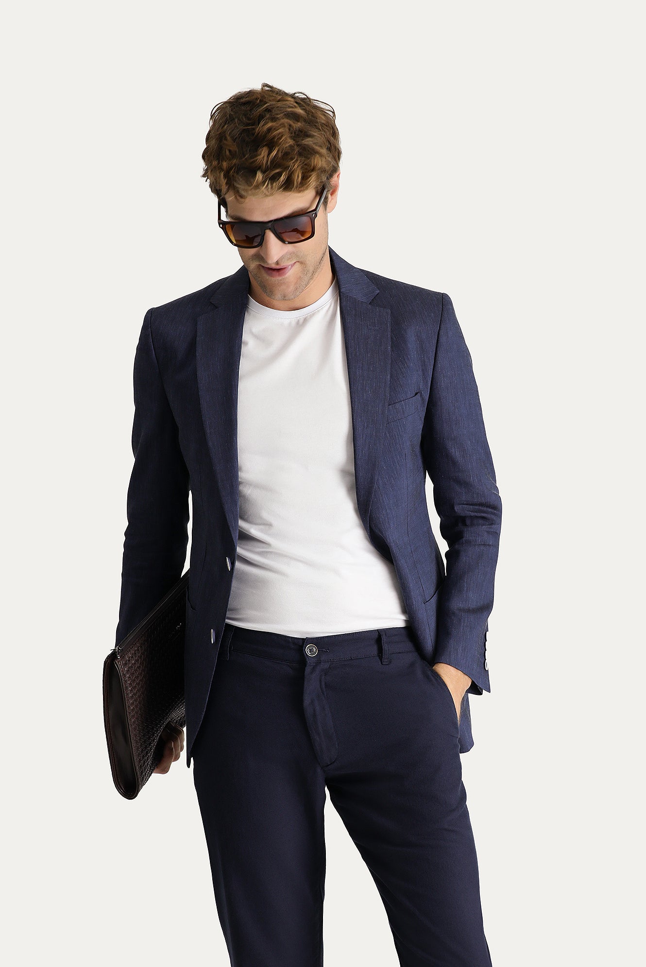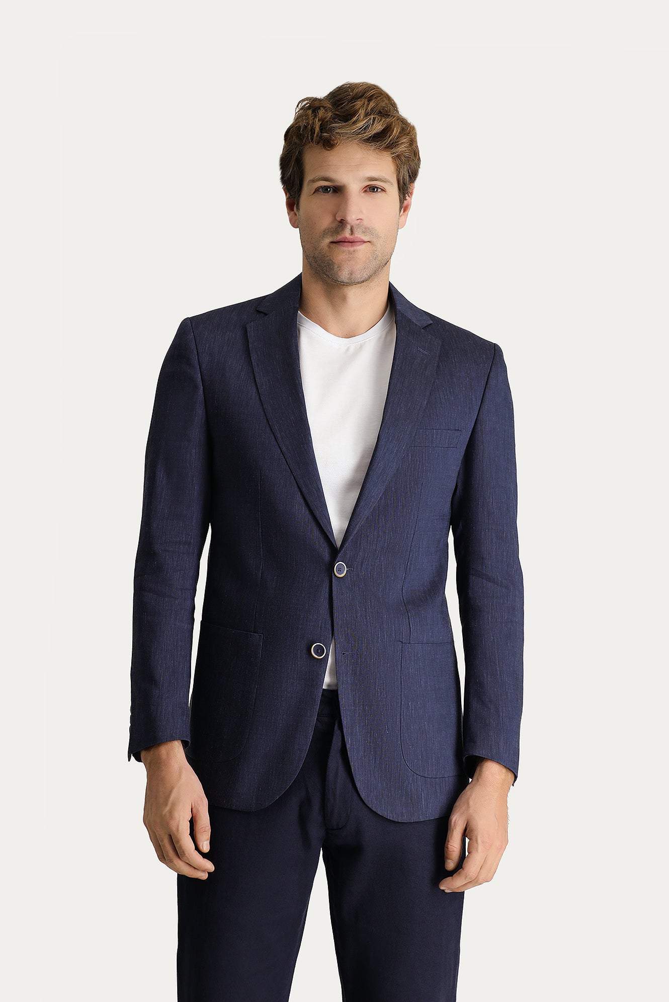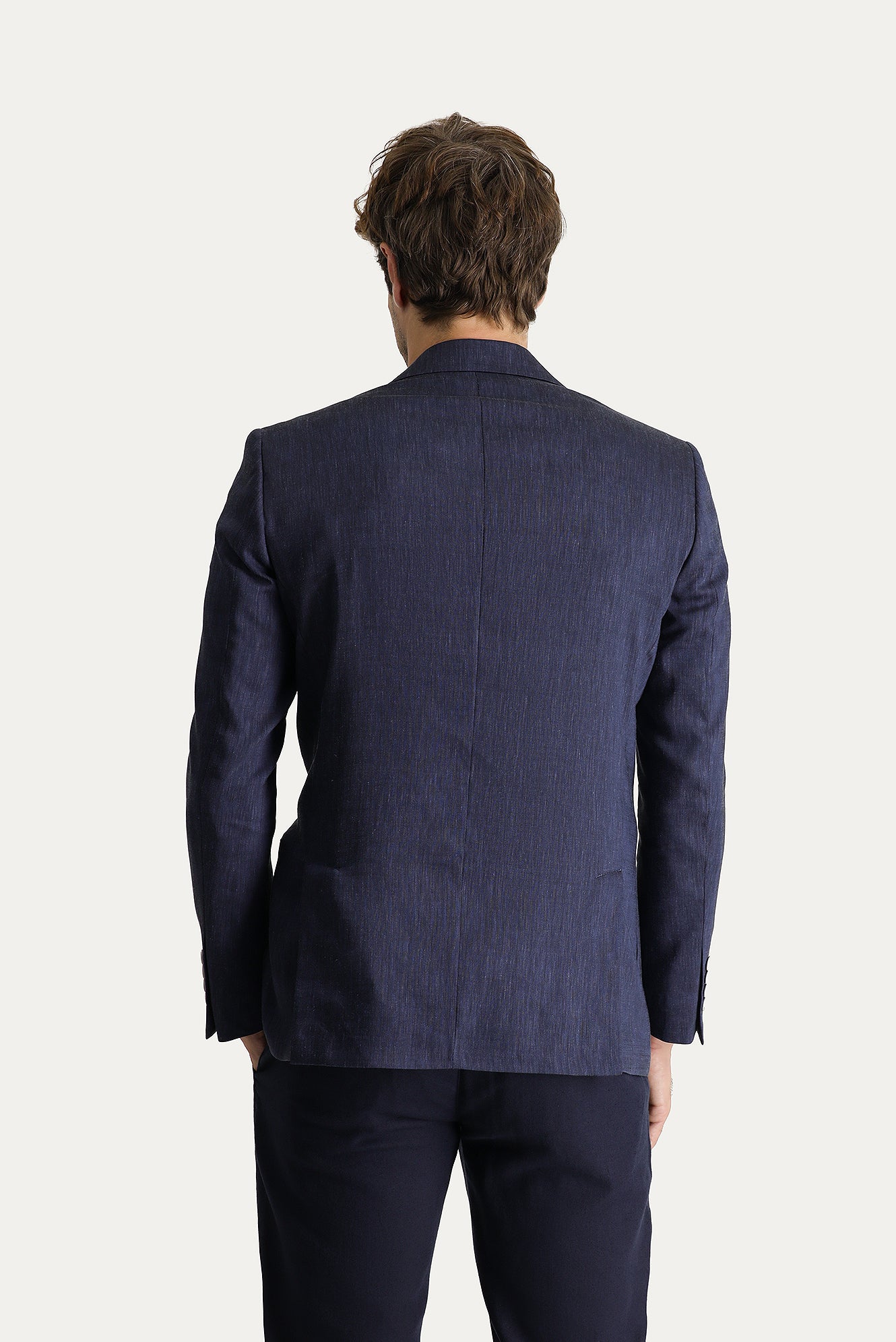Koyu Lacivert Regular Fit Keten Karışımlı Spor Ceket