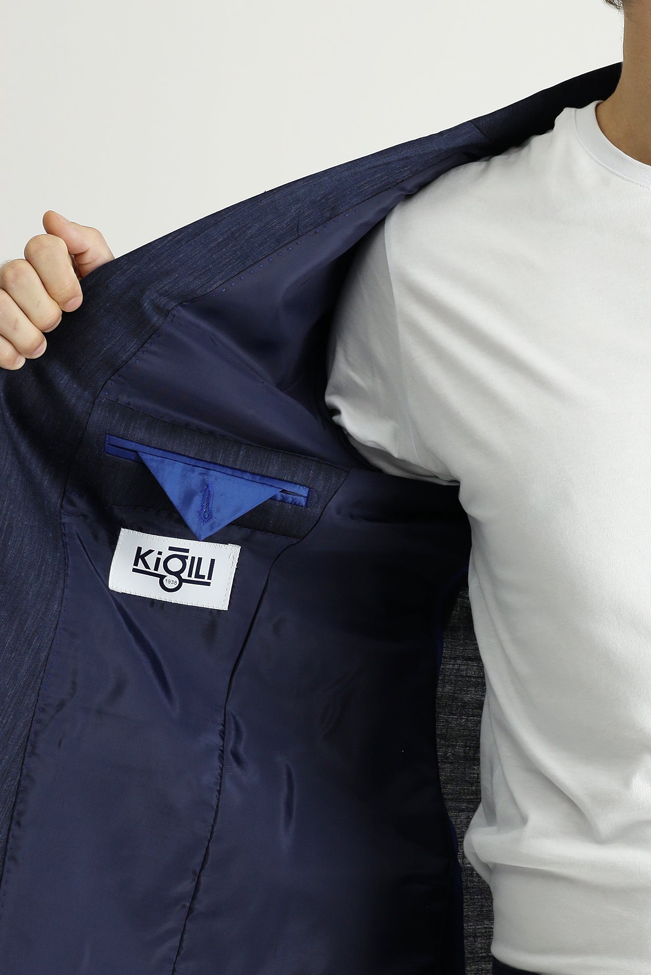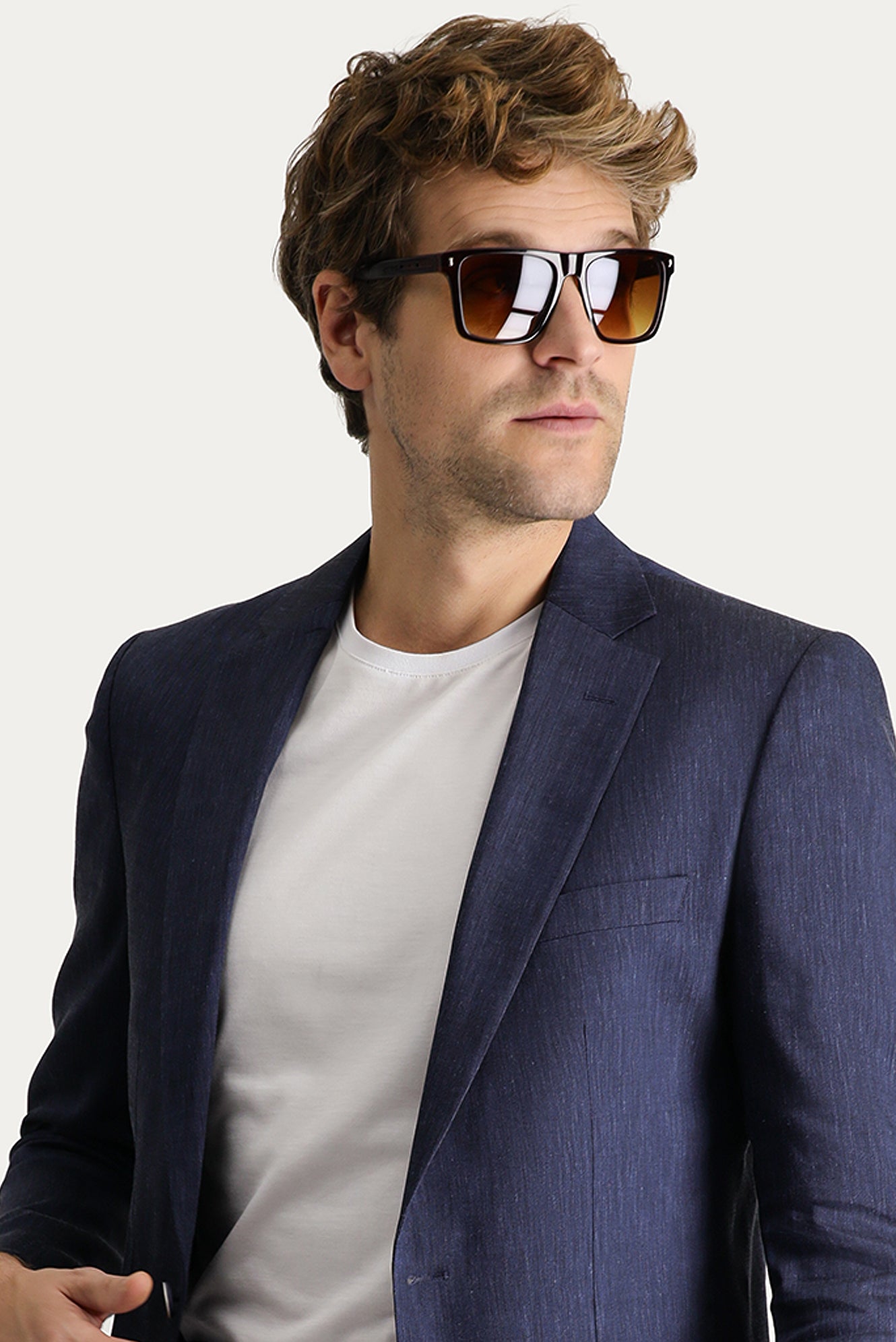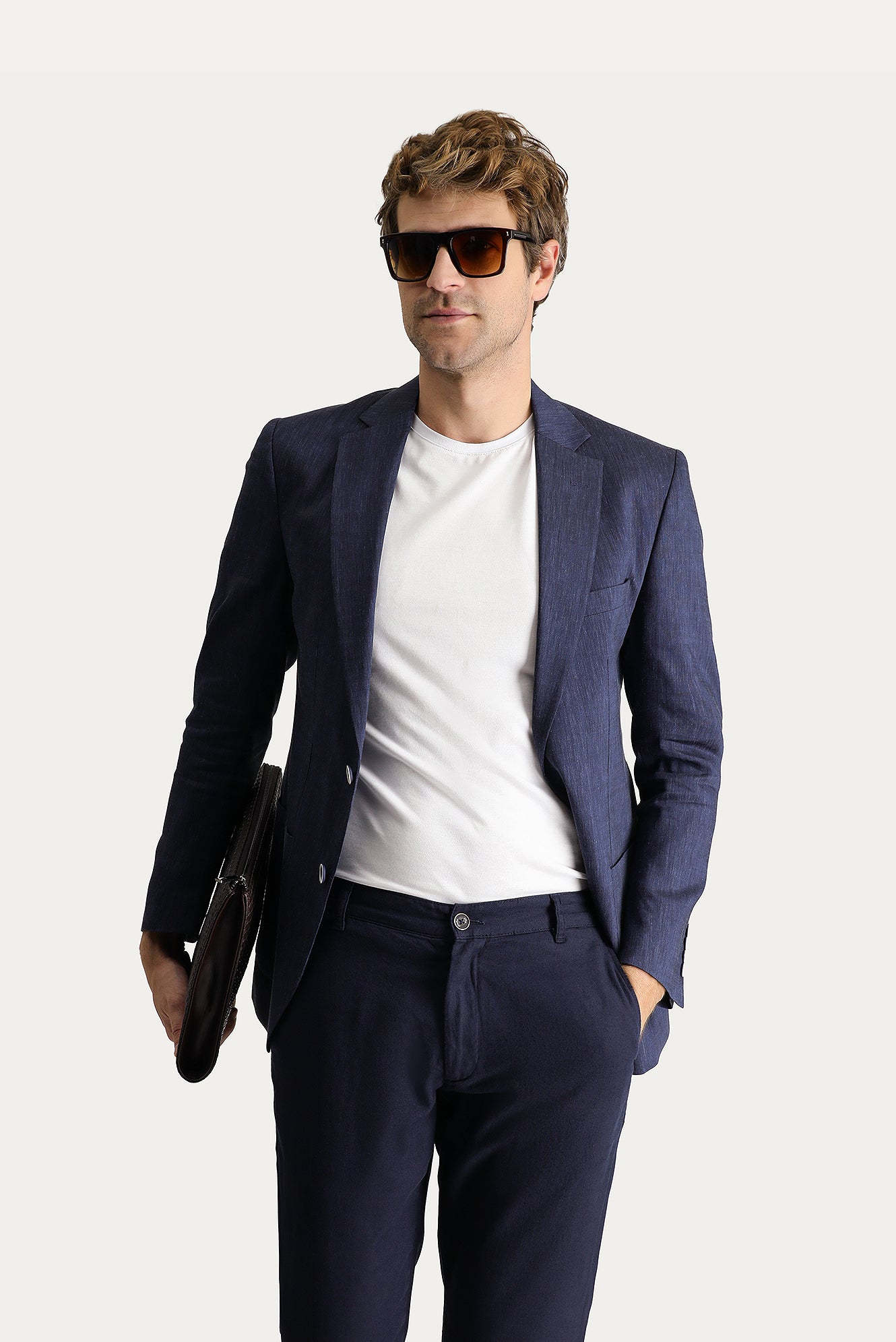 Koyu Lacivert Regular Fit Keten Karışımlı Spor Ceket