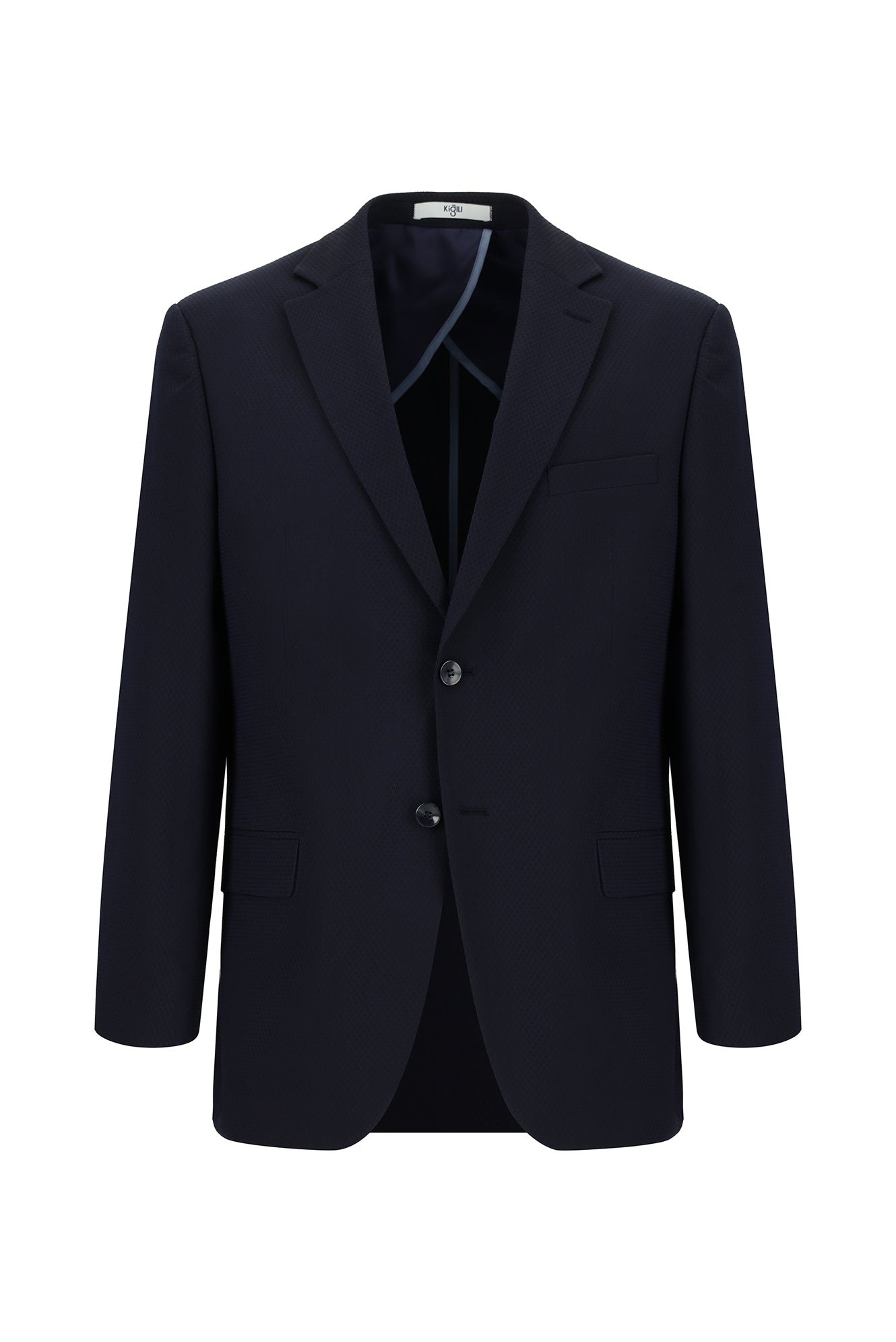 Koyu Lacivert Regular Fit Klasik Desenli Gofre Ceket