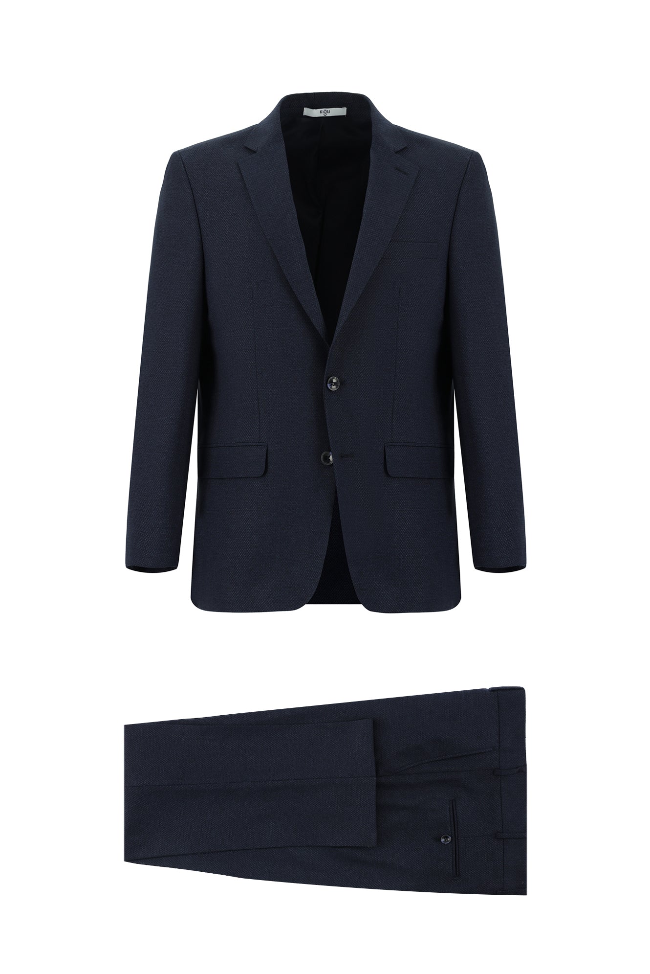 Koyu Lacivert 6 Drop Regular Fit Standart Kesim Klasik Desenli Takım Elbise