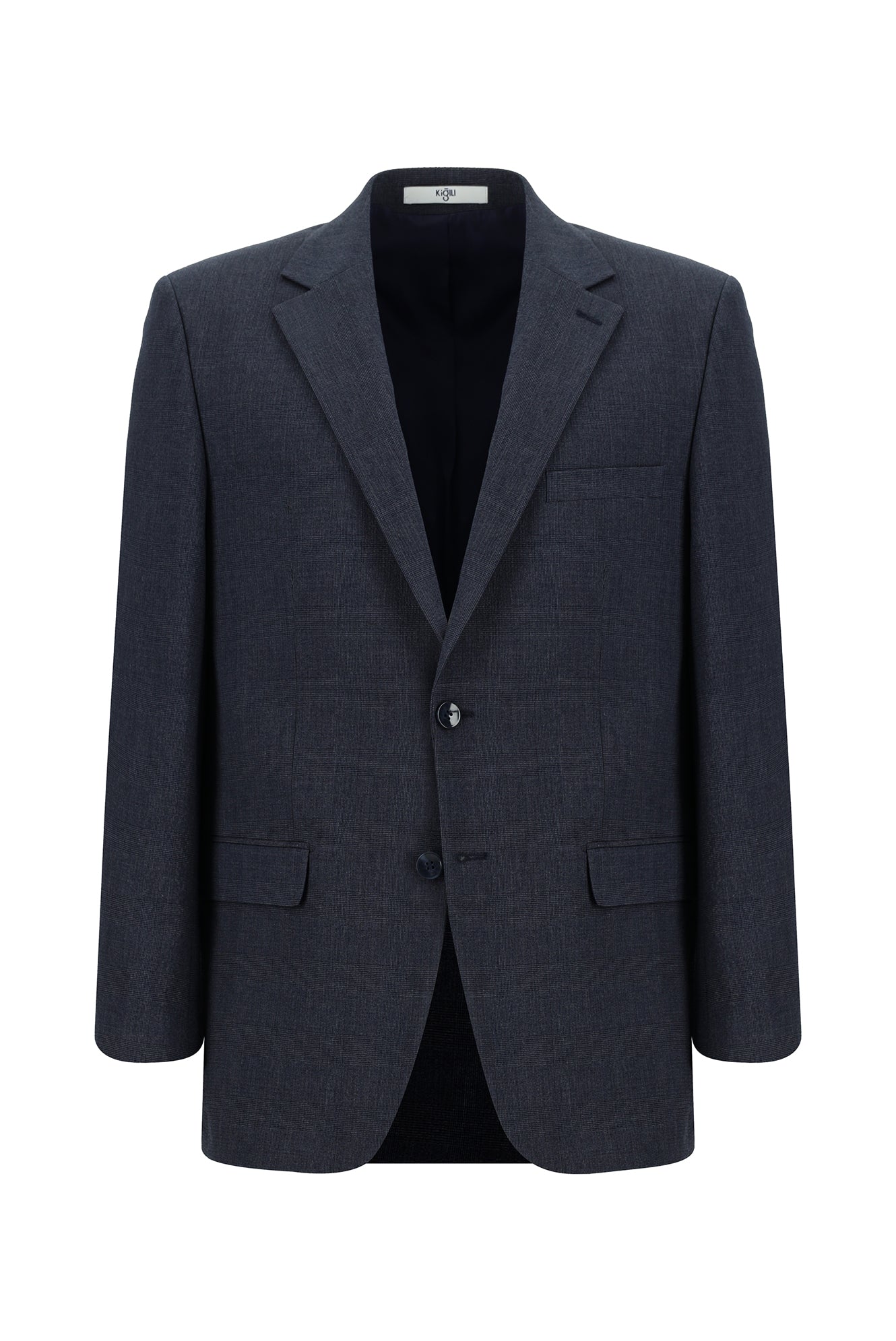 Koyu Lacivert Regular Fit Klasik Ekose Gofre Ceket