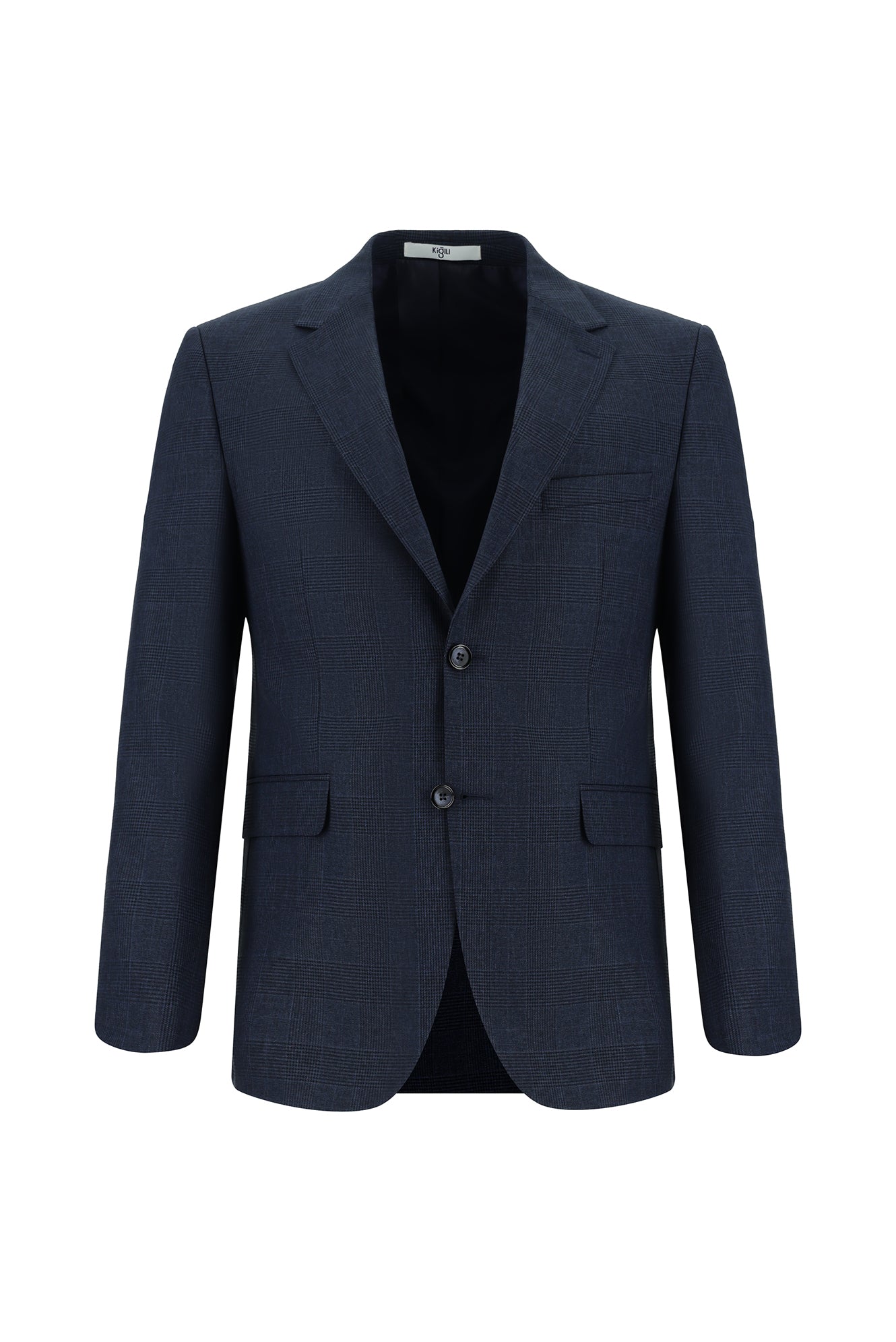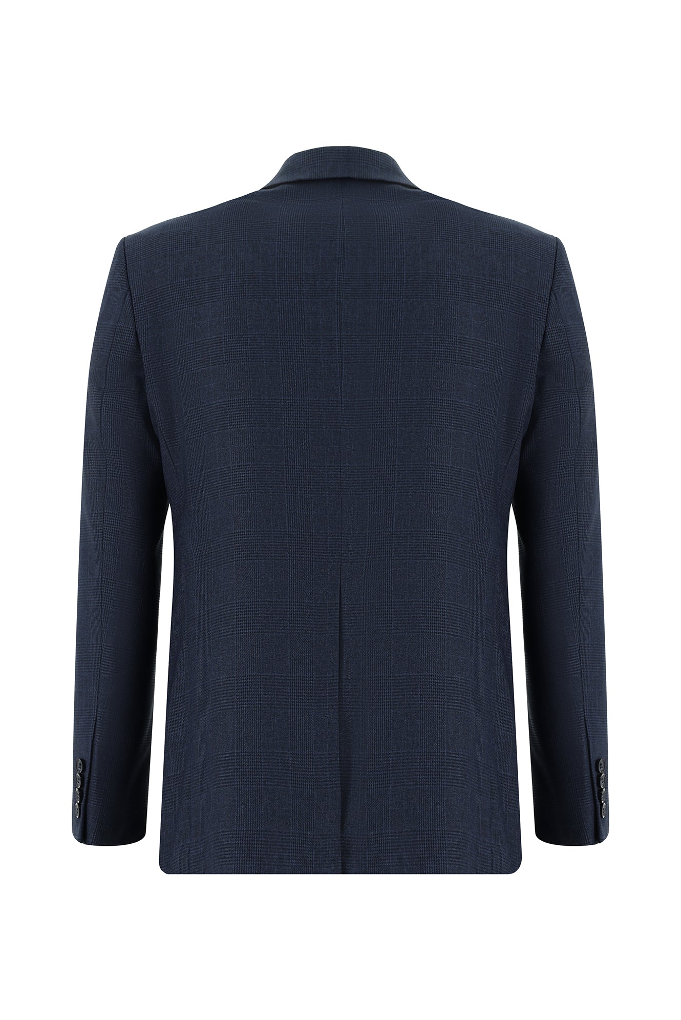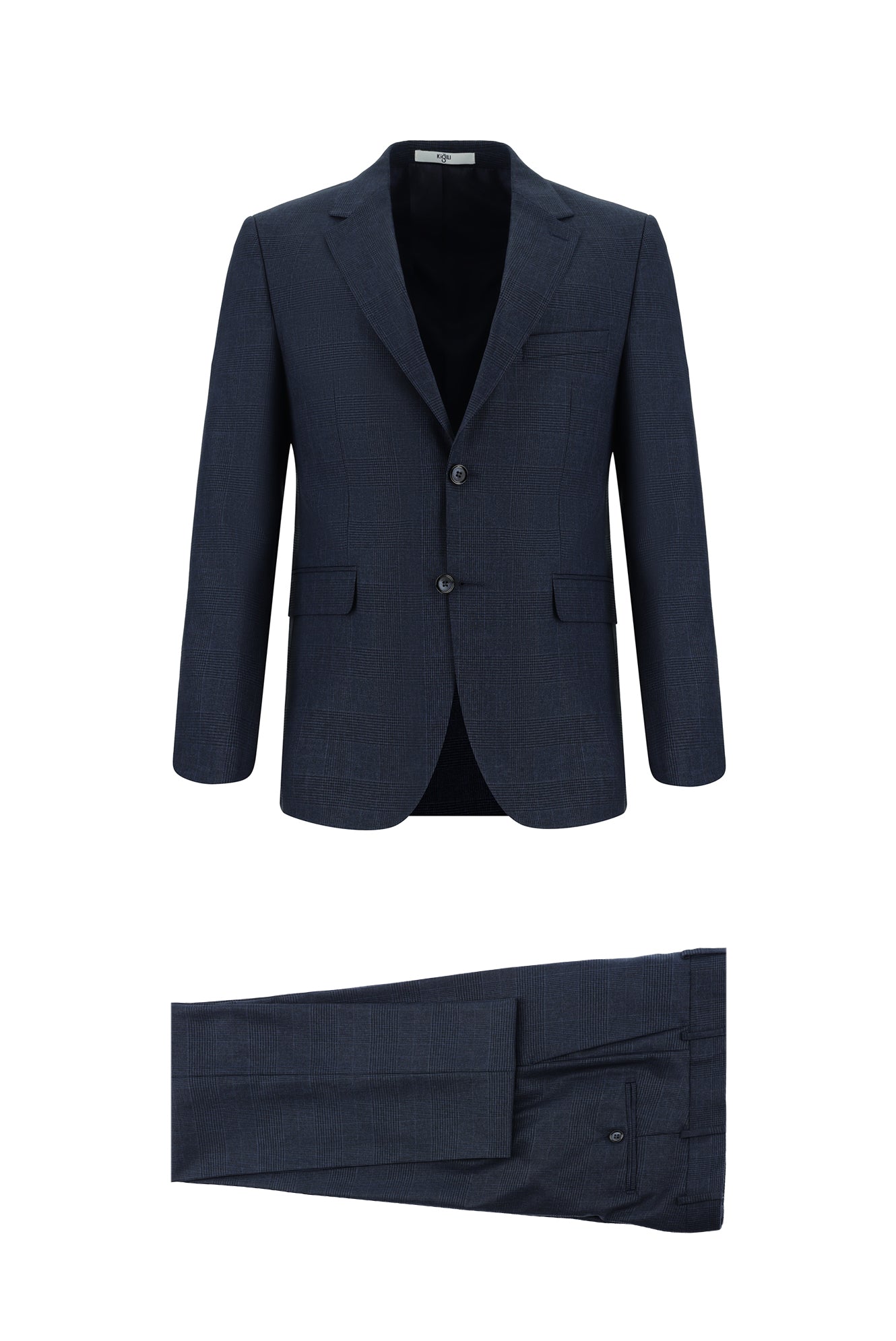 Koyu Lacivert Regular Fit Klasik Ekose Takım Elbise