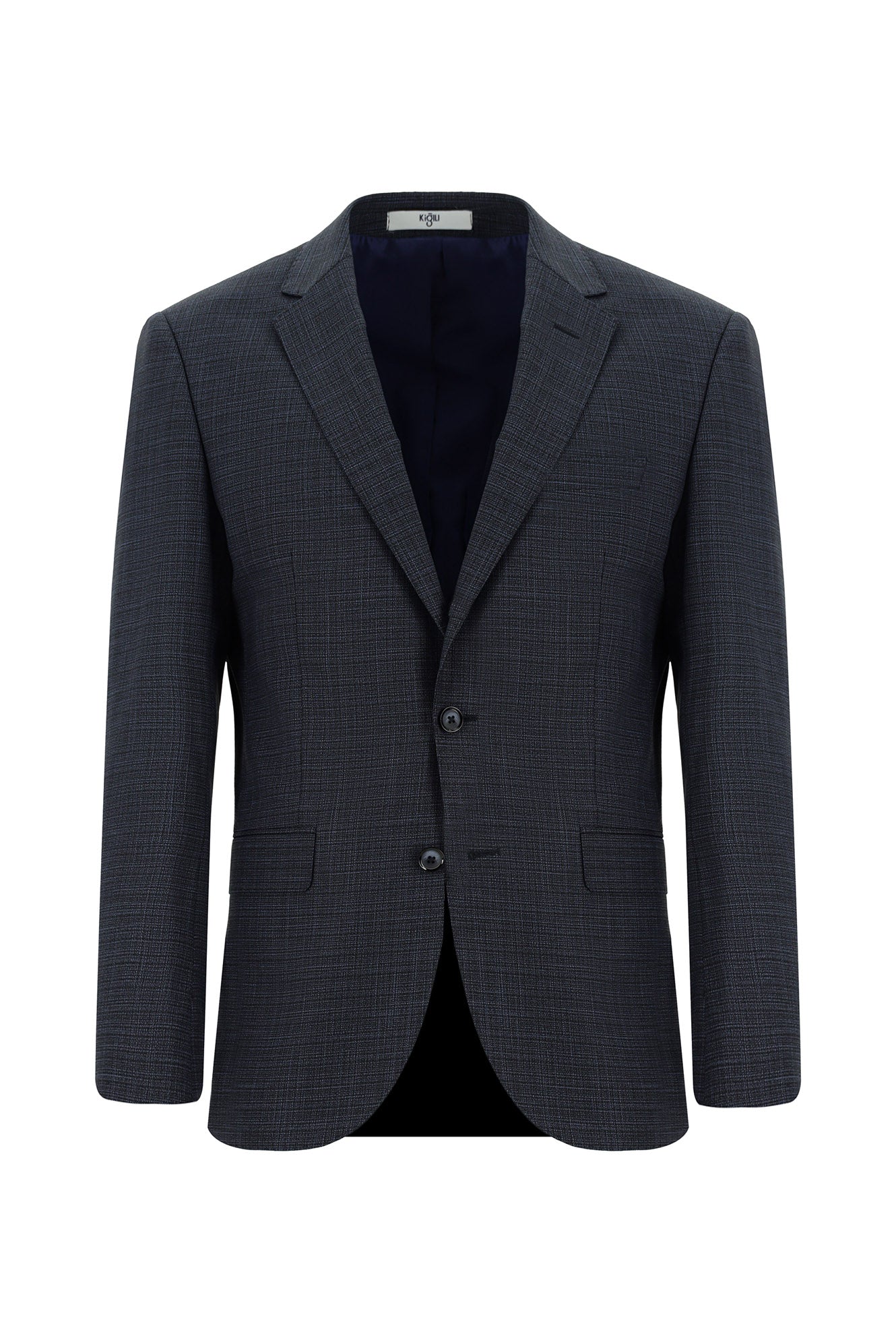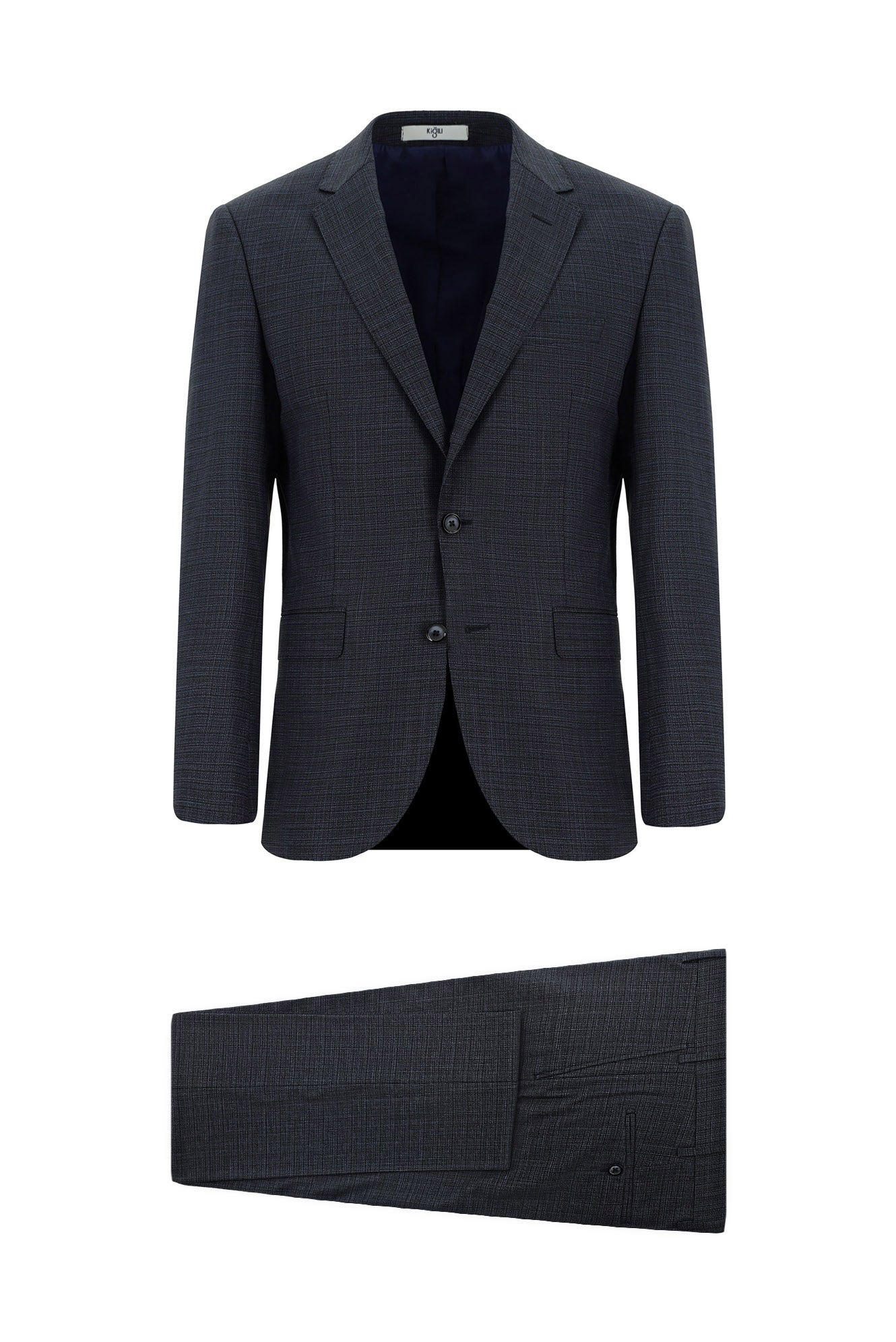 Koyu Lacivert Regular Fit Klasik Ekose Takım Elbise