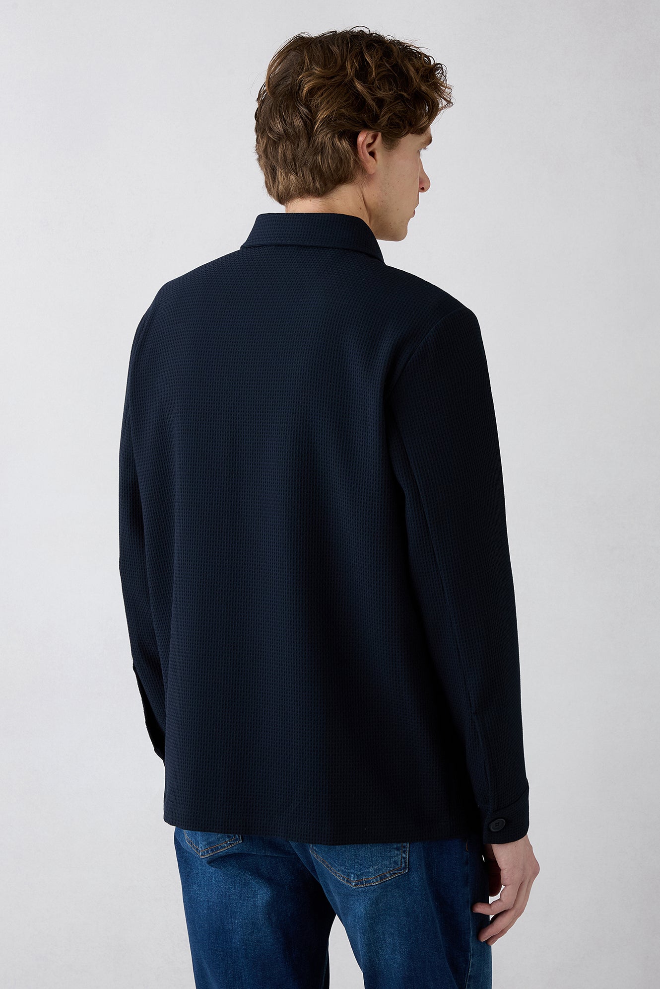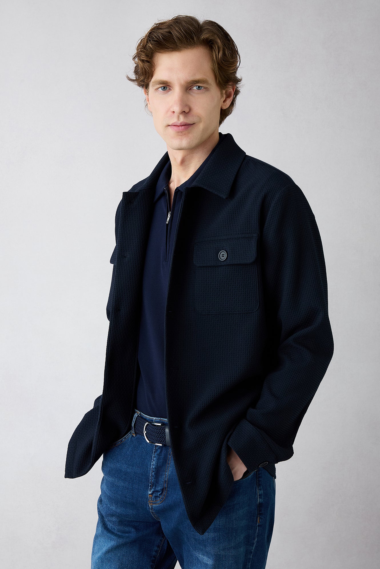 Koyu Lacivert Düğmeli Cepli Desenli Mevsimlik Ceket / Mont