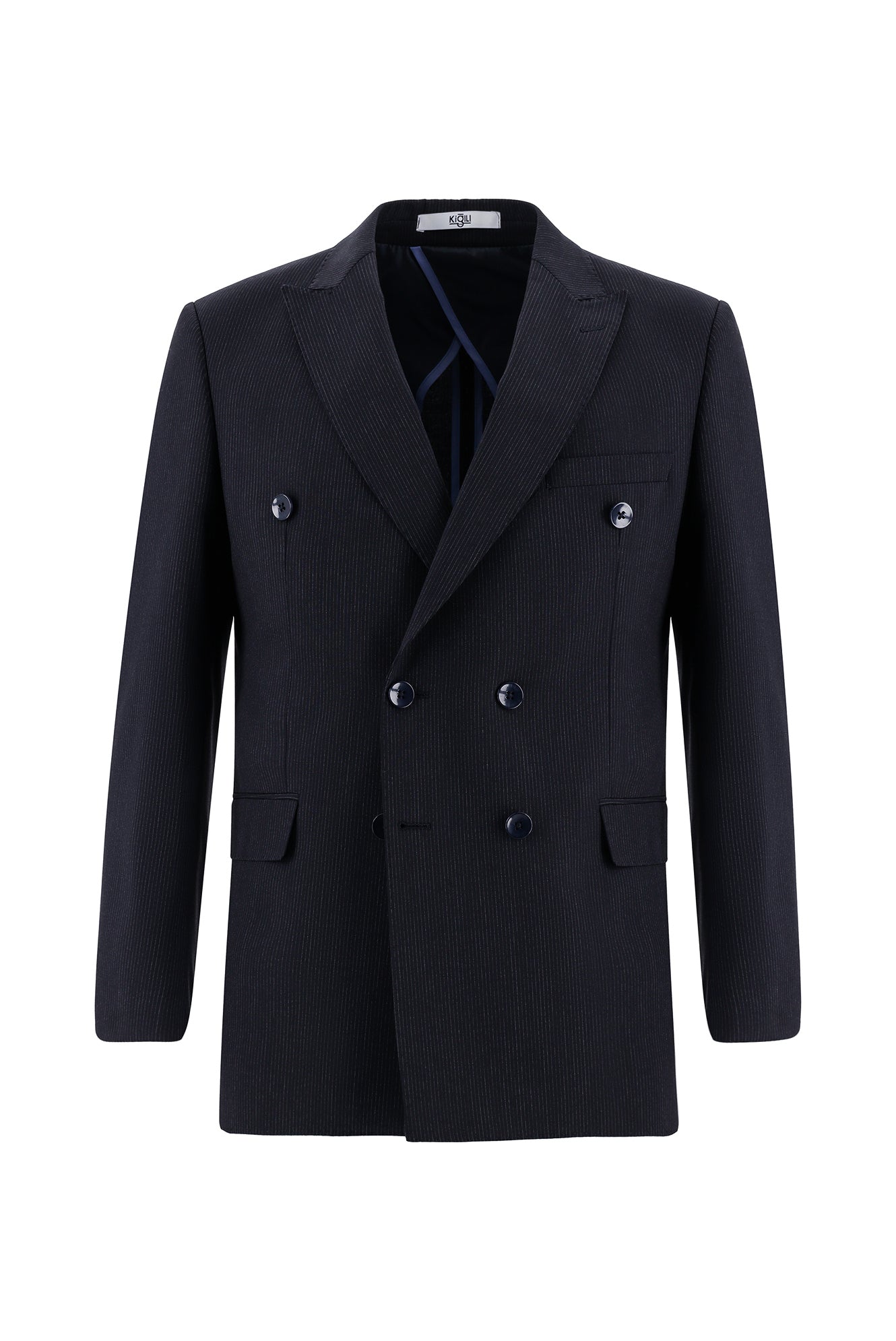 Koyu Lacivert 6 Drop Regular Fit Standart Kesim Kruvaze Çizgili Takım Elbise