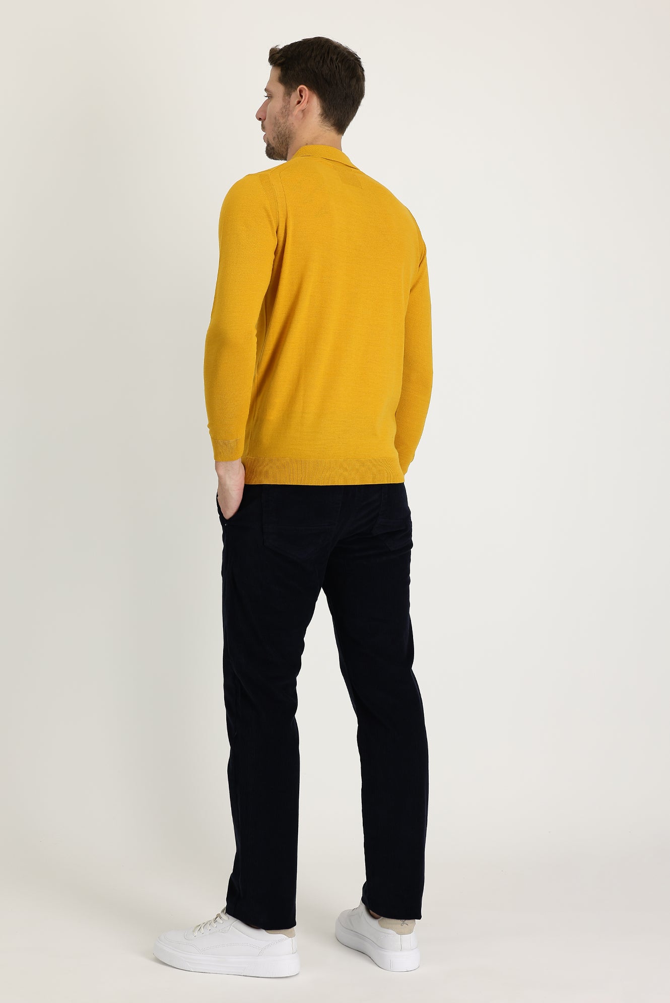 Koyu Lacivert Regular Fit Likralı Kadife Pantolon