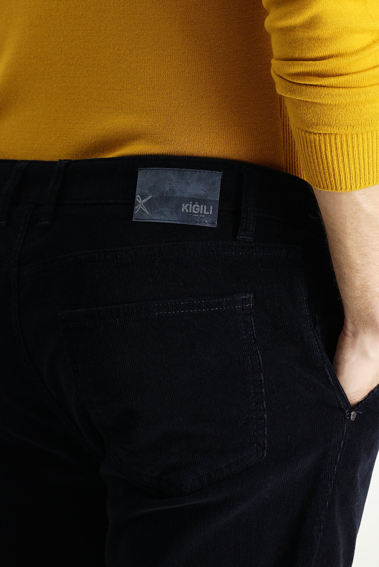 Koyu Lacivert 6 Drop Regular Fit Standart Kesim Likralı Kadife Pantolon