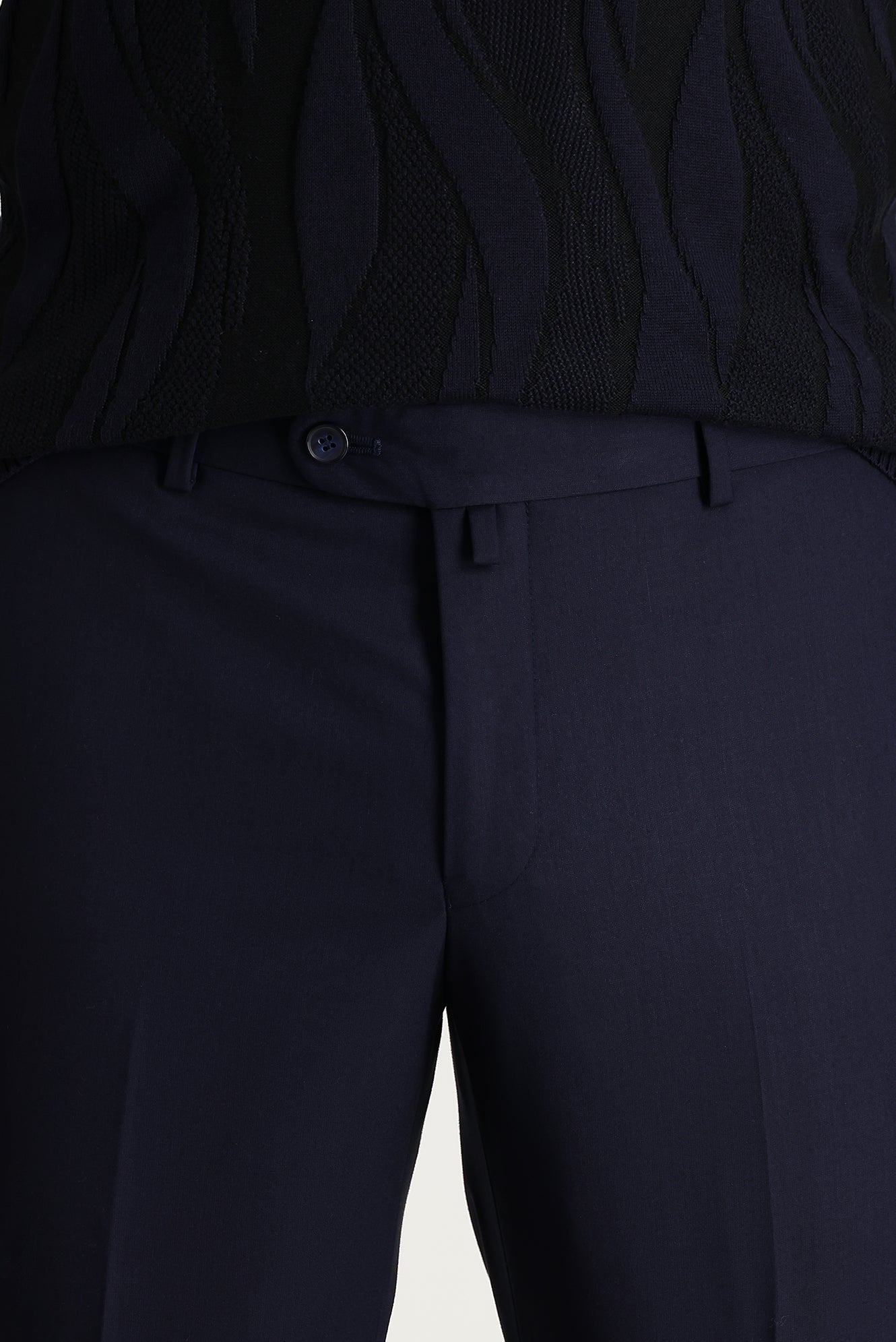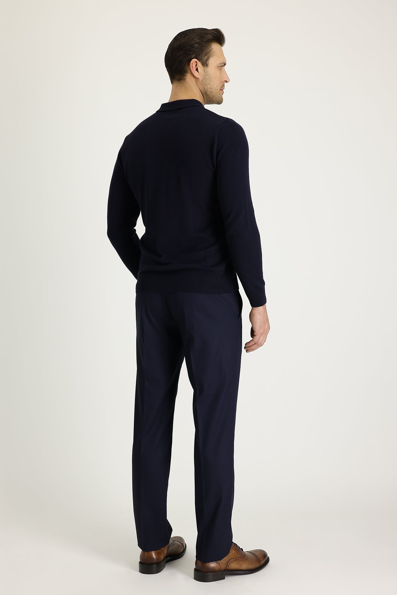 Koyu Lacivert Regular Fit Likralı Klasik Kumaş Pantolon