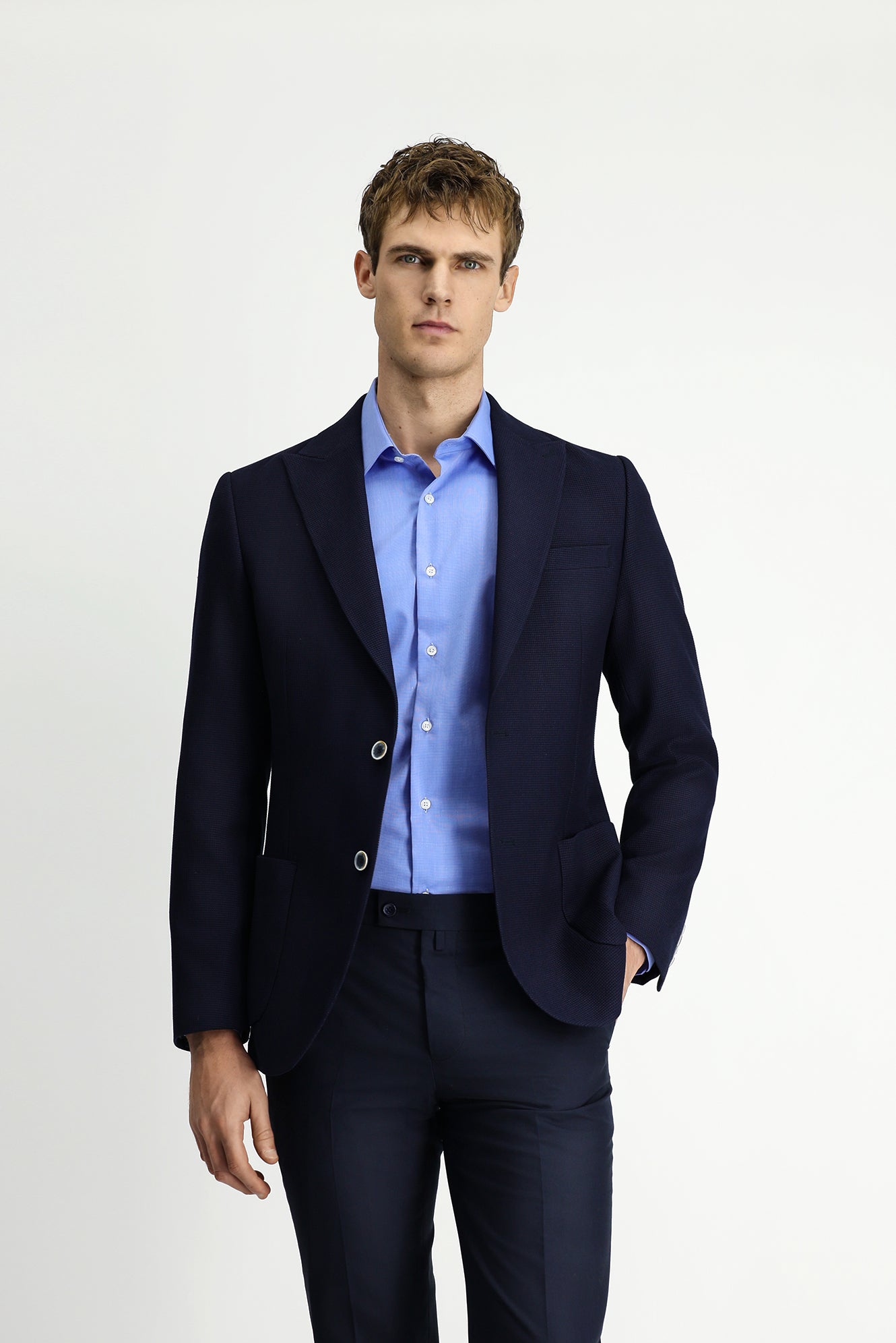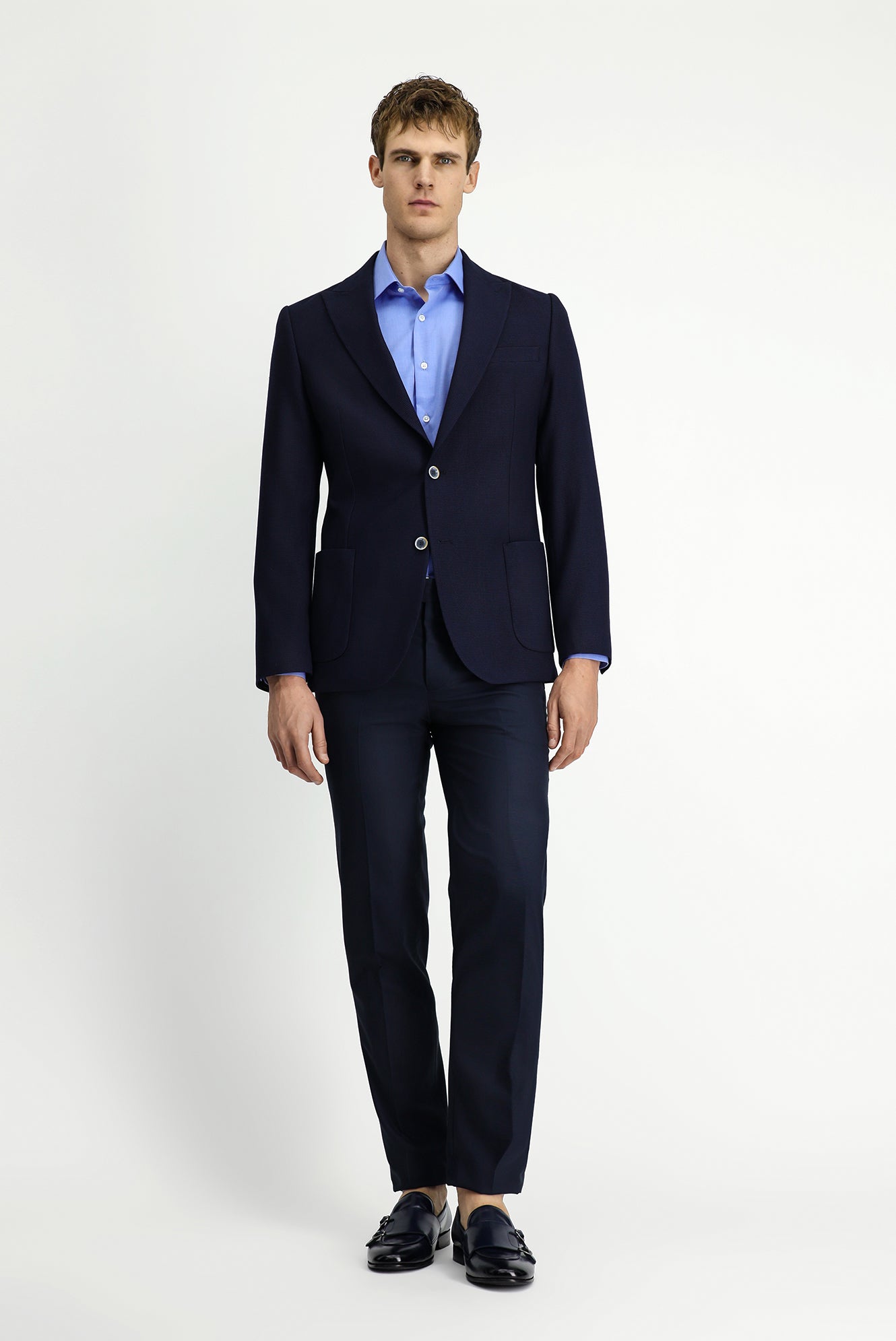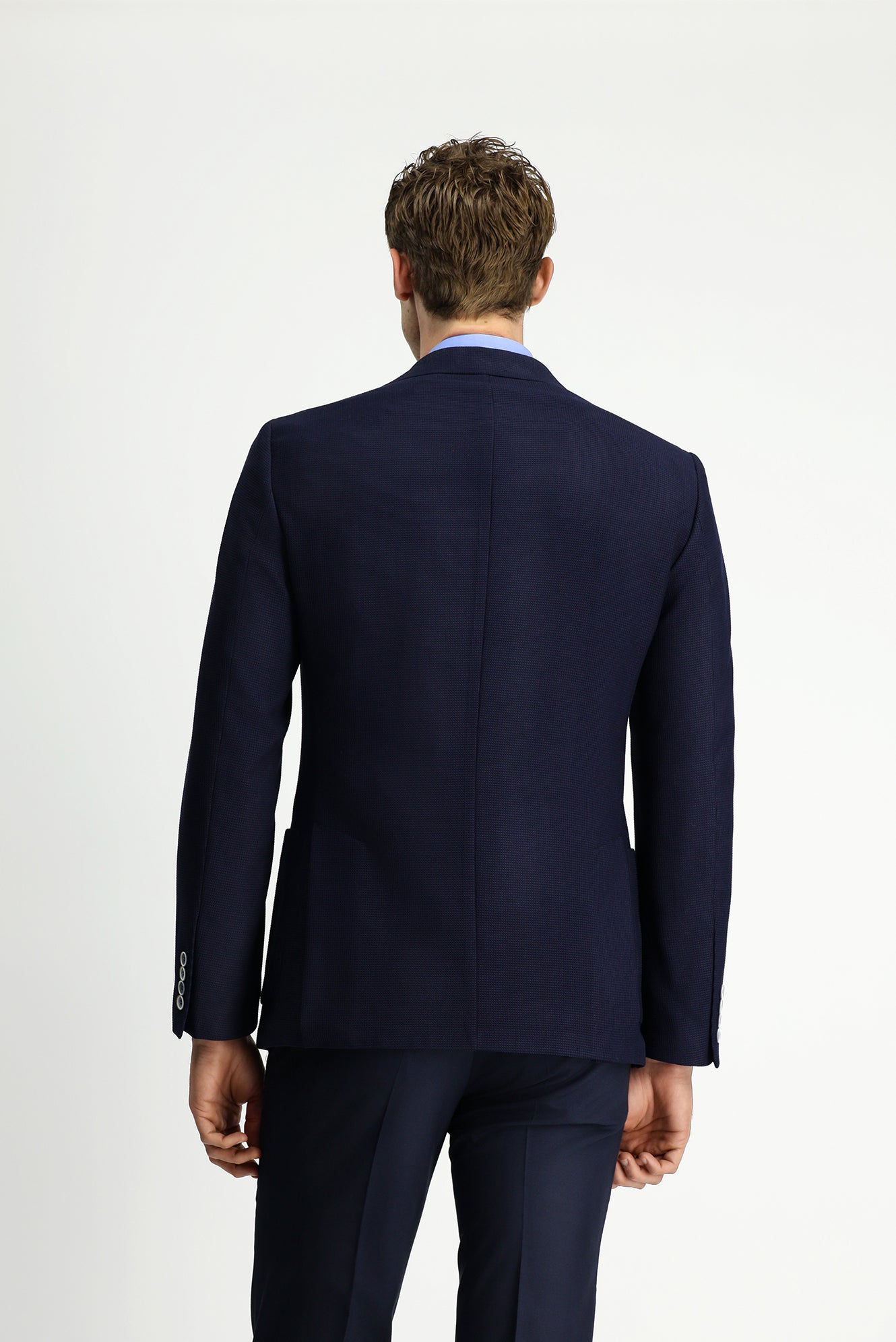 Koyu Lacivert Muscle Fit Likralı Desenli Spor Ceket