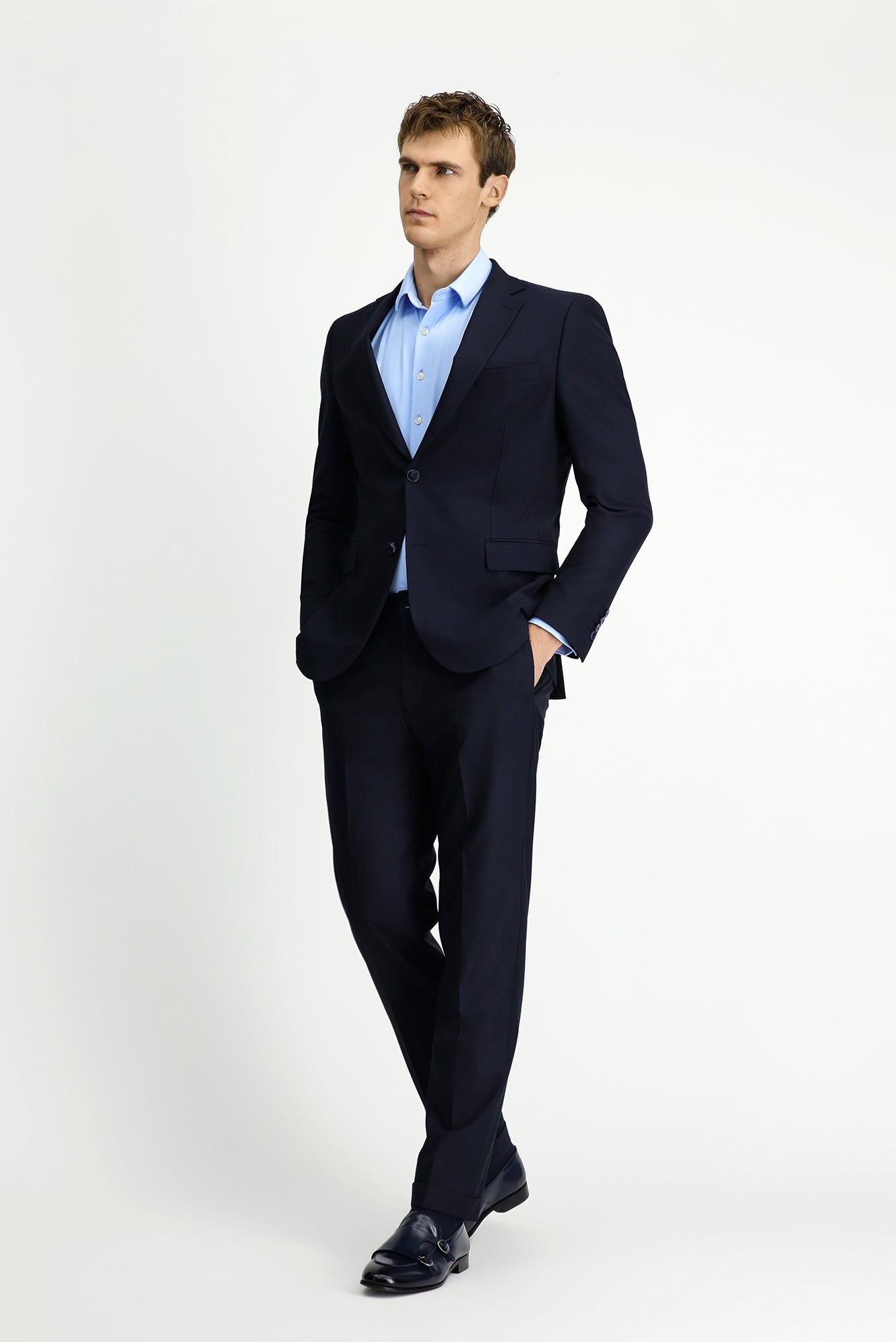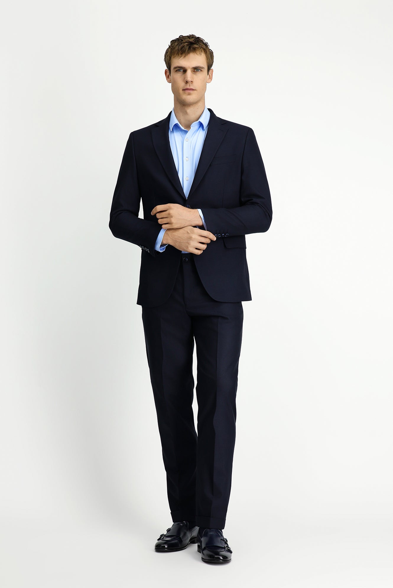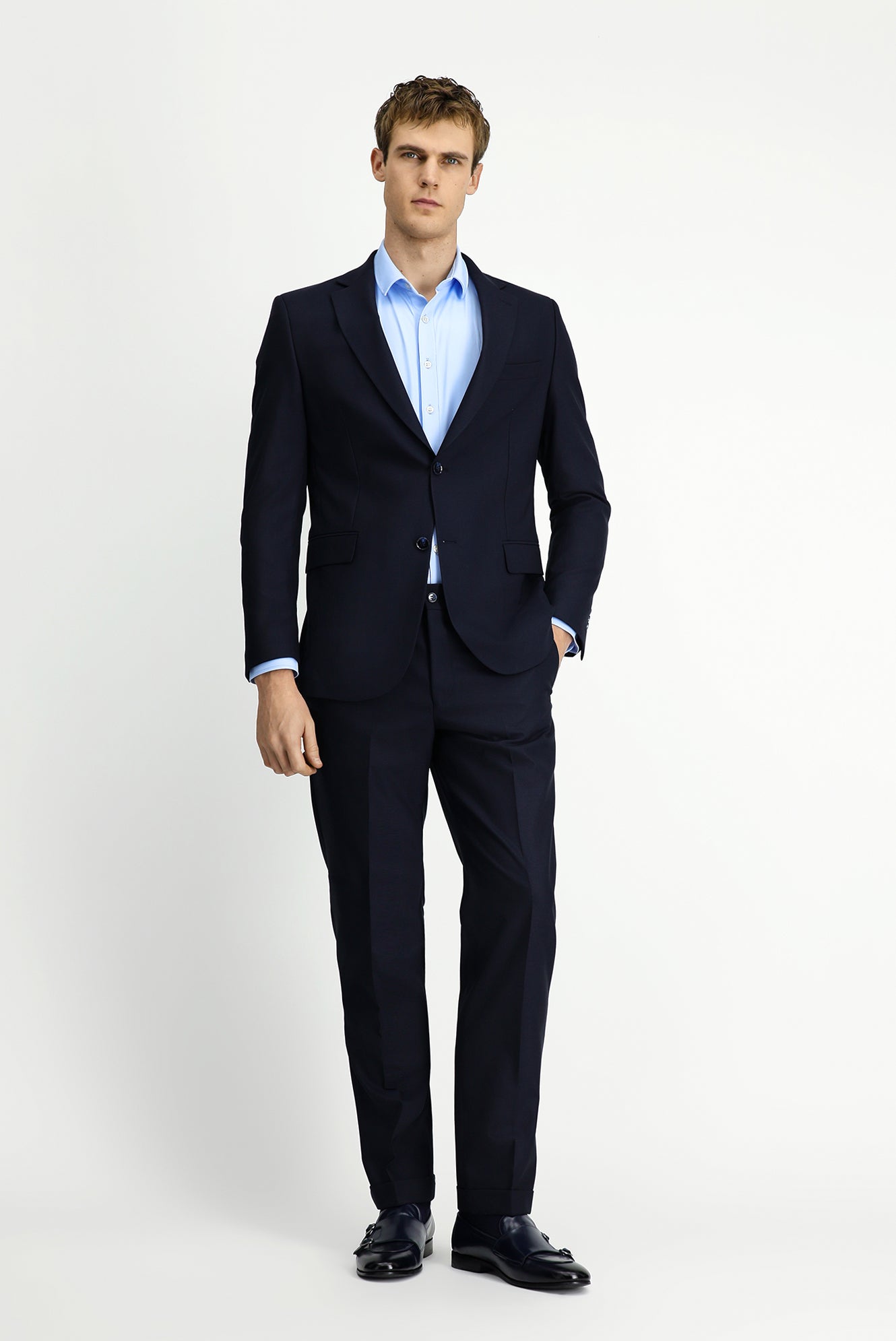 Koyu Lacivert 6 Drop Regular Fit Standart Kesim Yünlü Klasik Çantalı Takım Elbise