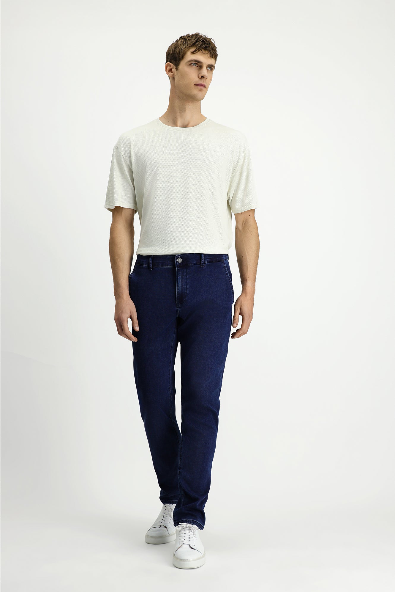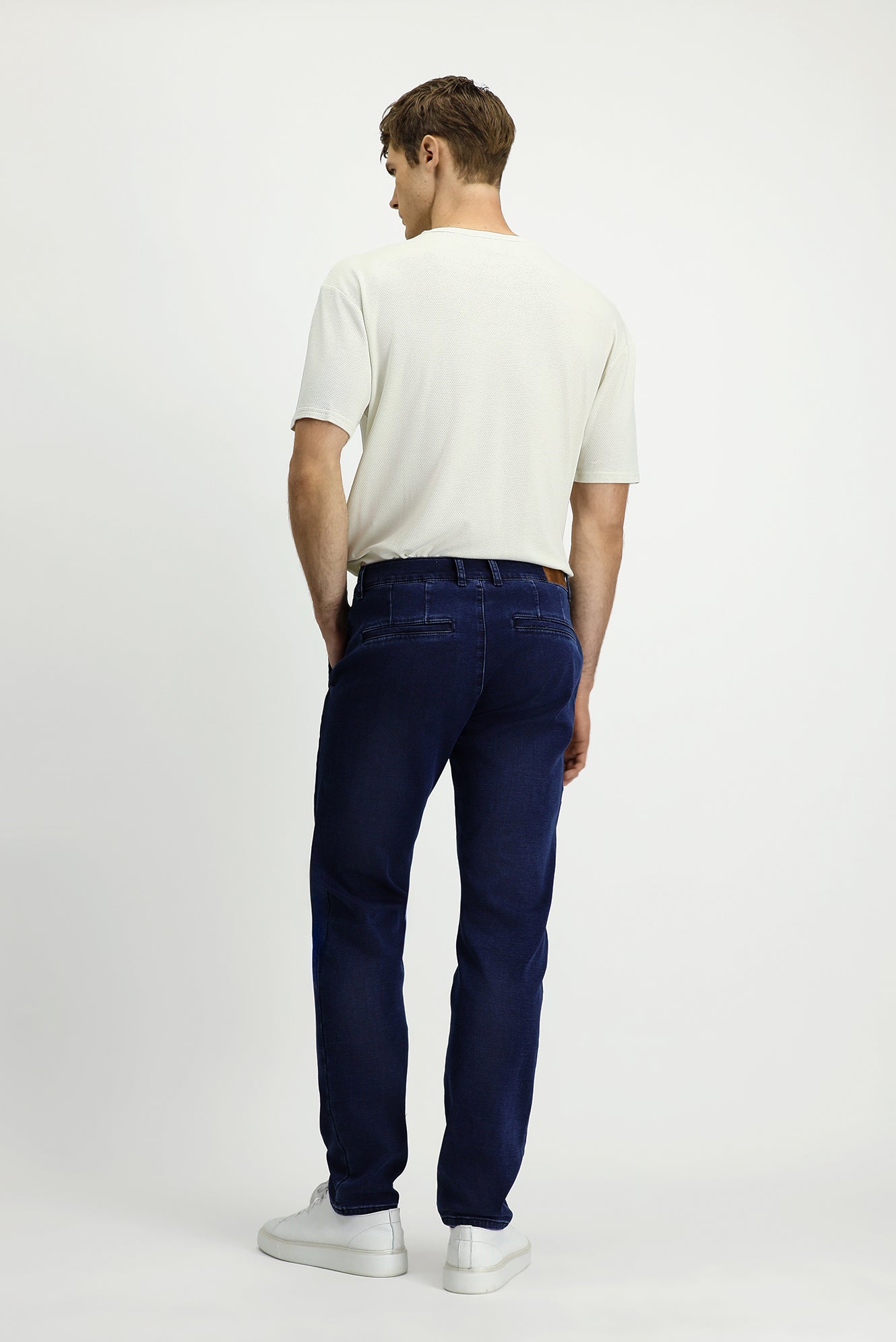 Koyu Lacivert 6 Drop Regular Fit Standart Kesim Pamuklu Denim Look Pantolon