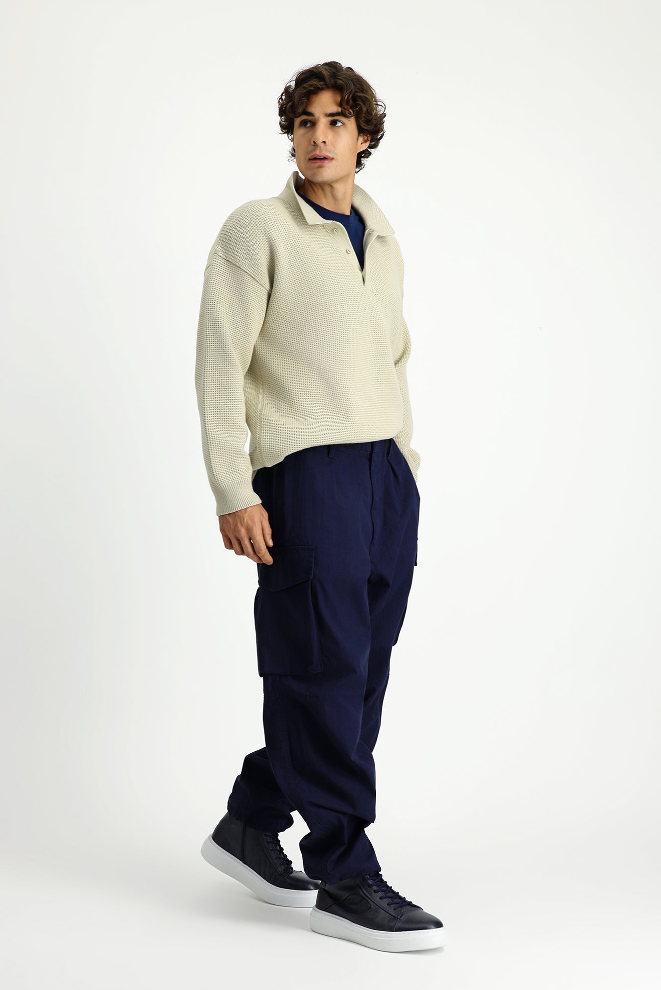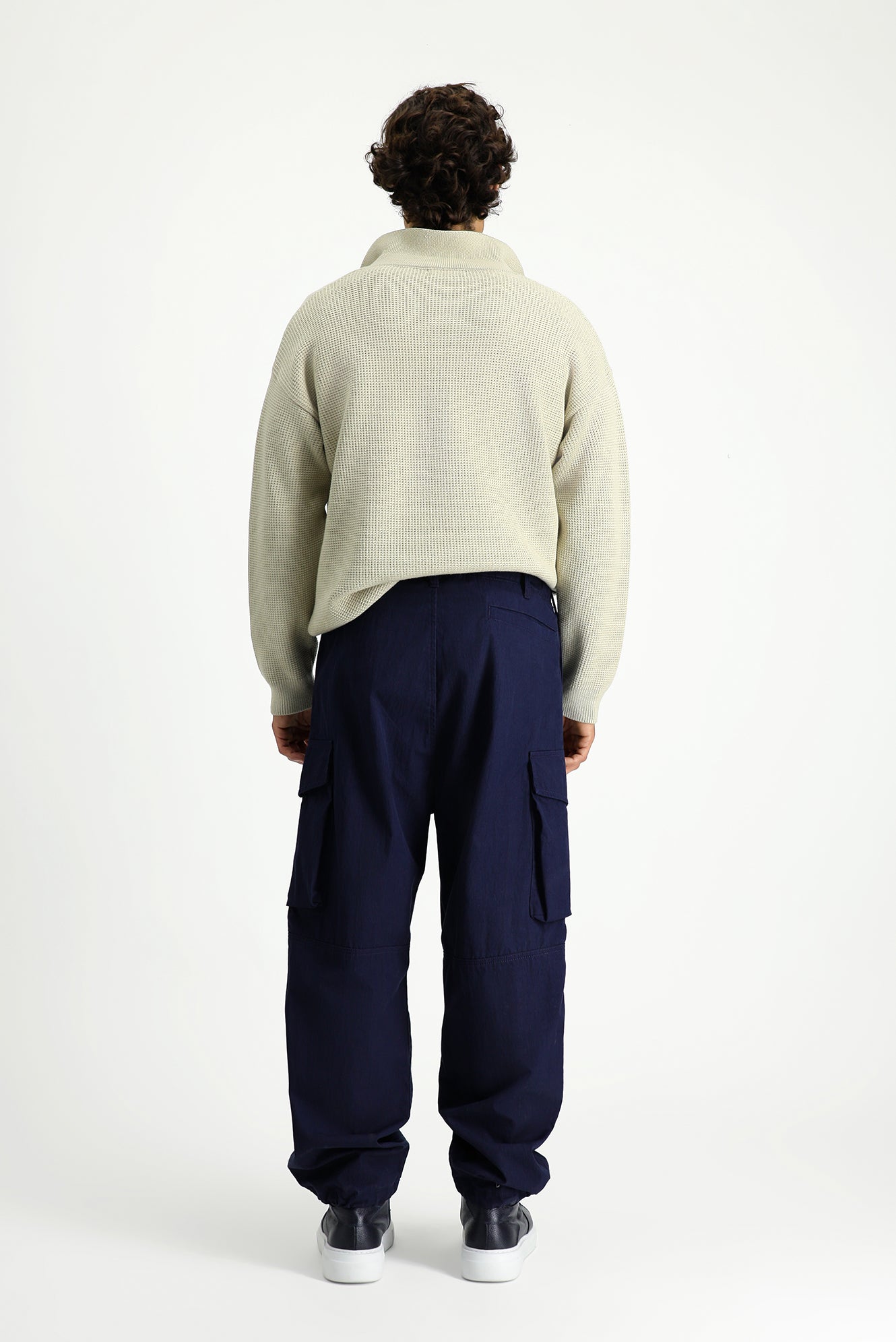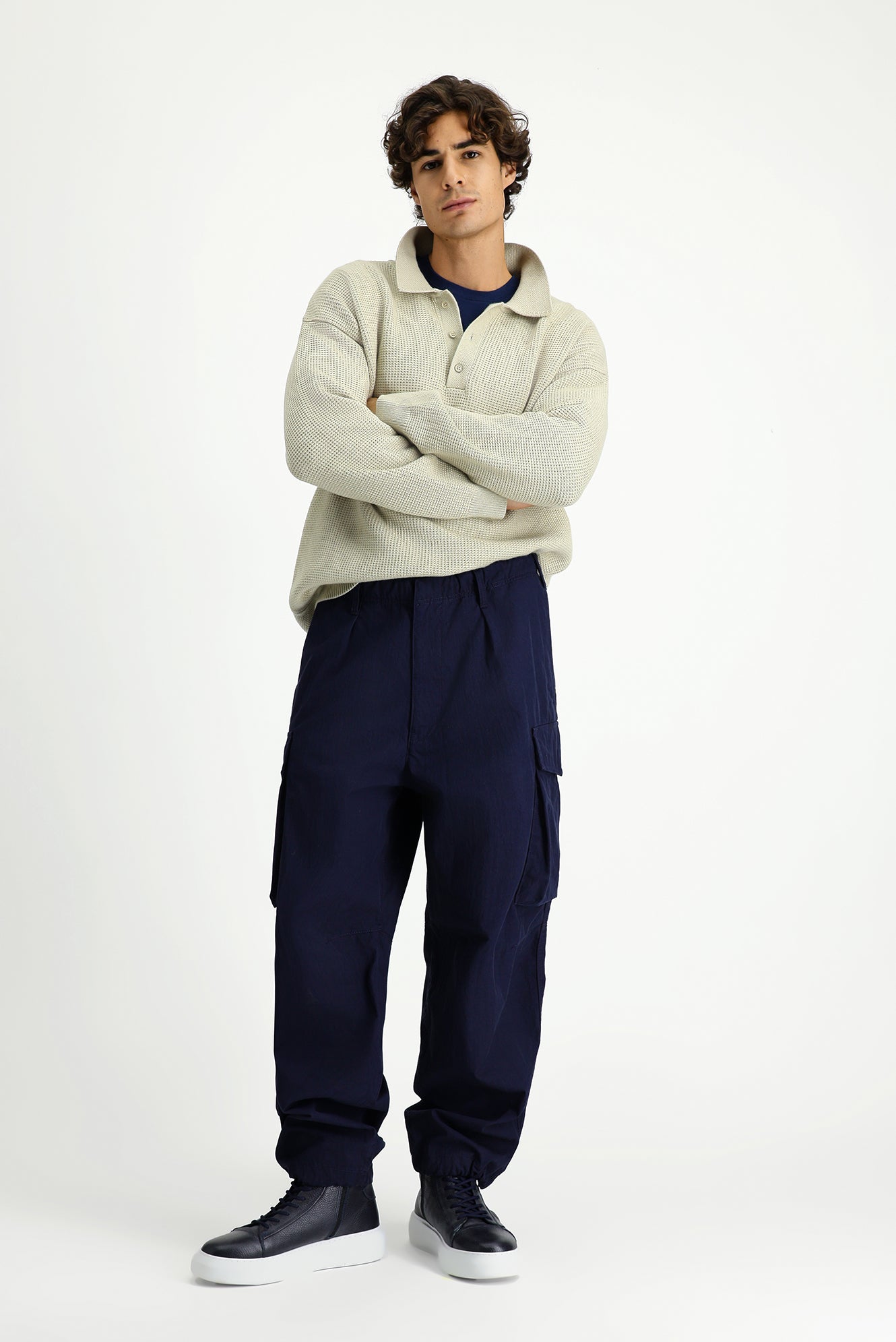 Koyu Lacivert Engineered Fit Pamuklu Kargo Pantolon