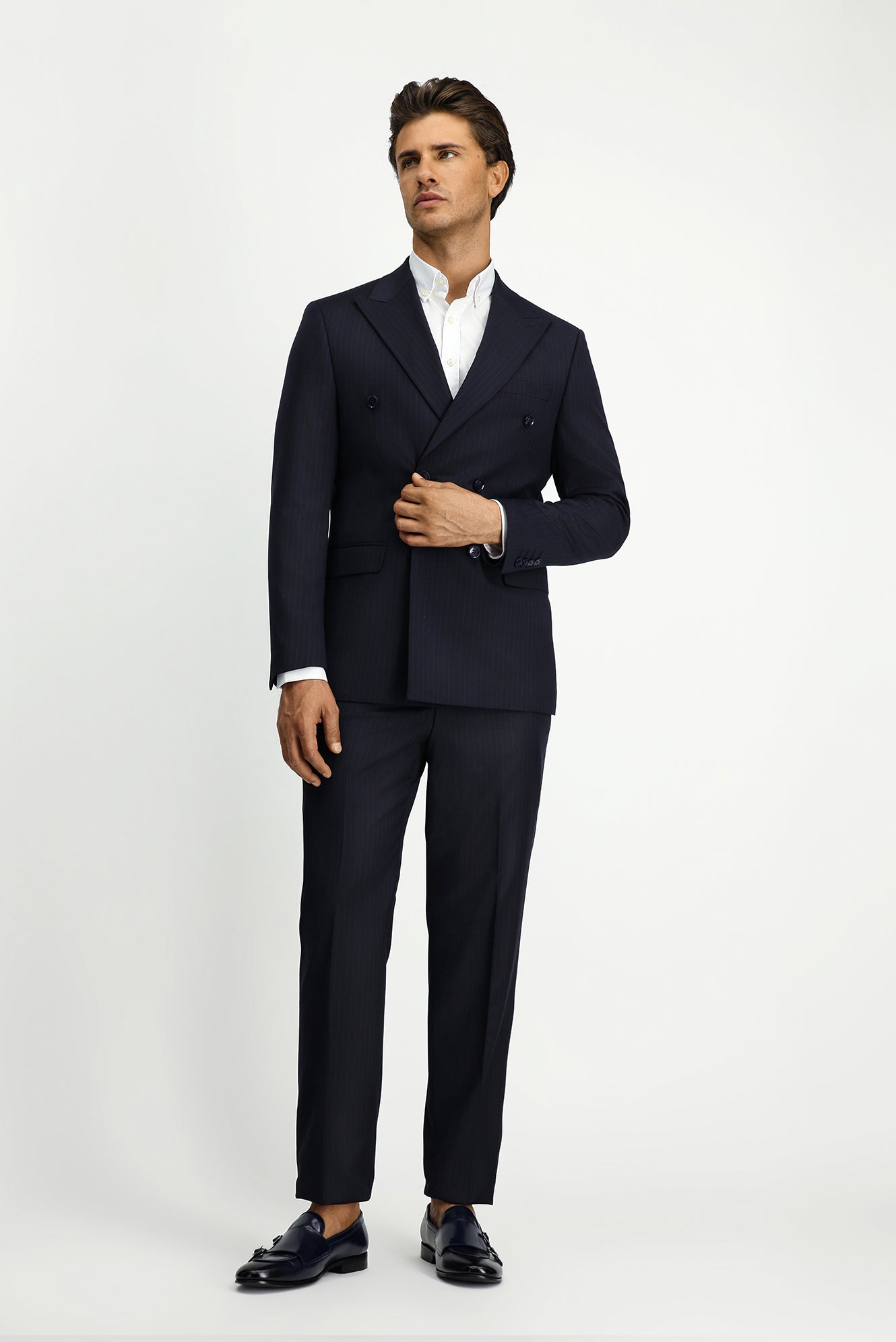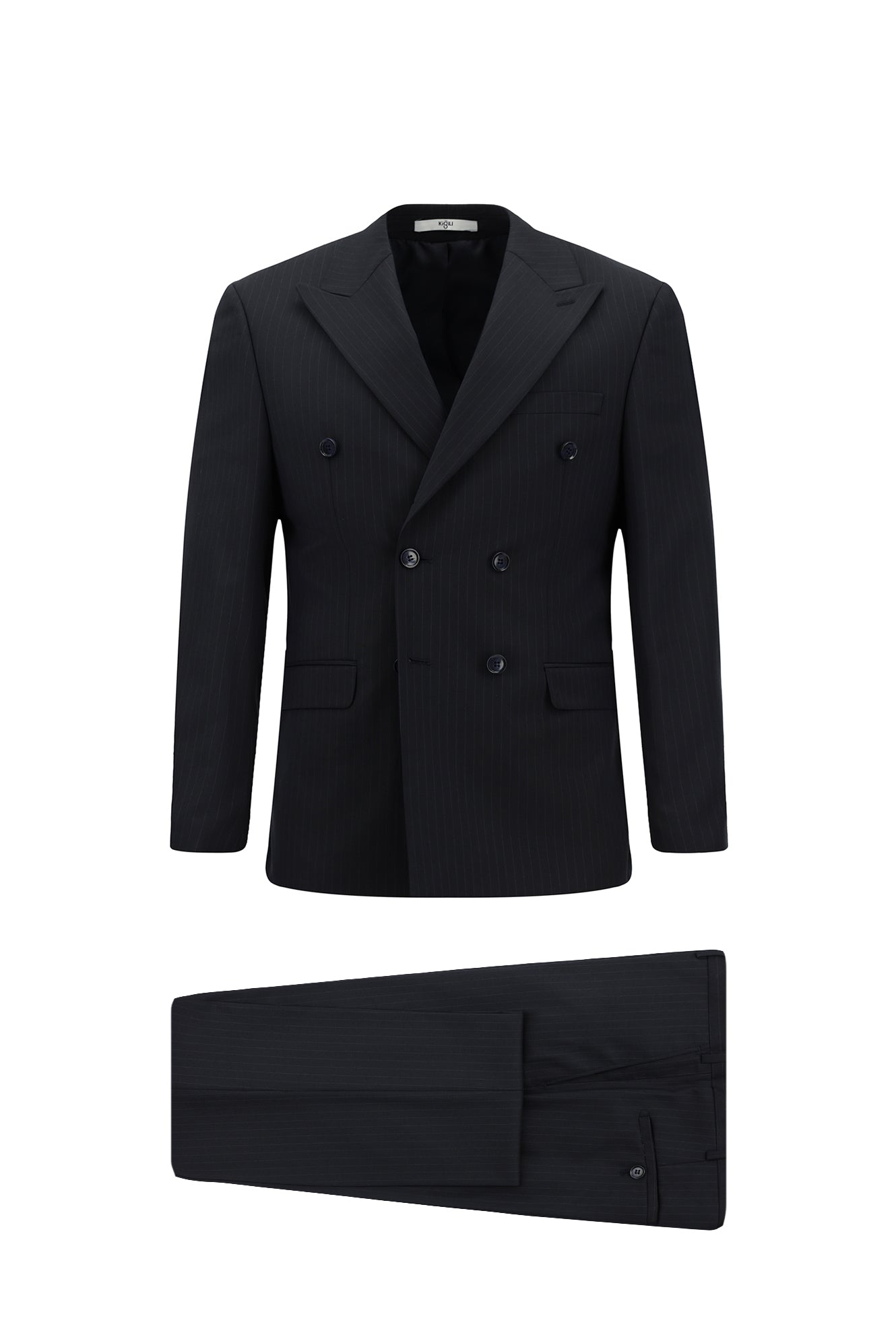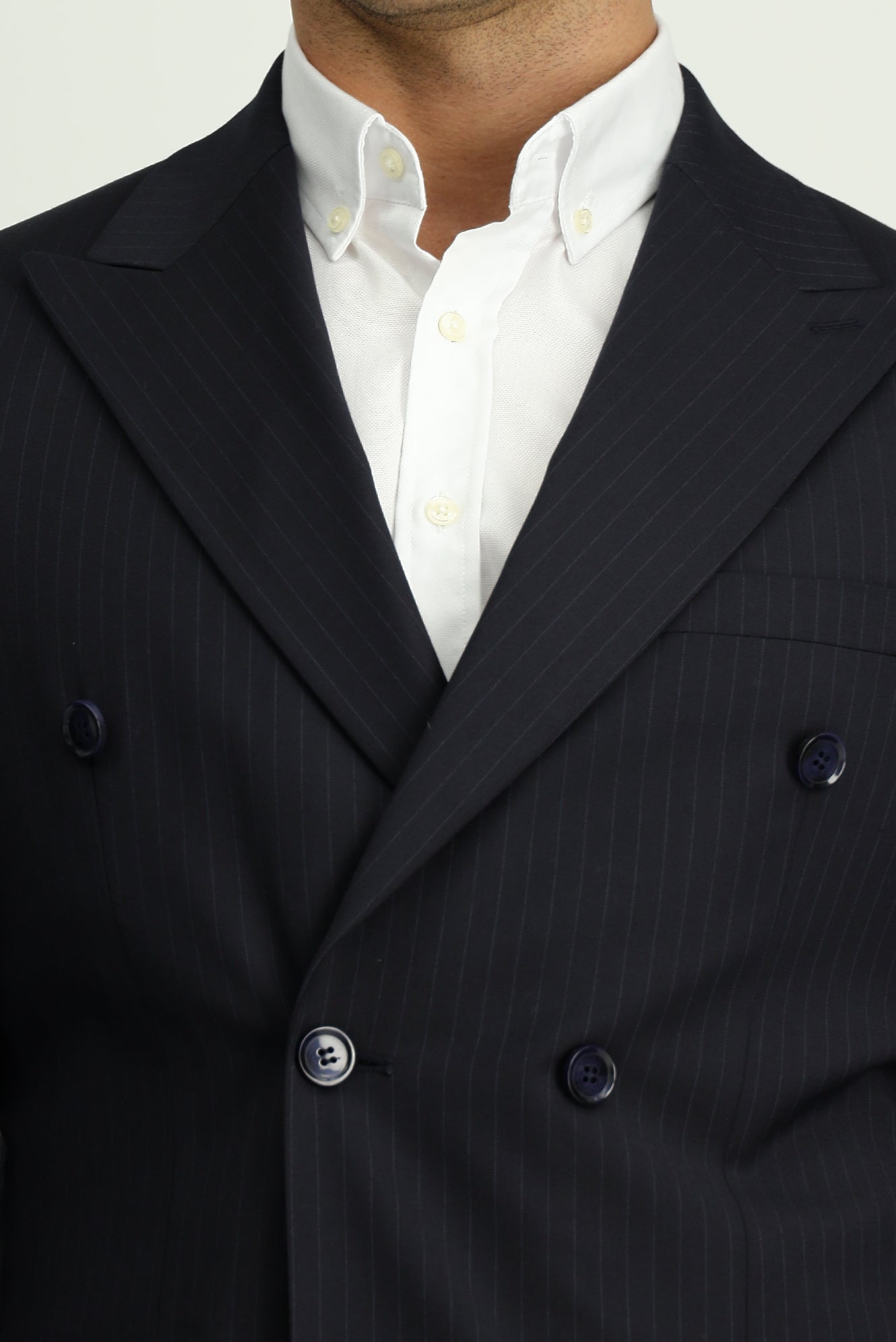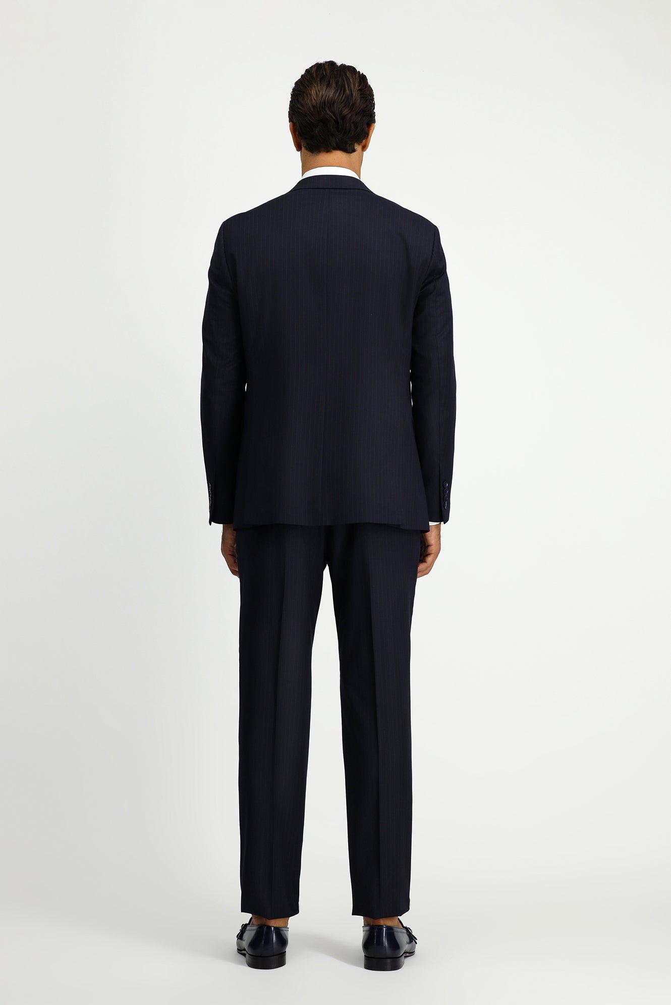 Koyu Lacivert Regular Fit Yünlü Çizgili Kruvaze Takım Elbise