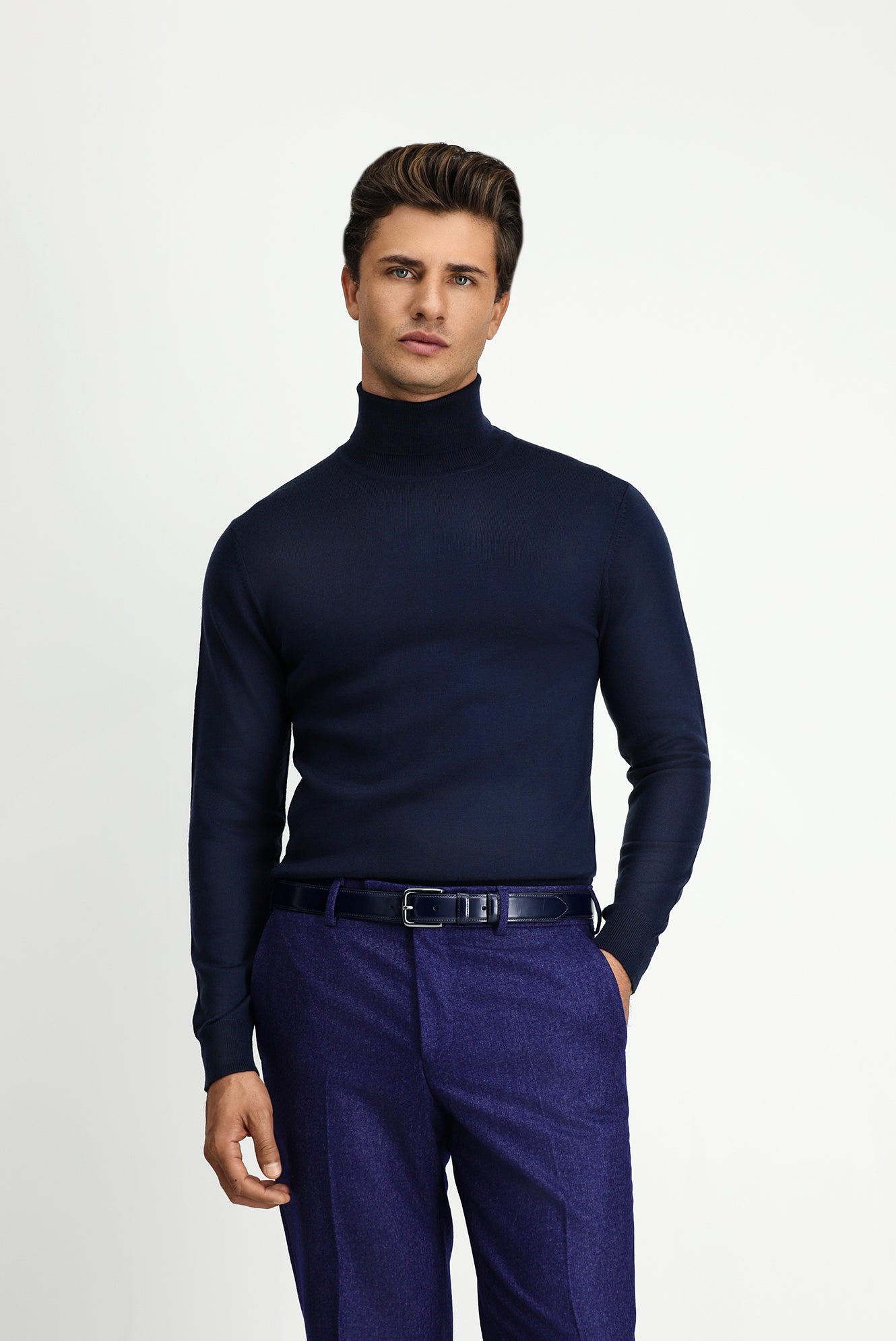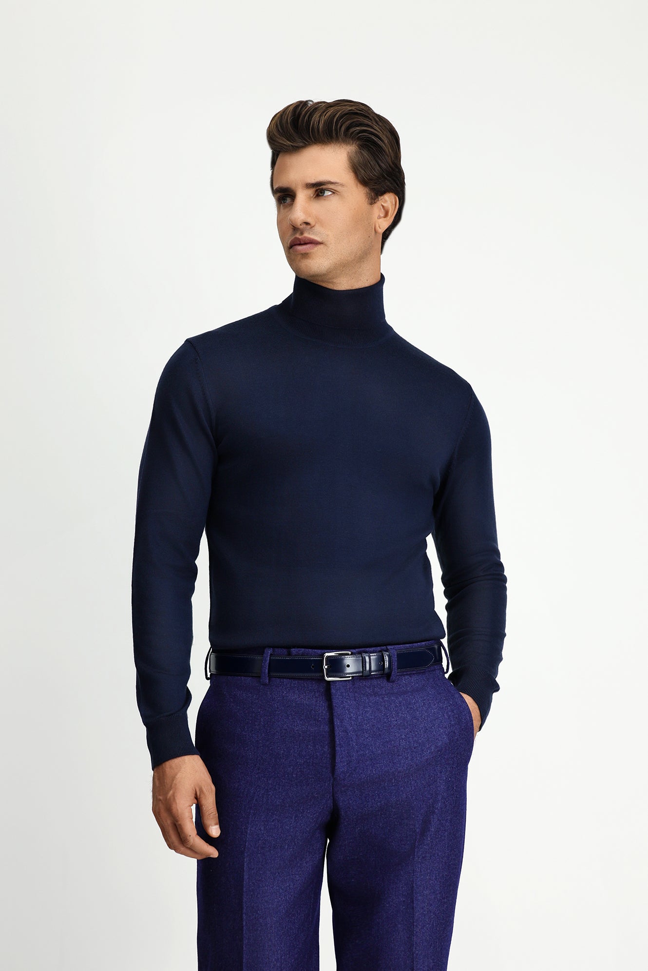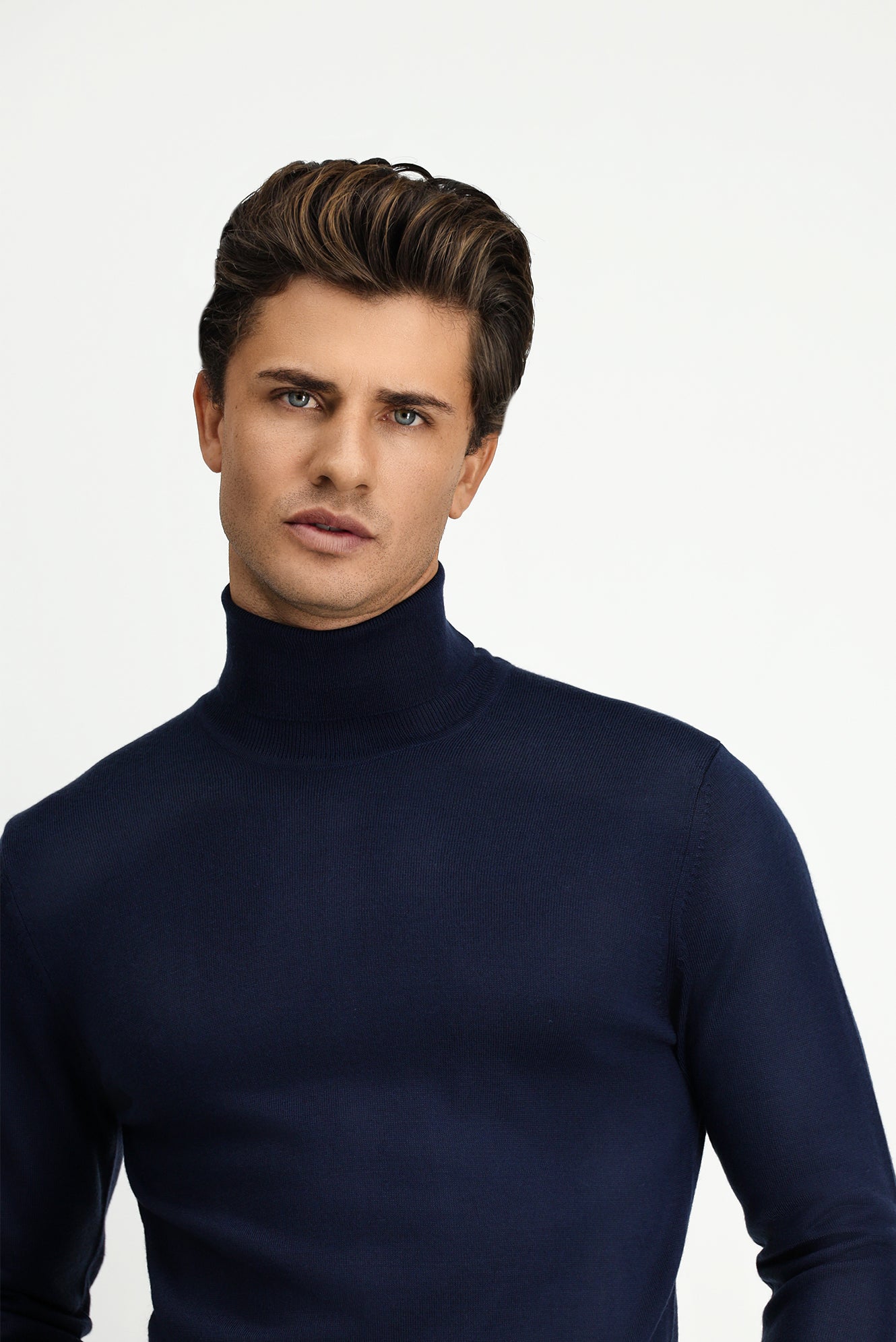 Koyu Lacivert Balıkçı Yaka Regular Fit Yünlü Triko Kazak