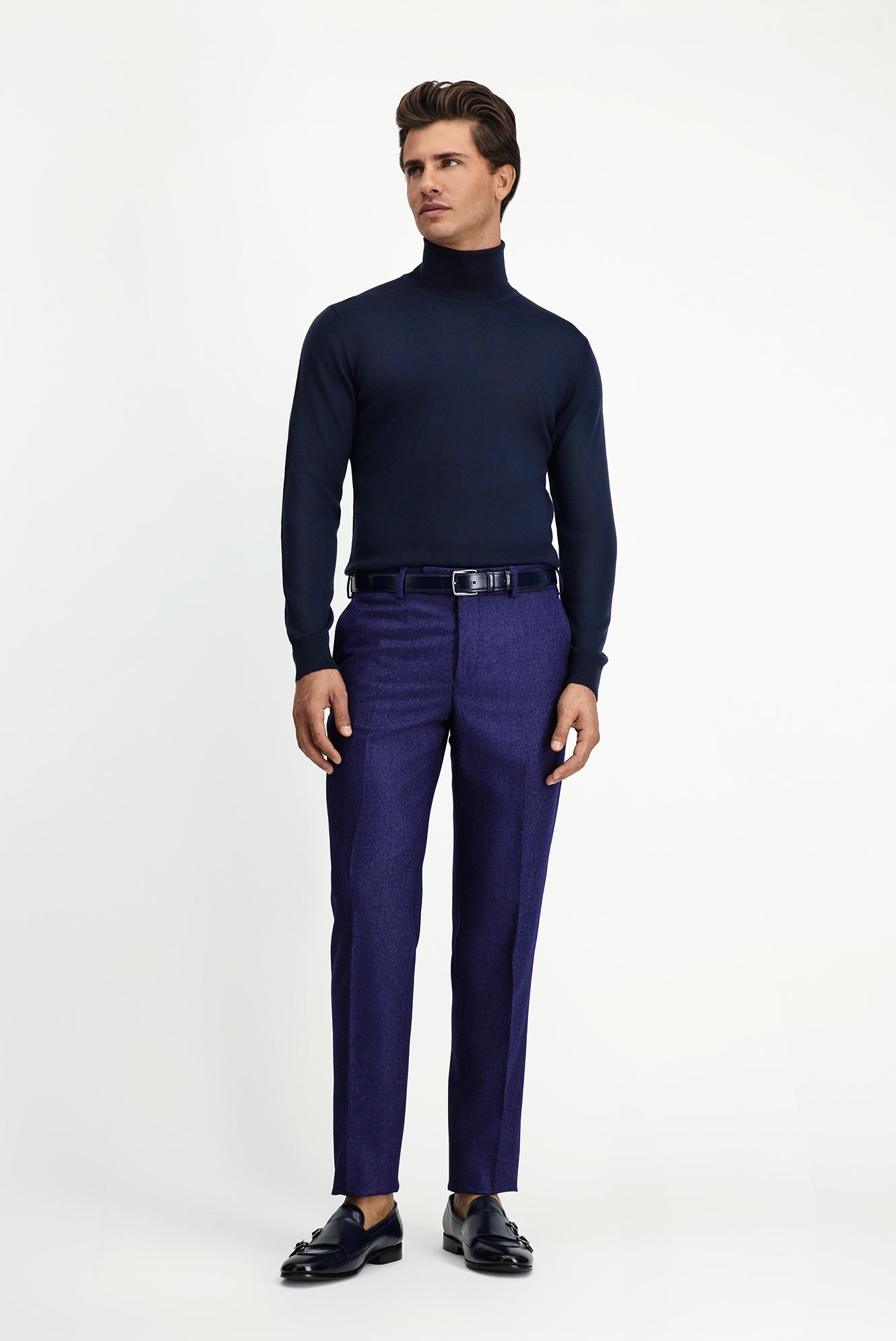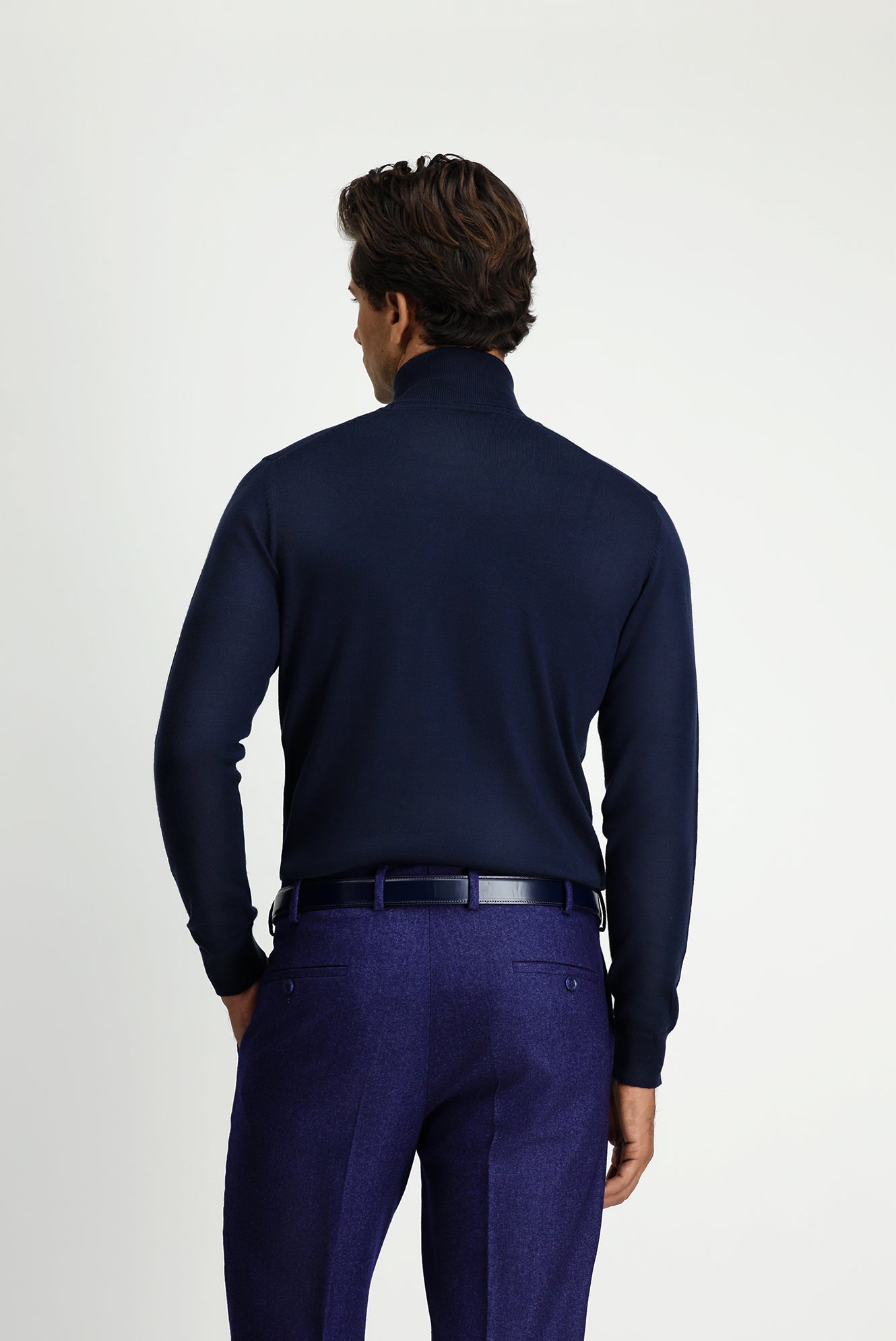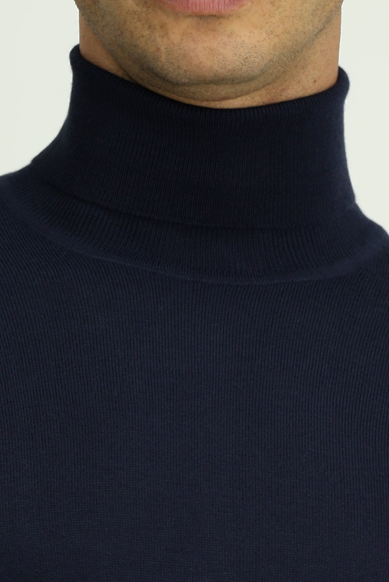 Koyu Lacivert Balıkçı Yaka Regular Fit Yünlü Triko Kazak