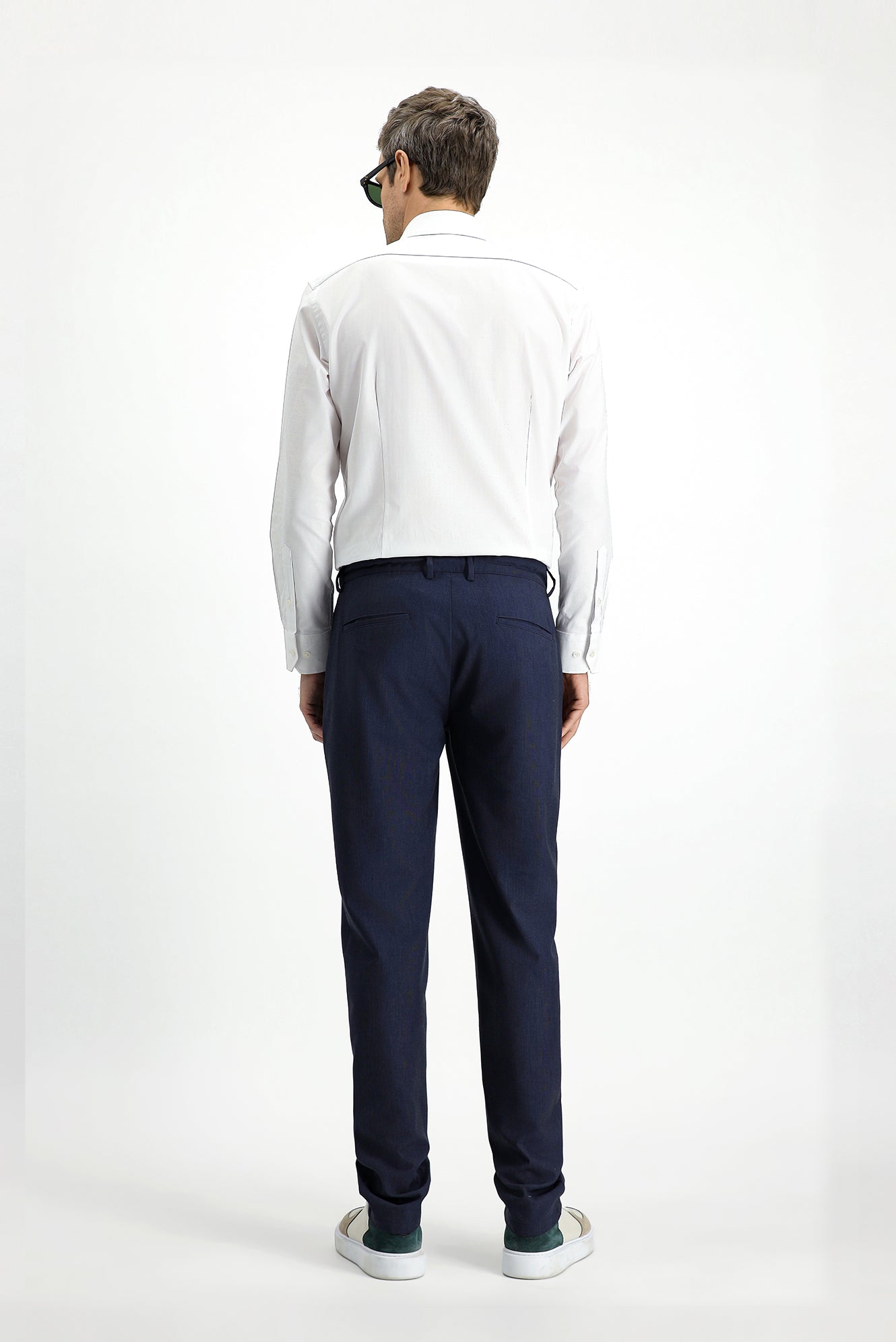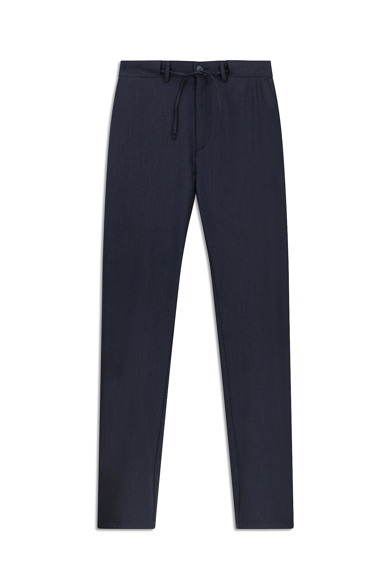 Koyu Lacivert Regular Fit Yünlü Beli Lastikli İpli Klasik Kumaş Pantolon