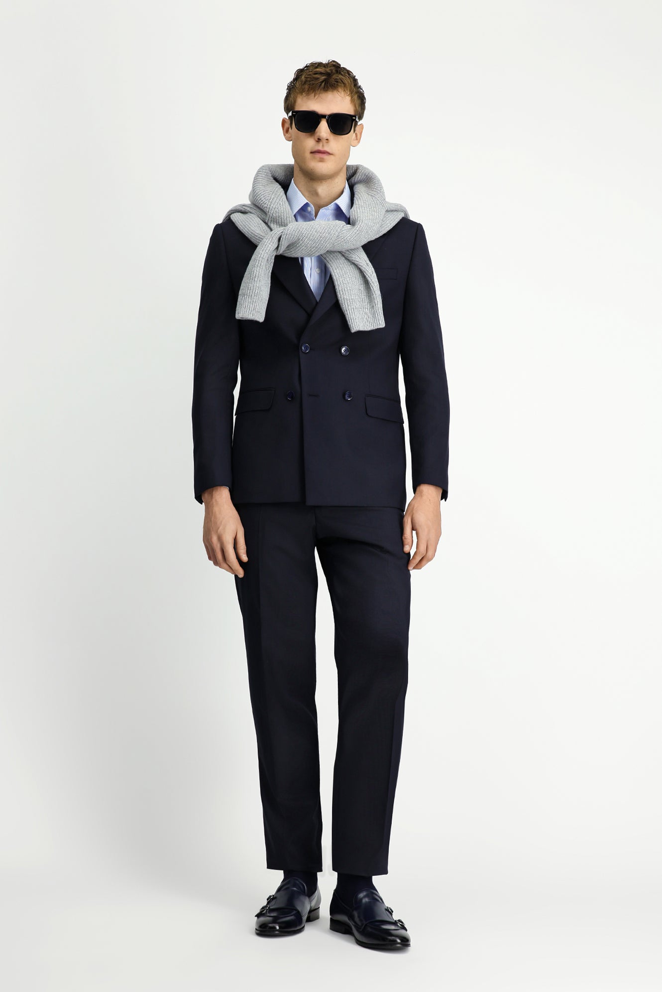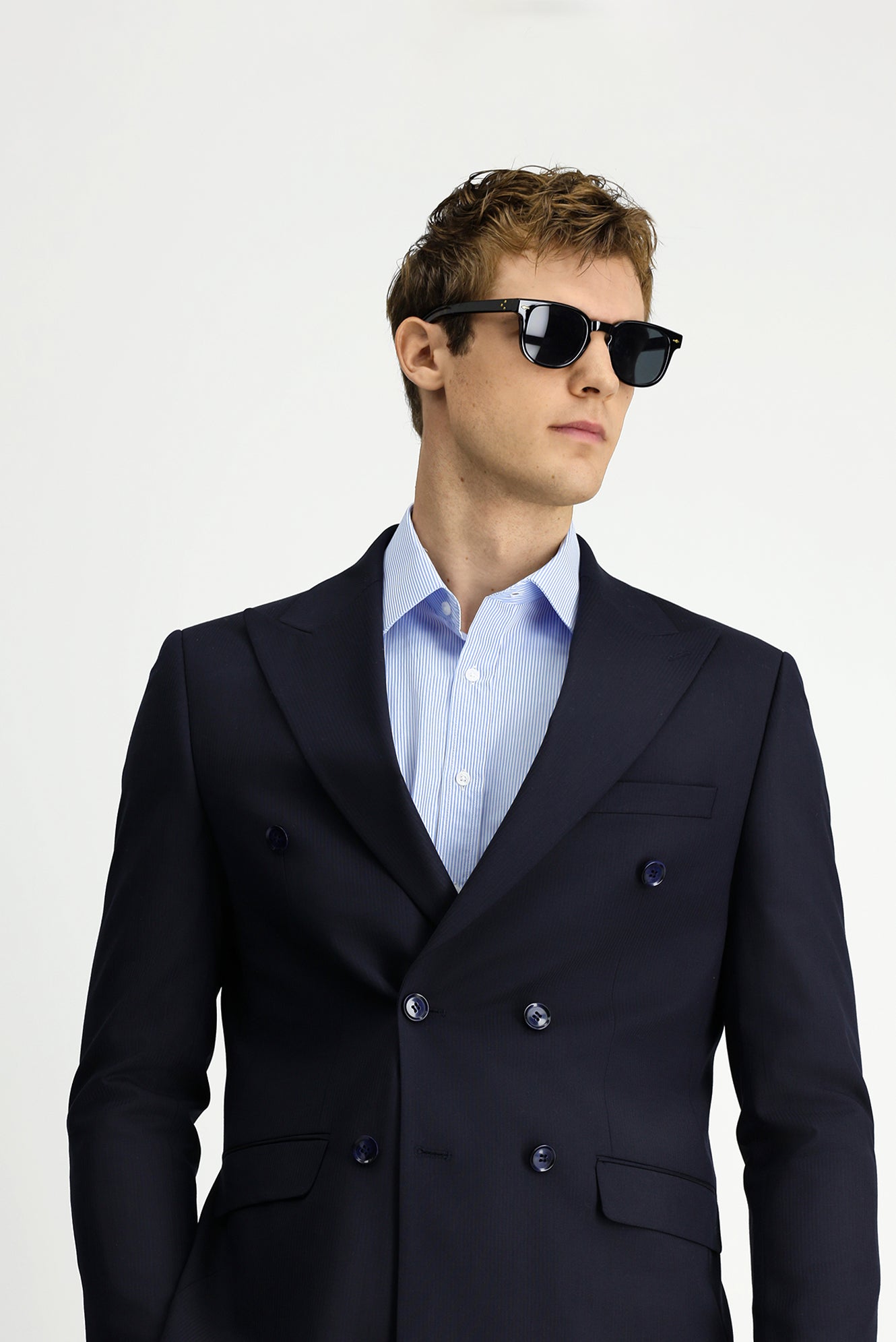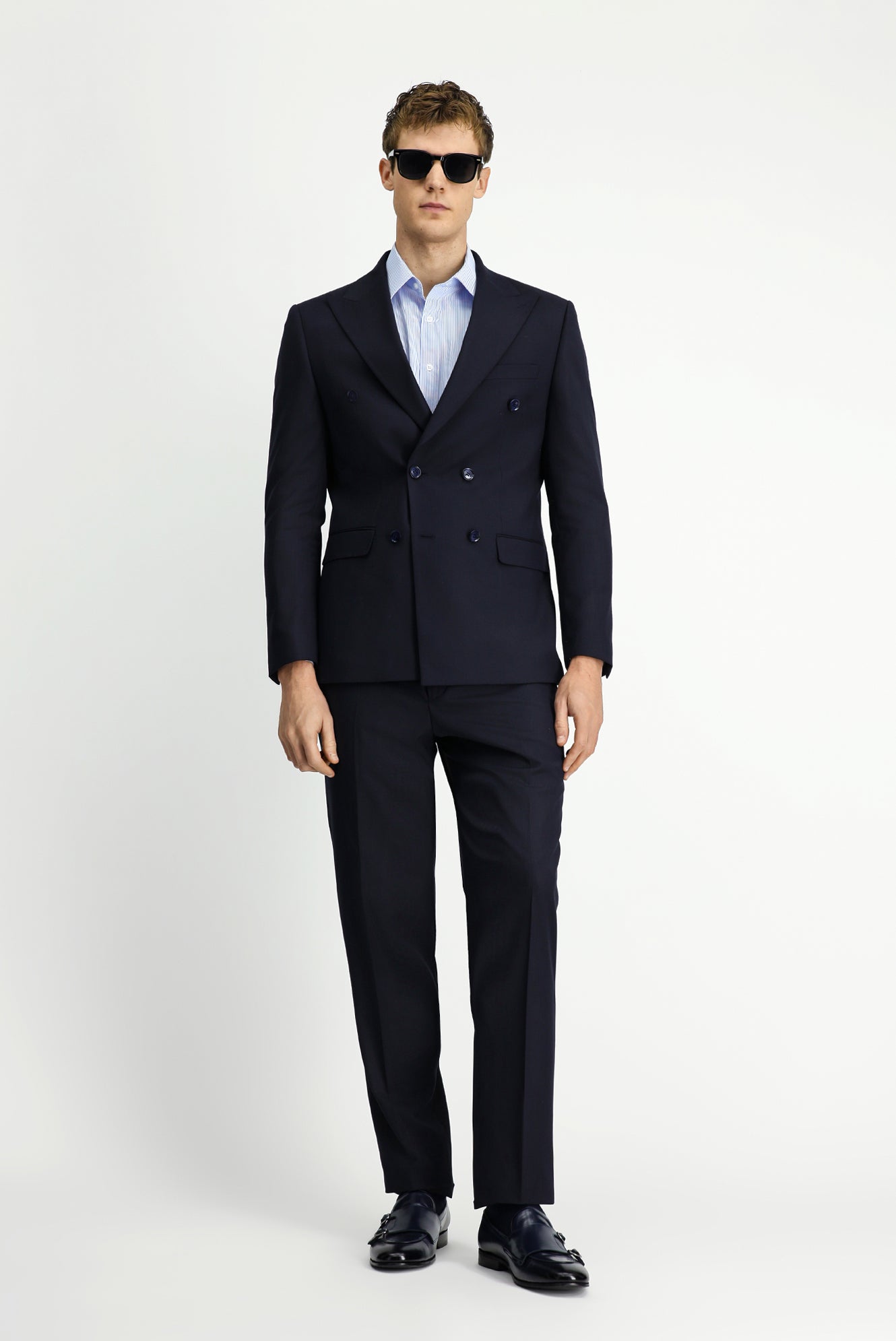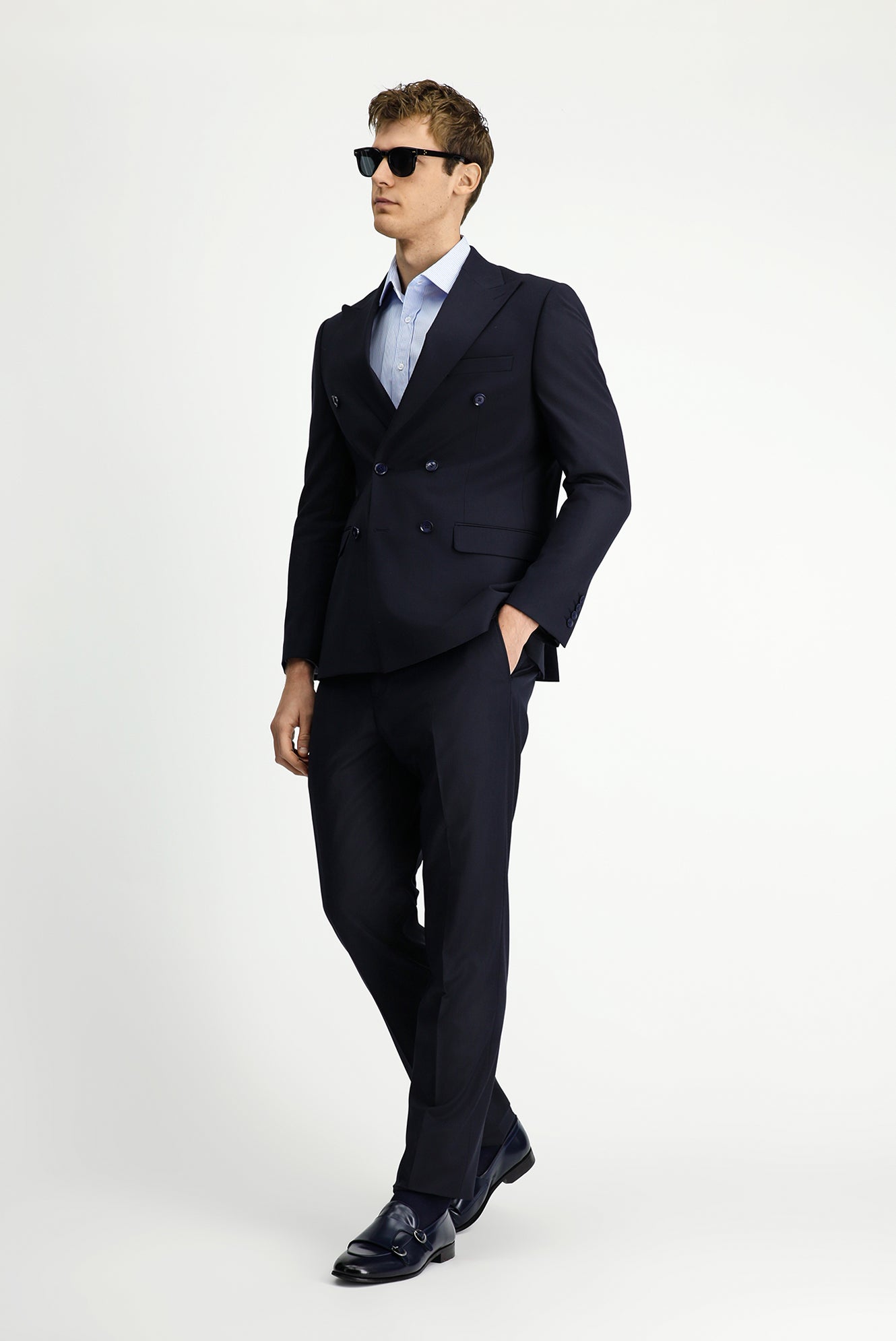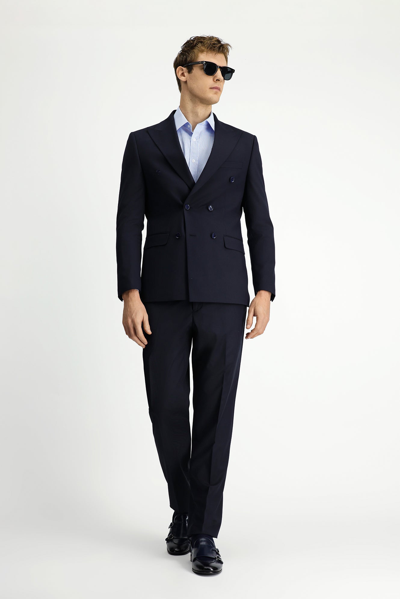 Koyu Lacivert Regular Fit Çizgili Yünlü Kruvaze Takım Elbise