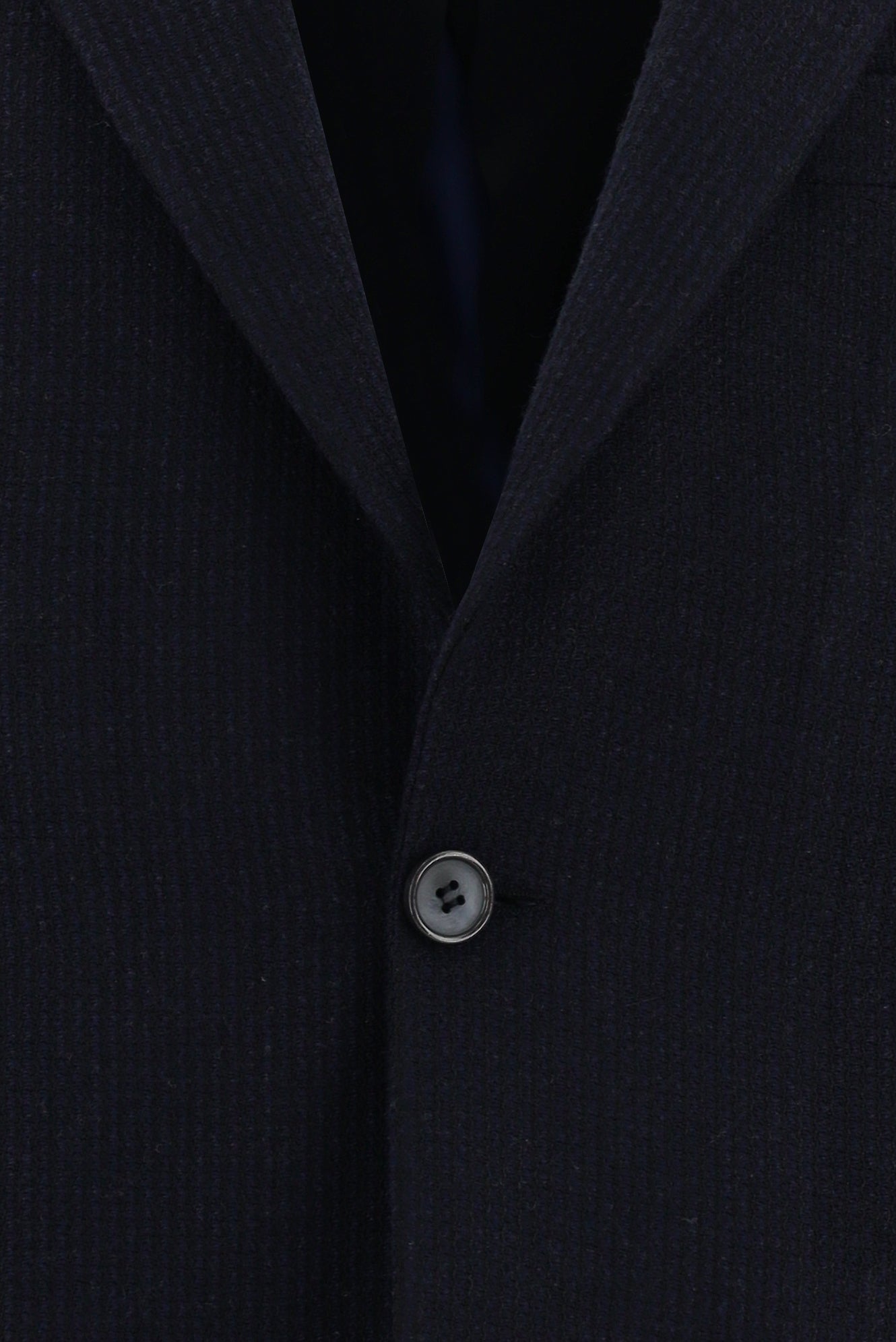 Koyu Lacivert Regular Fit Yünlü Desenli Klasik Ceket