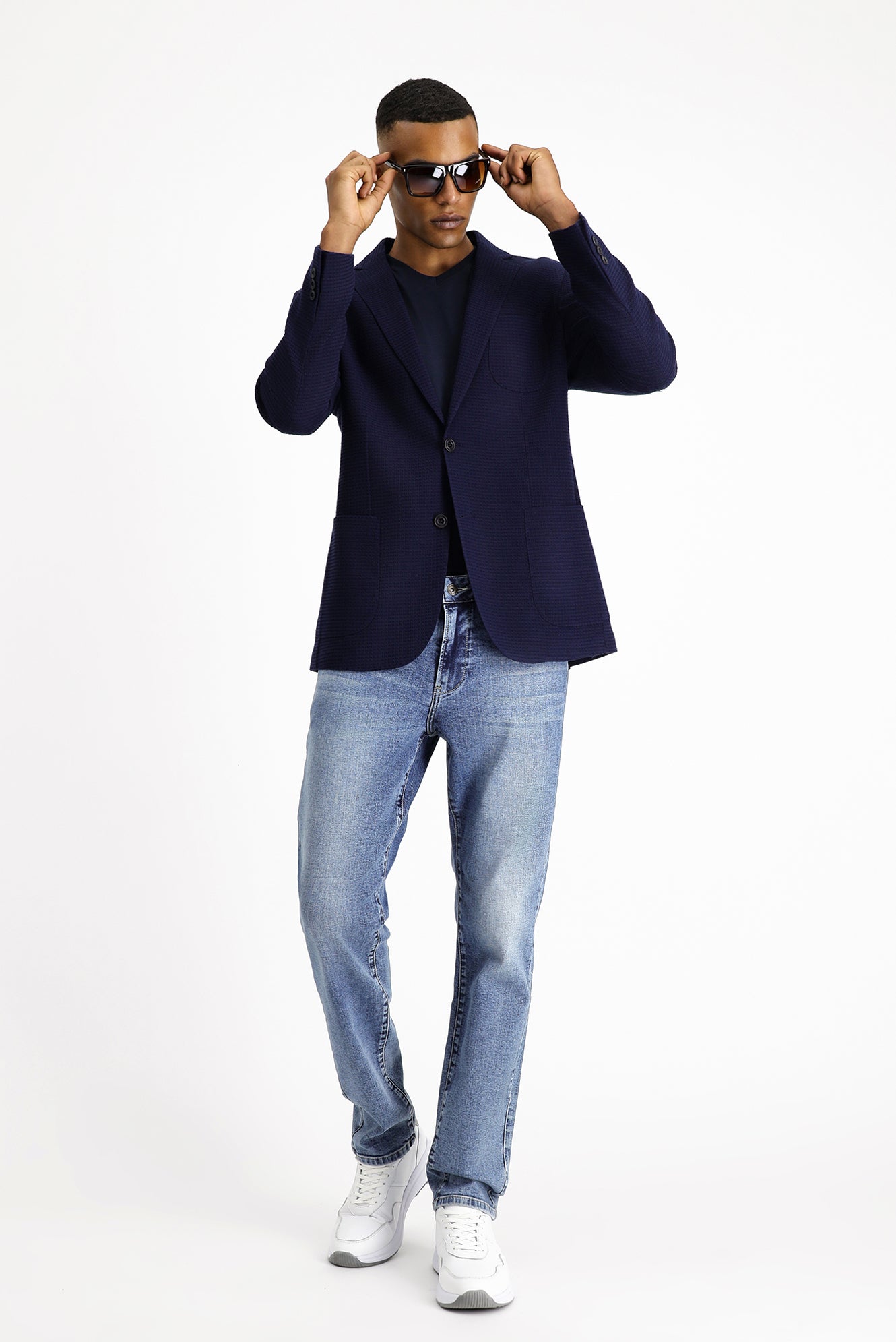Koyu Lacivert Regular Fit Yünlü Spor İtalyan Ceket