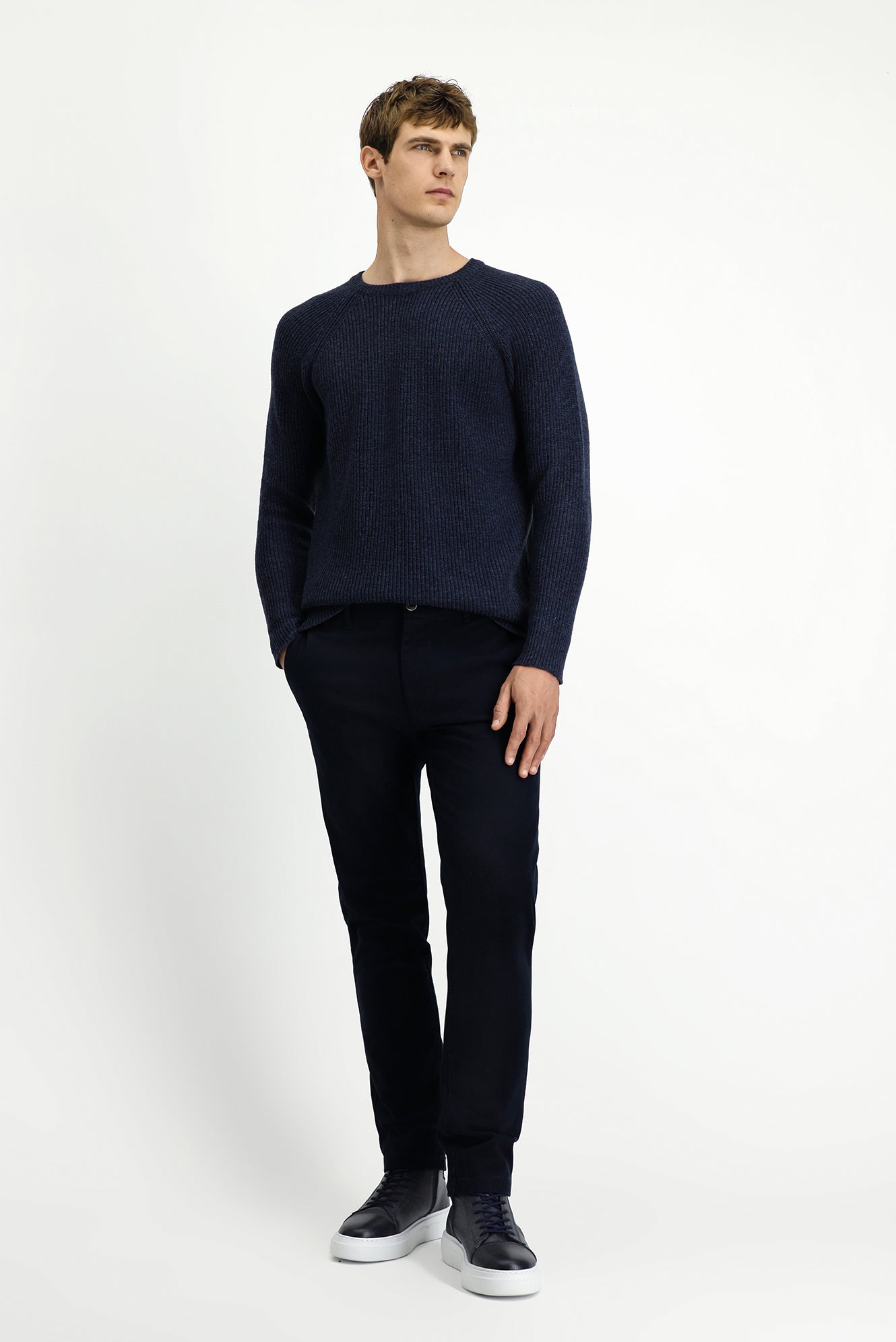 Koyu Lacivert 7 Drop Slim Fit Dar Kesim Likralı Kanvas / Chino Pantolon