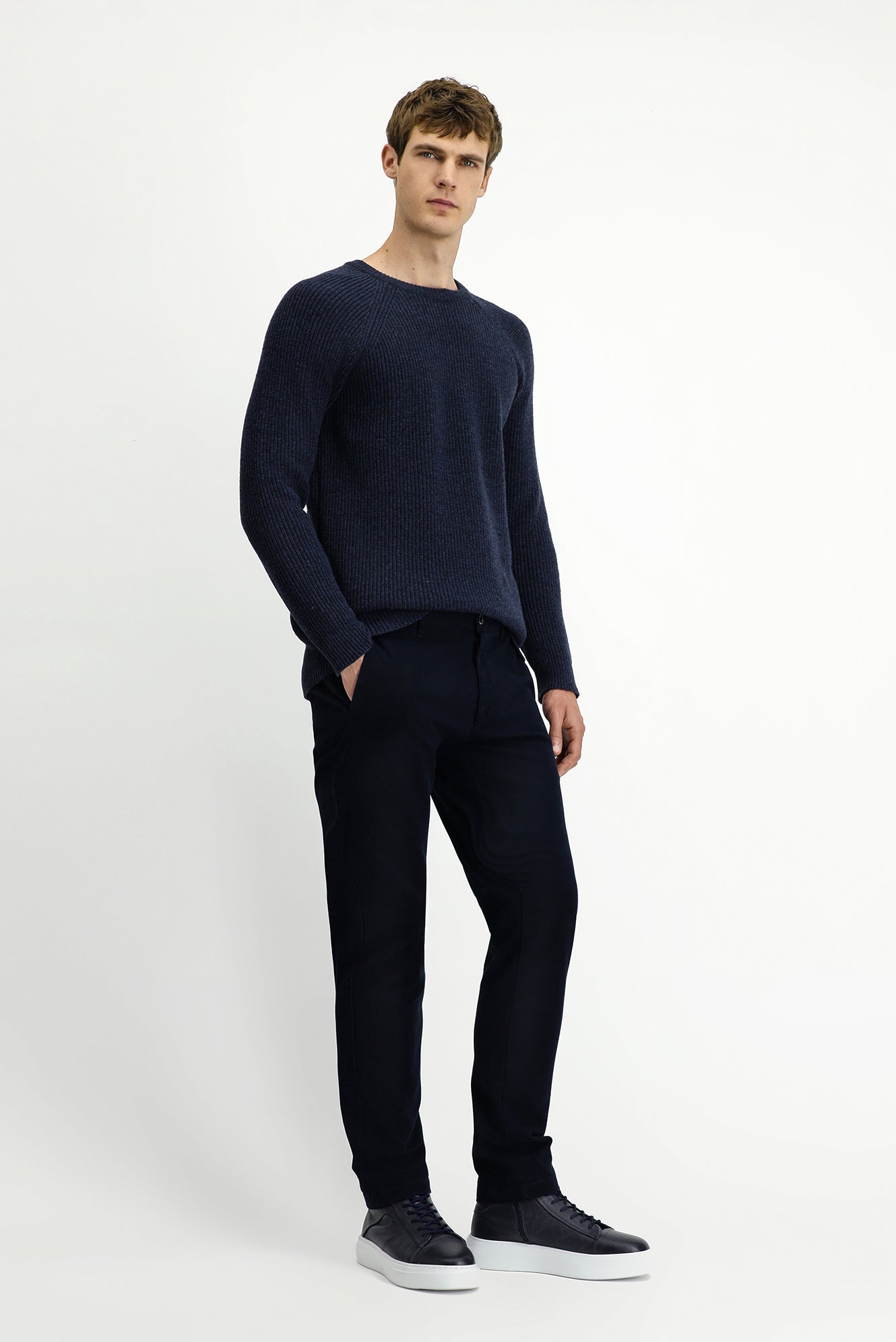 Koyu Lacivert Slim Fit Dar Kesim Likralı Kanvas / Chino Pantolon