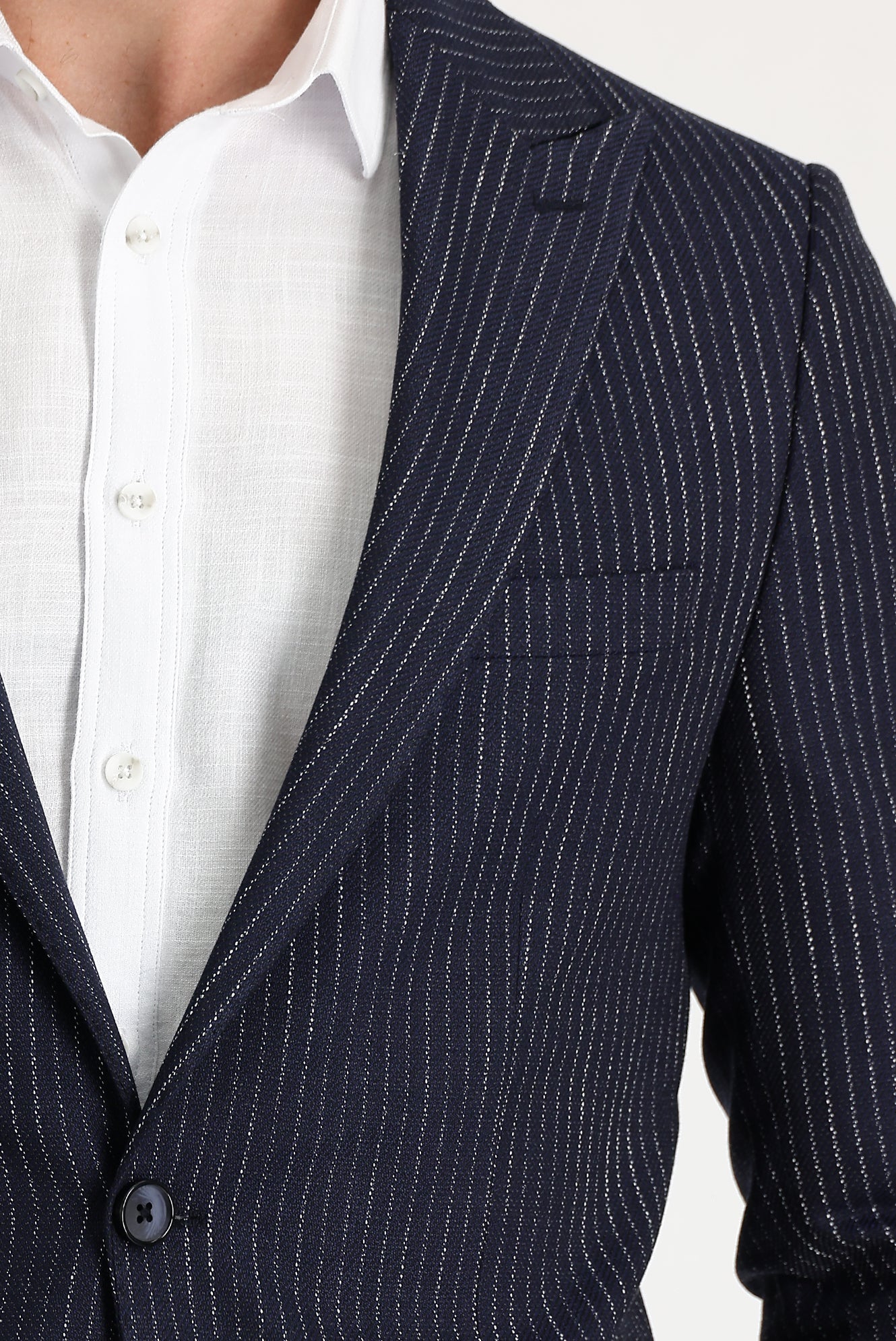 Koyu Lacivert Relaxed Fit Rahat Kesim Çizgili Blazer Ceket
