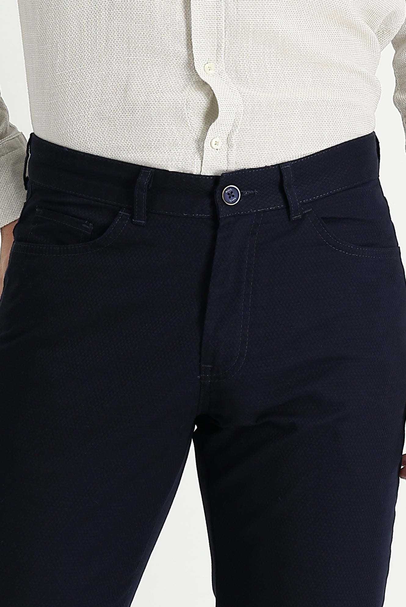Koyu Lacivert Relaxed Fit Rahat Kesim Desenli Likralı Kanvas / Chino Pantolon