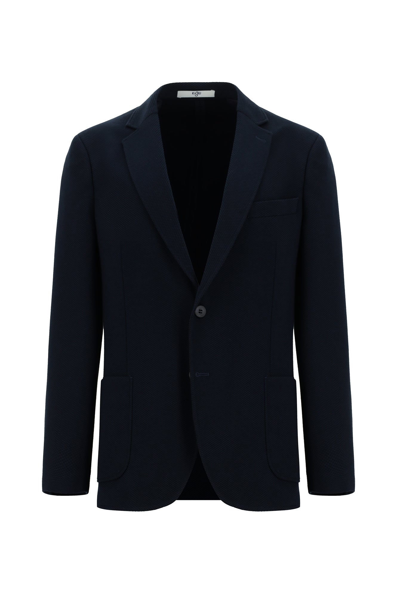Koyu Lacivert Relaxed Fit Rahat Kesim Desenli Pamuklu Ceket