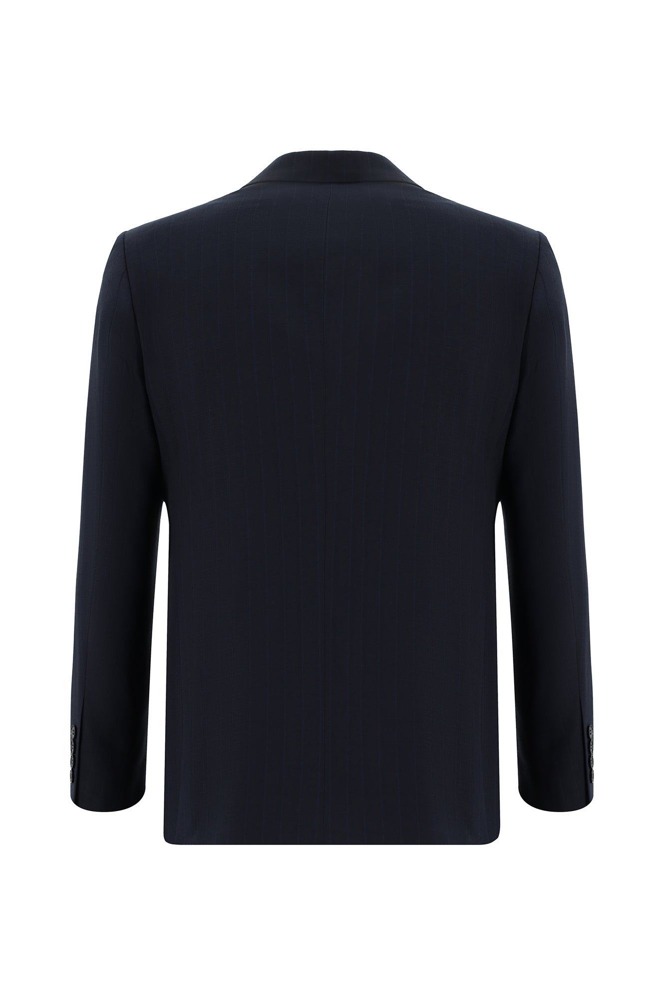 Koyu Lacivert 4 Drop Relaxed Fit Rahat Kesim Klasik Çizgili Takım Elbise