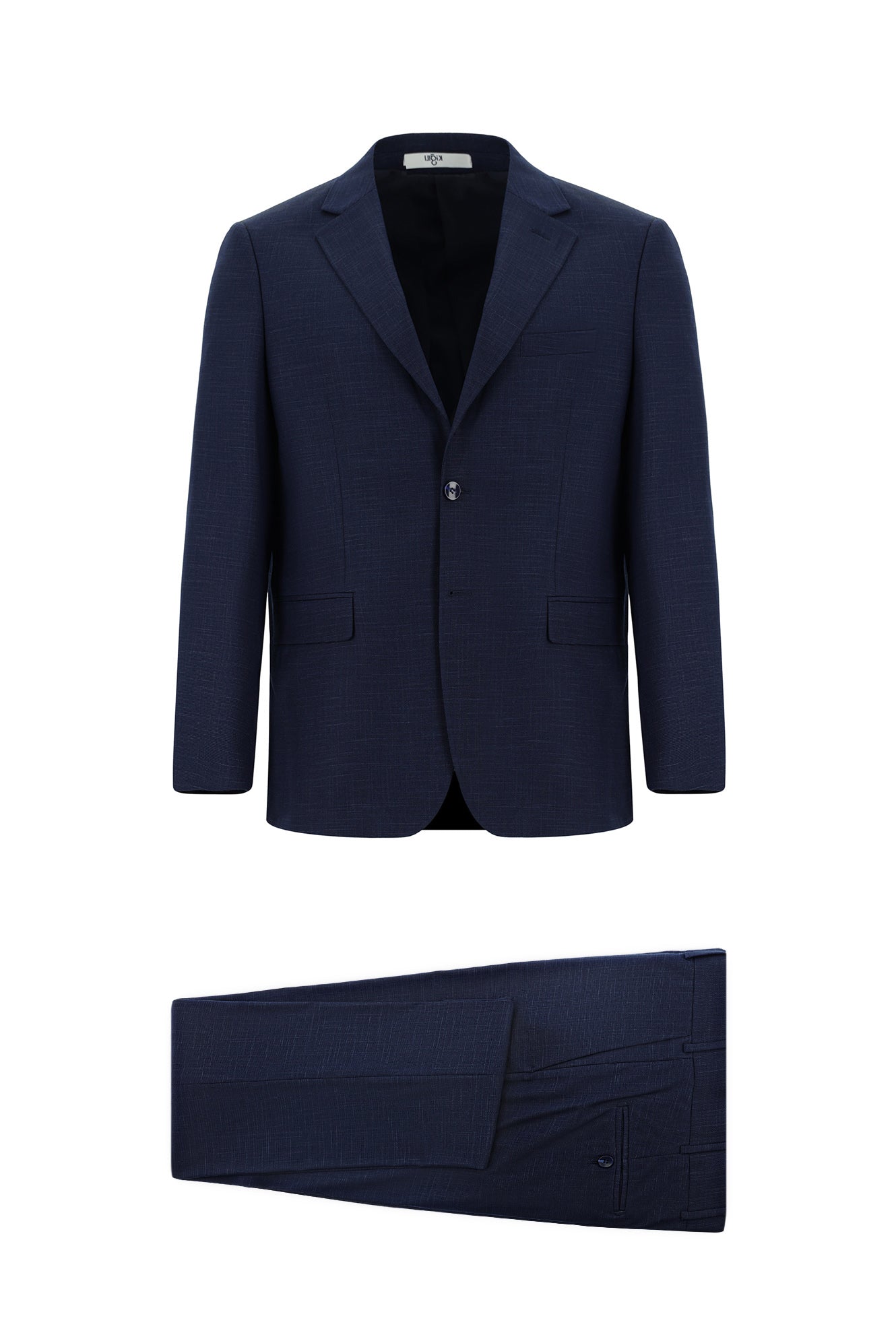 Koyu Lacivert Relaxed Fit Rahat Kesim Klasik Desenli Takım Elbise