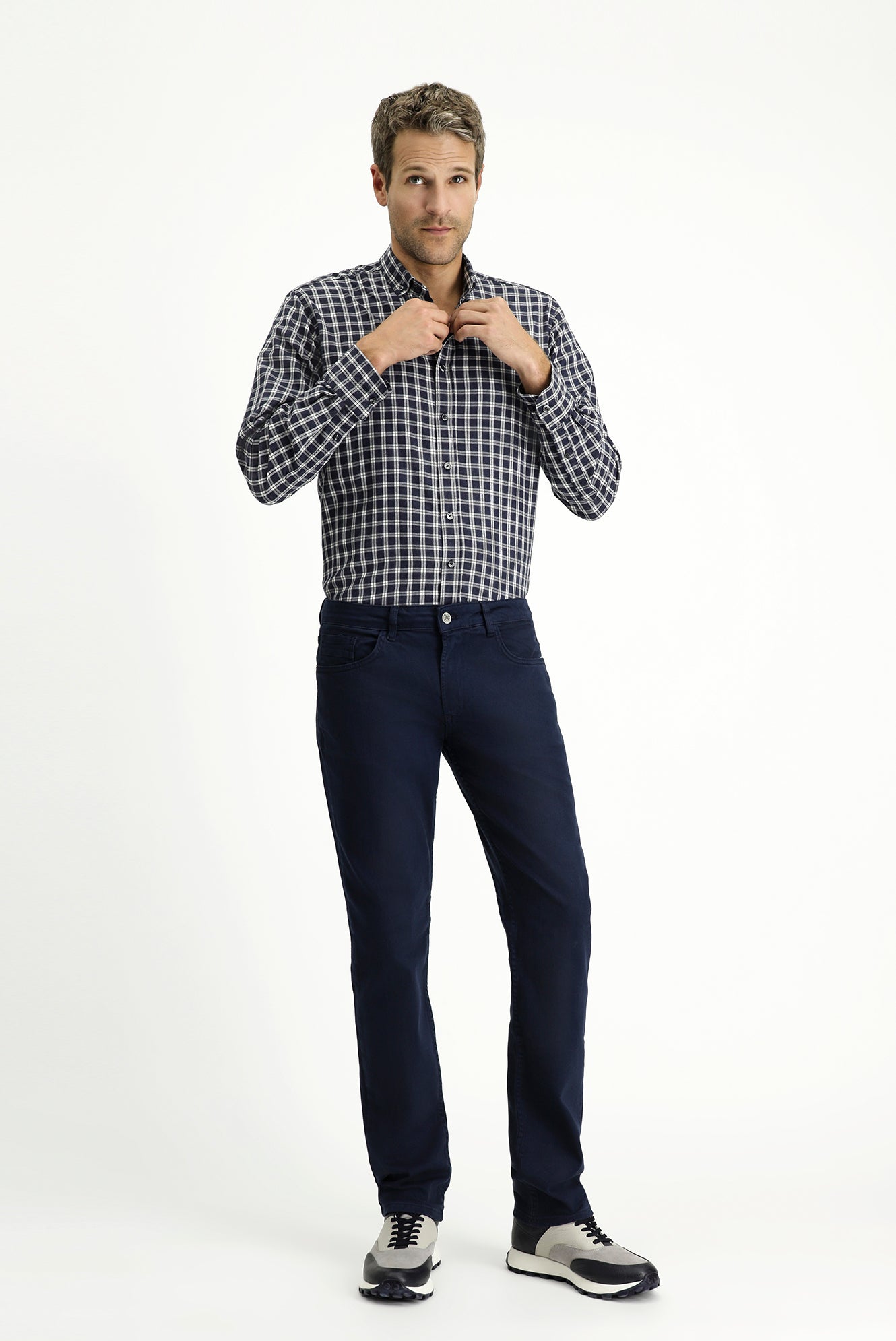 Koyu Lacivert Relaxed Fit Rahat Kesim Likralı Kanvas / Chino Pantolon