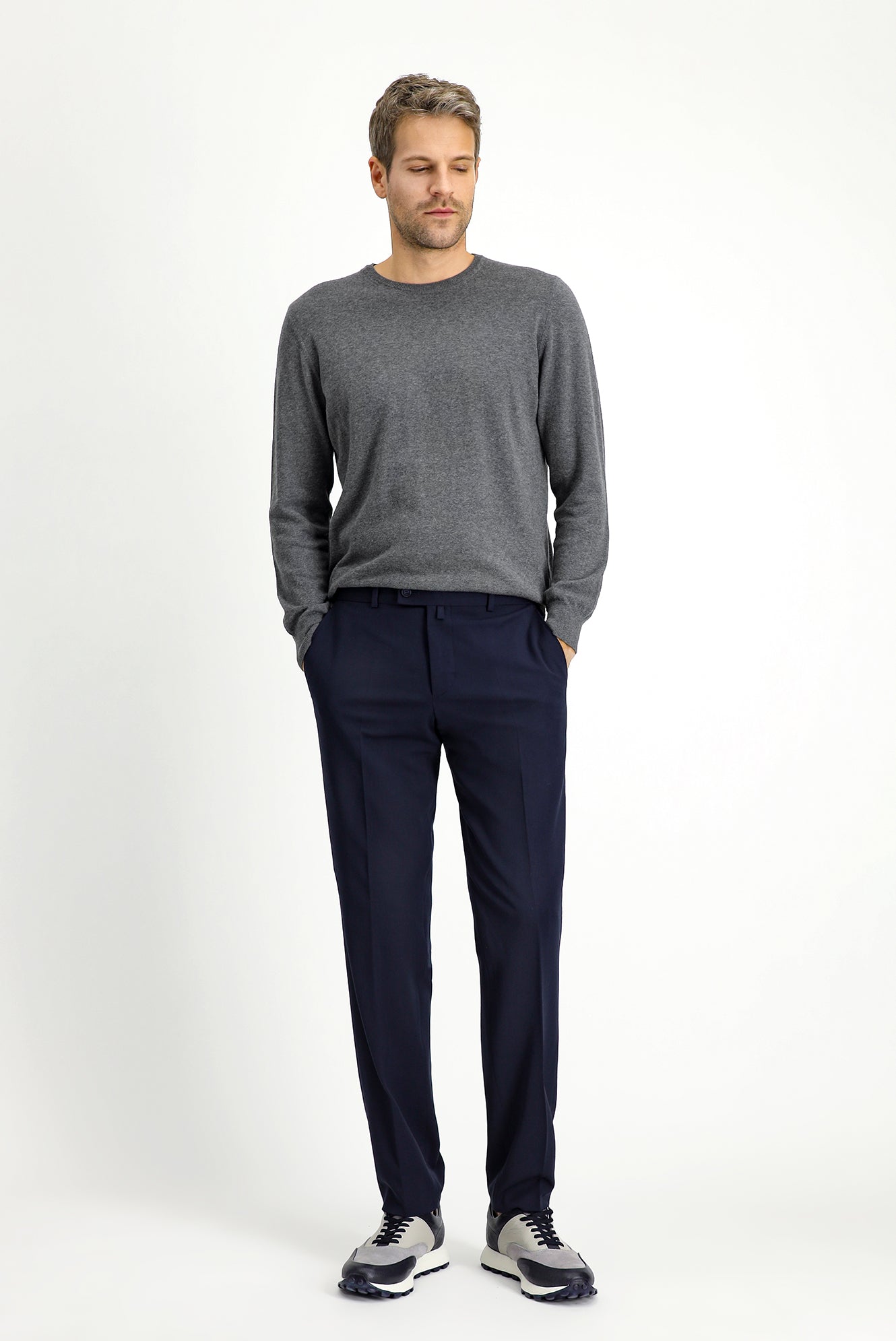 Koyu Lacivert Relaxed Fit Rahat Kesim Likralı Klasik Kumaş Pantolon