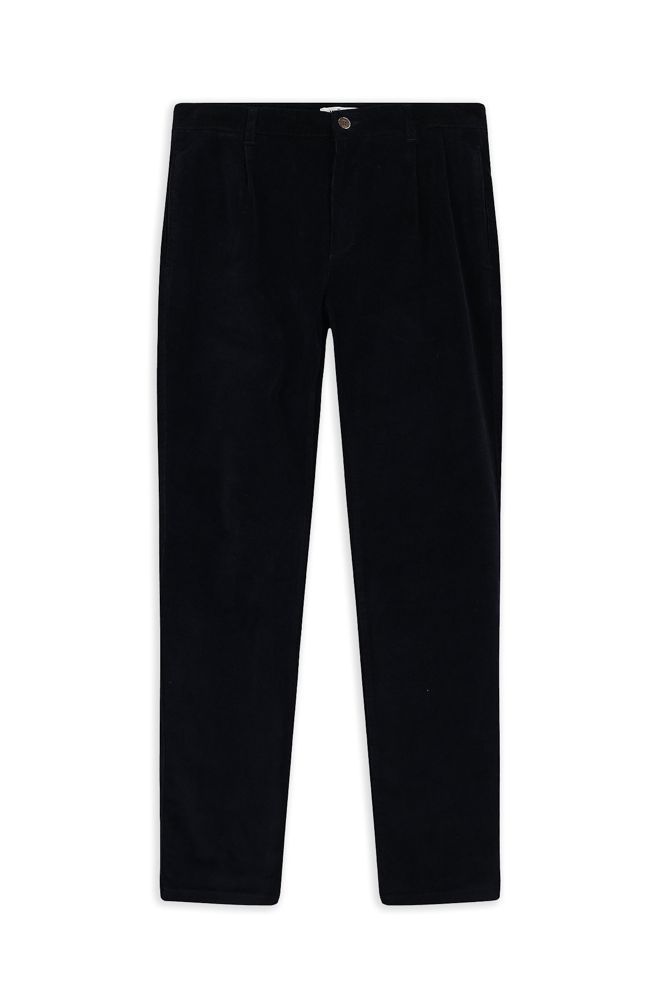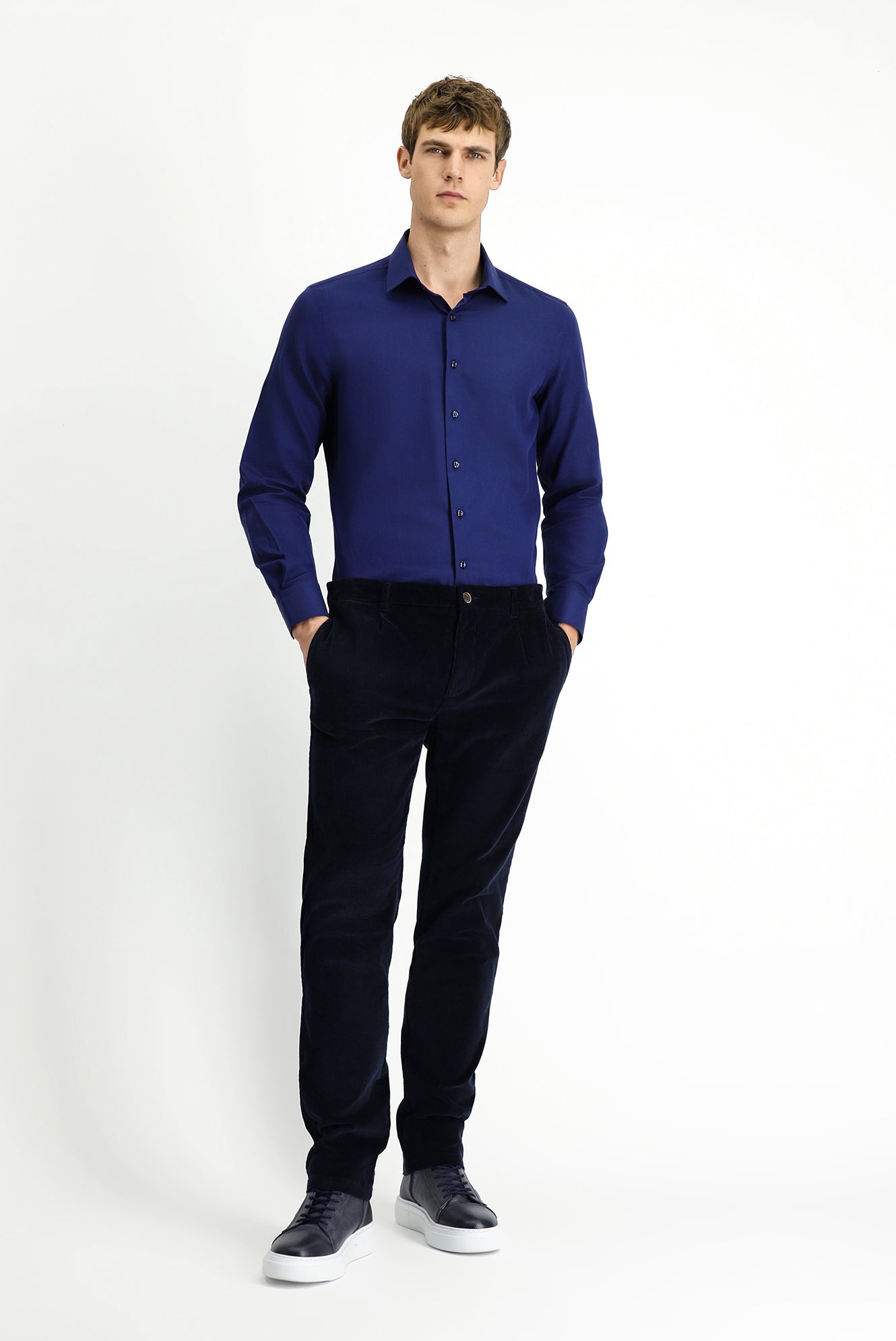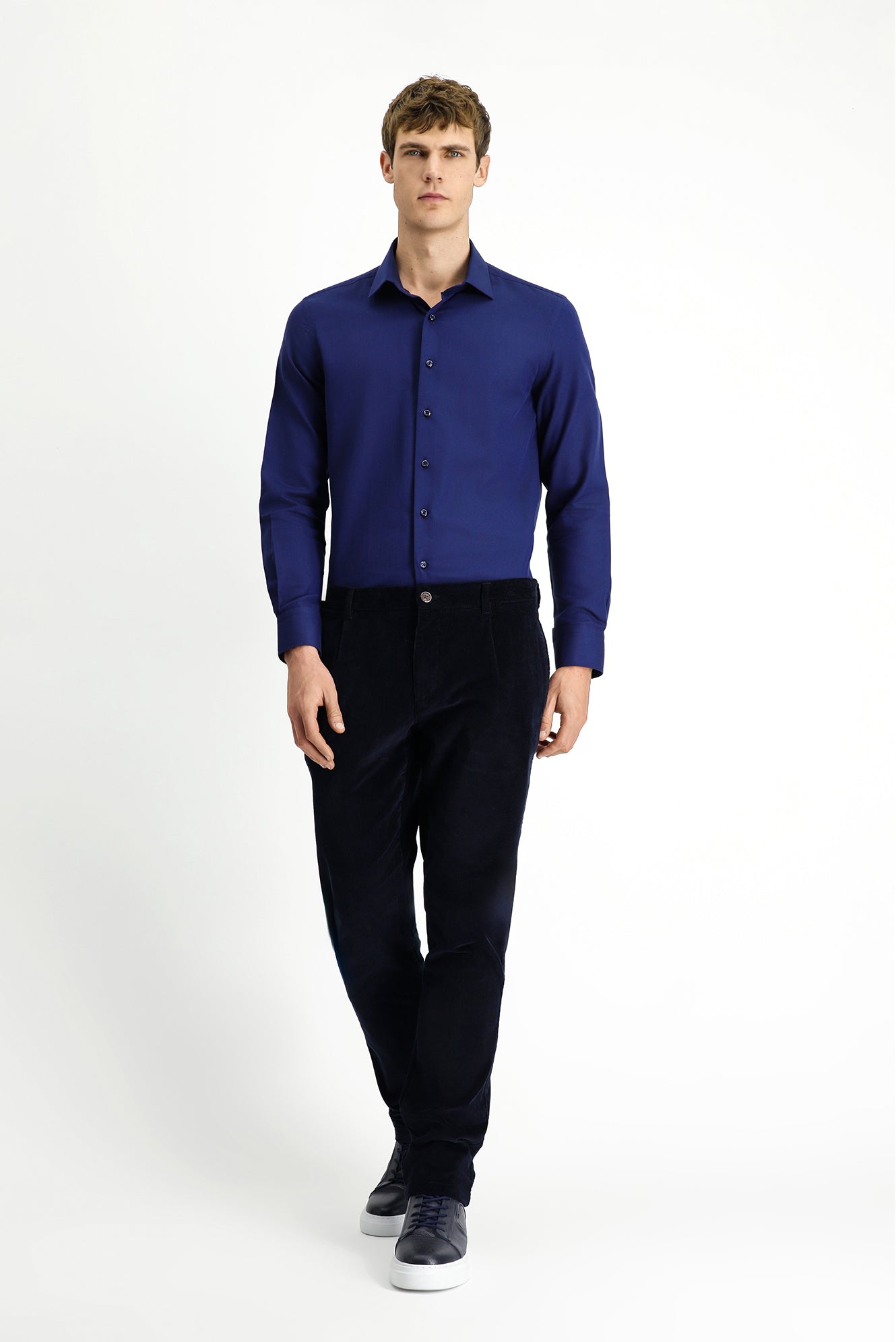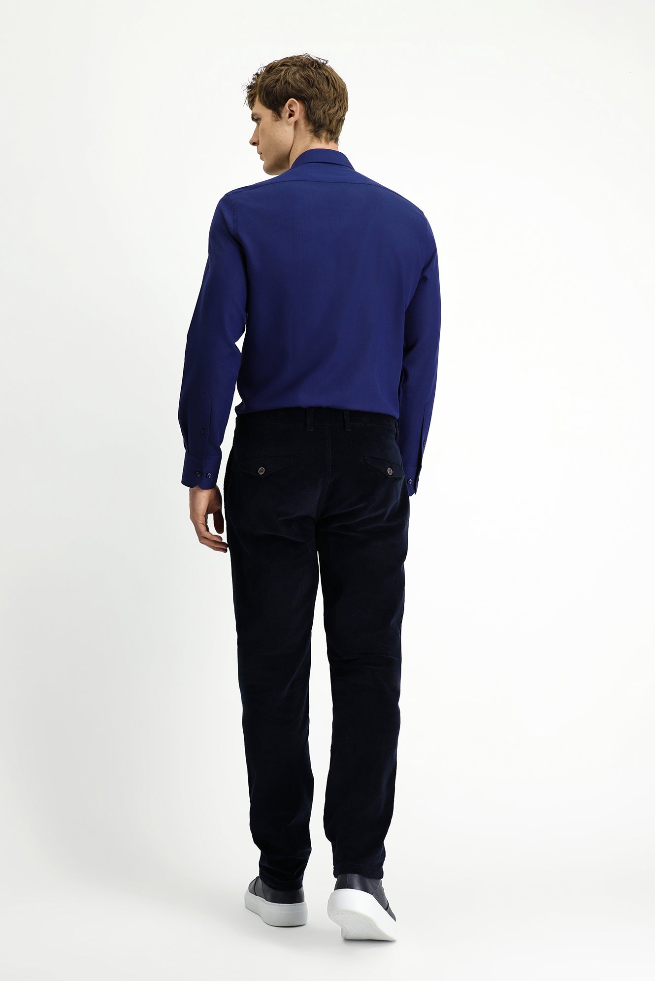 Koyu Lacivert 4 Drop Relaxed Fit Rahat Kesim Likralı Pileli Kadife Pantolon