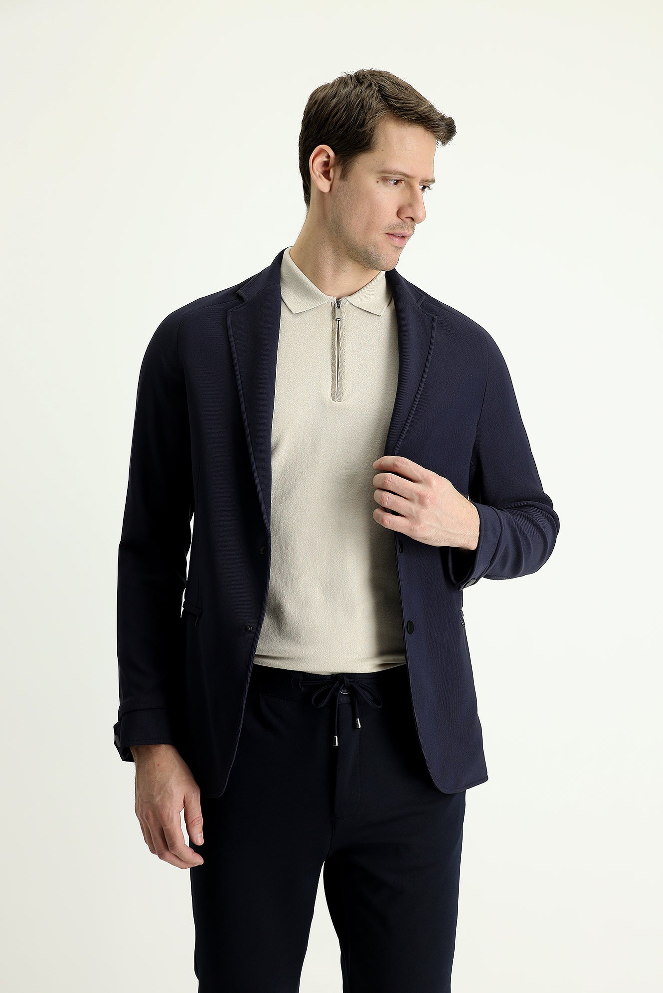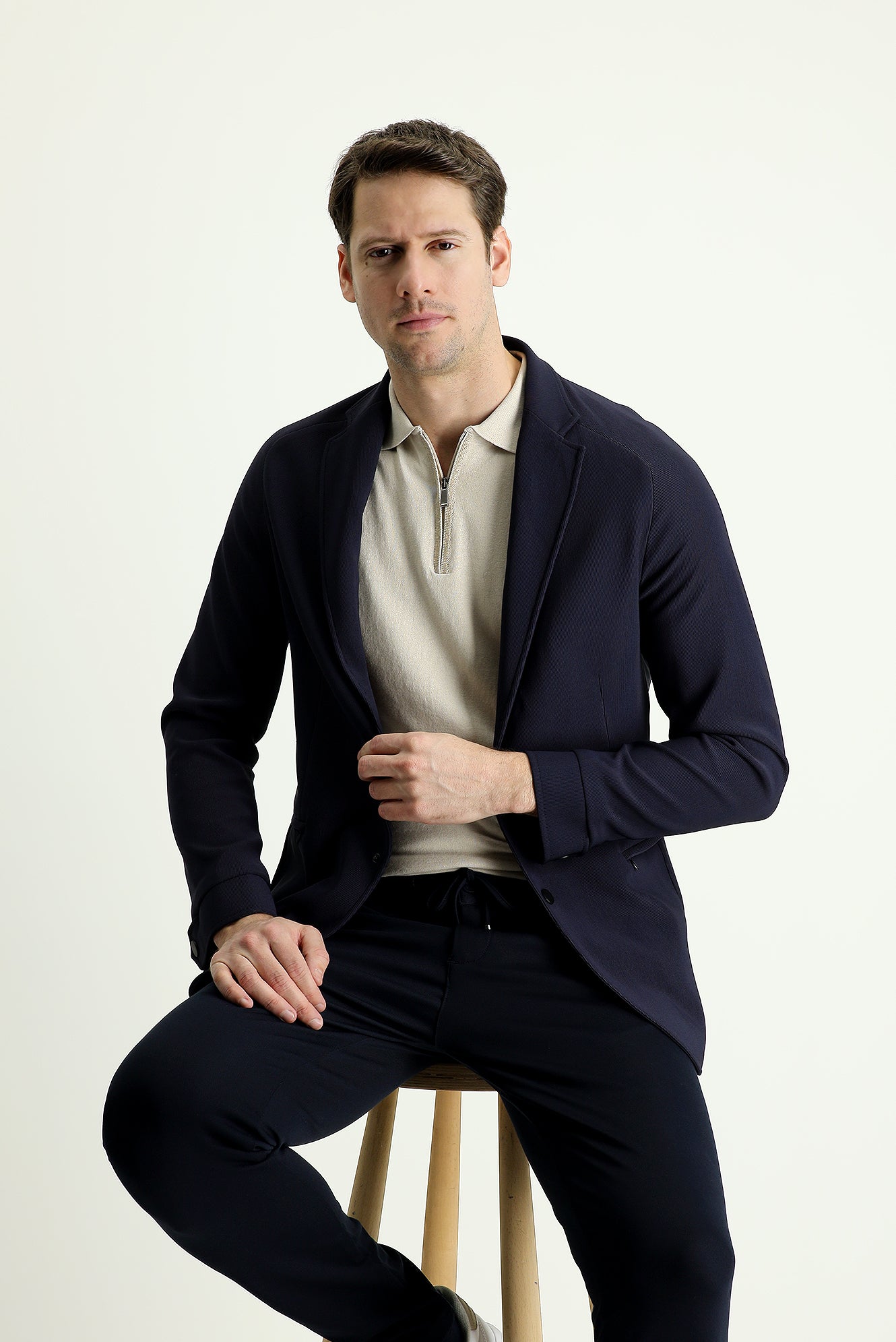 Koyu Lacivert Relaxed Fit Rahat Kesim Spor Örme Ceket