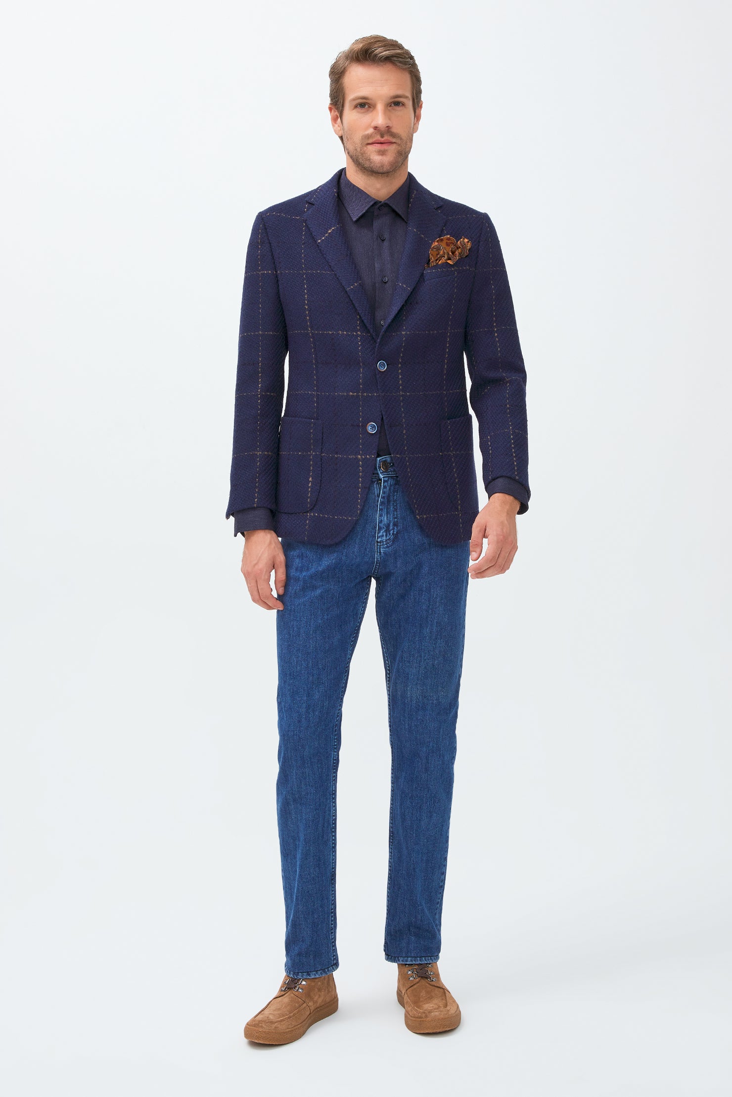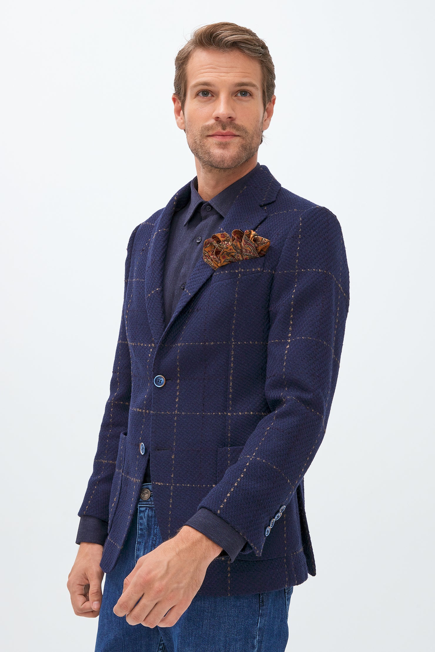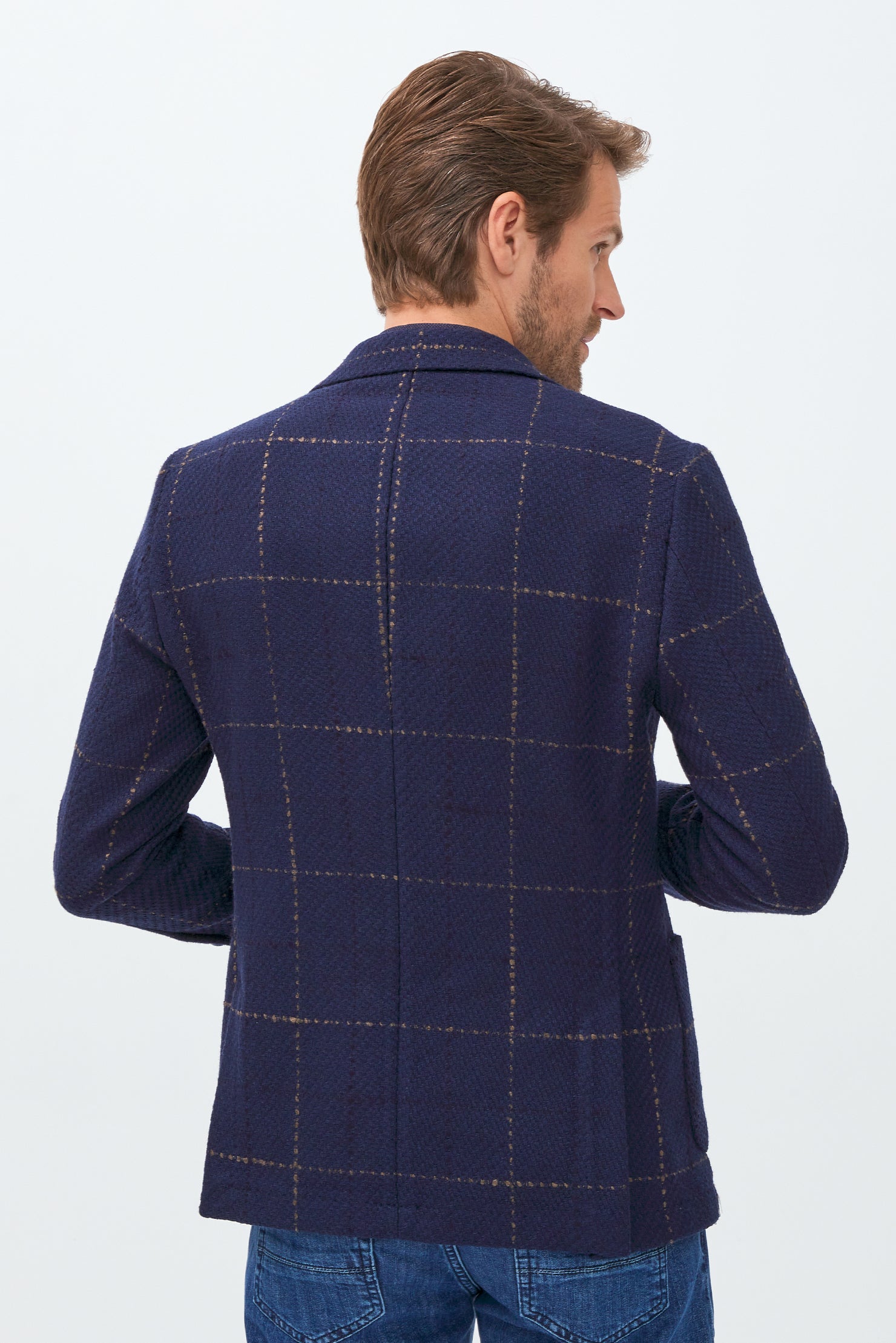 Koyu Lacivert Relaxed Fit Rahat Kesim Yünlü Desenli Ceket