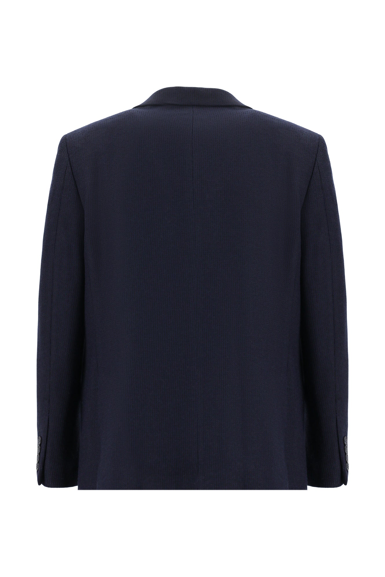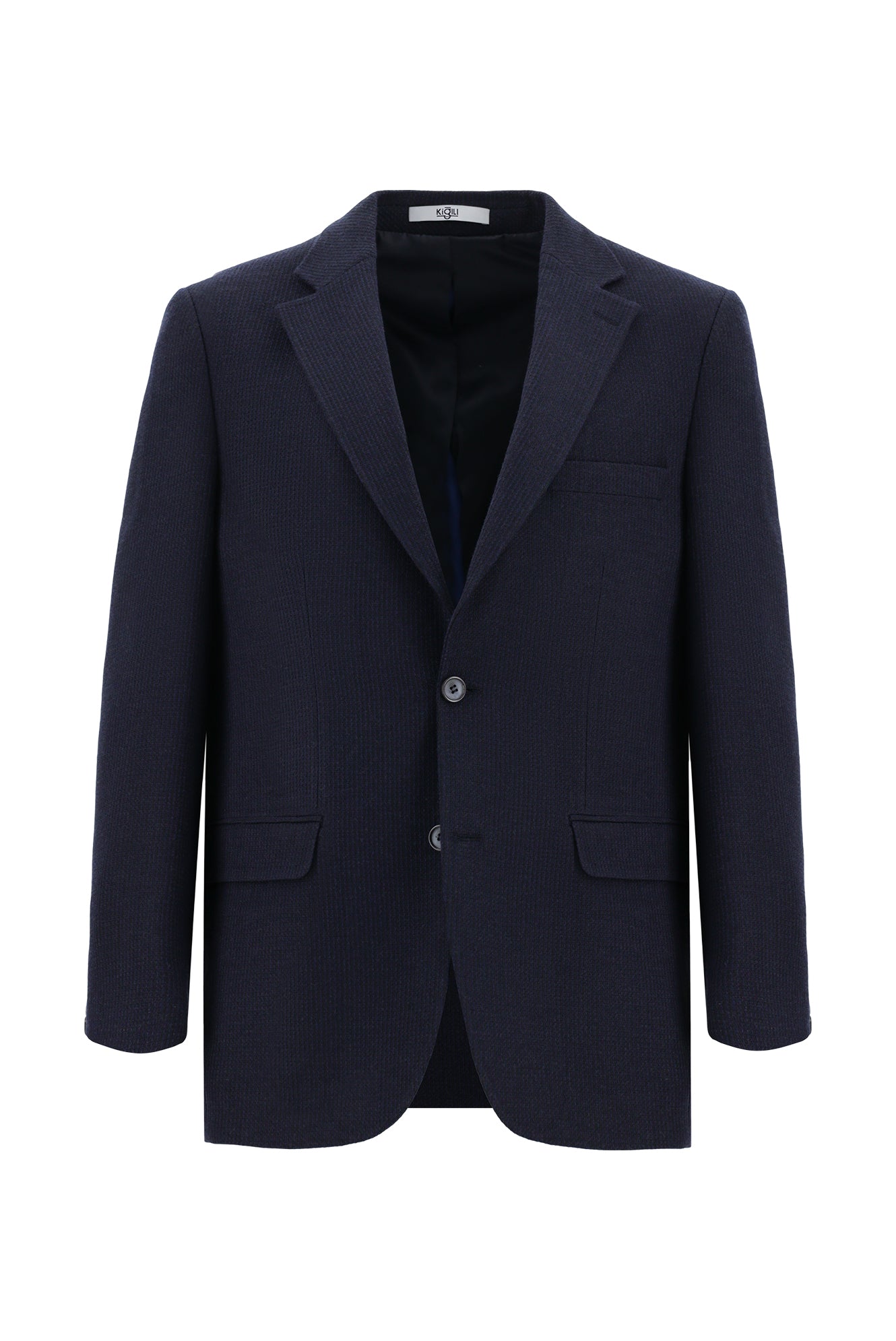Koyu Lacivert Relaxed Fit Rahat Kesim Yünlü Desenli Klasik Ceket