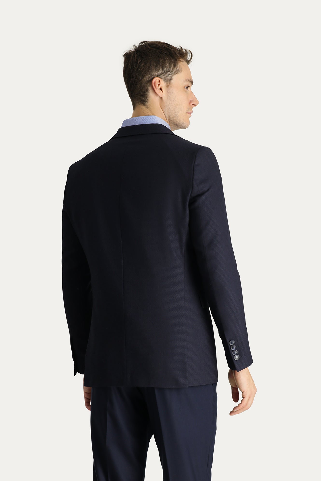 Koyu Lacivert Relaxed Fit Rahat Kesim Yünlü Klasik Desenli Ceket