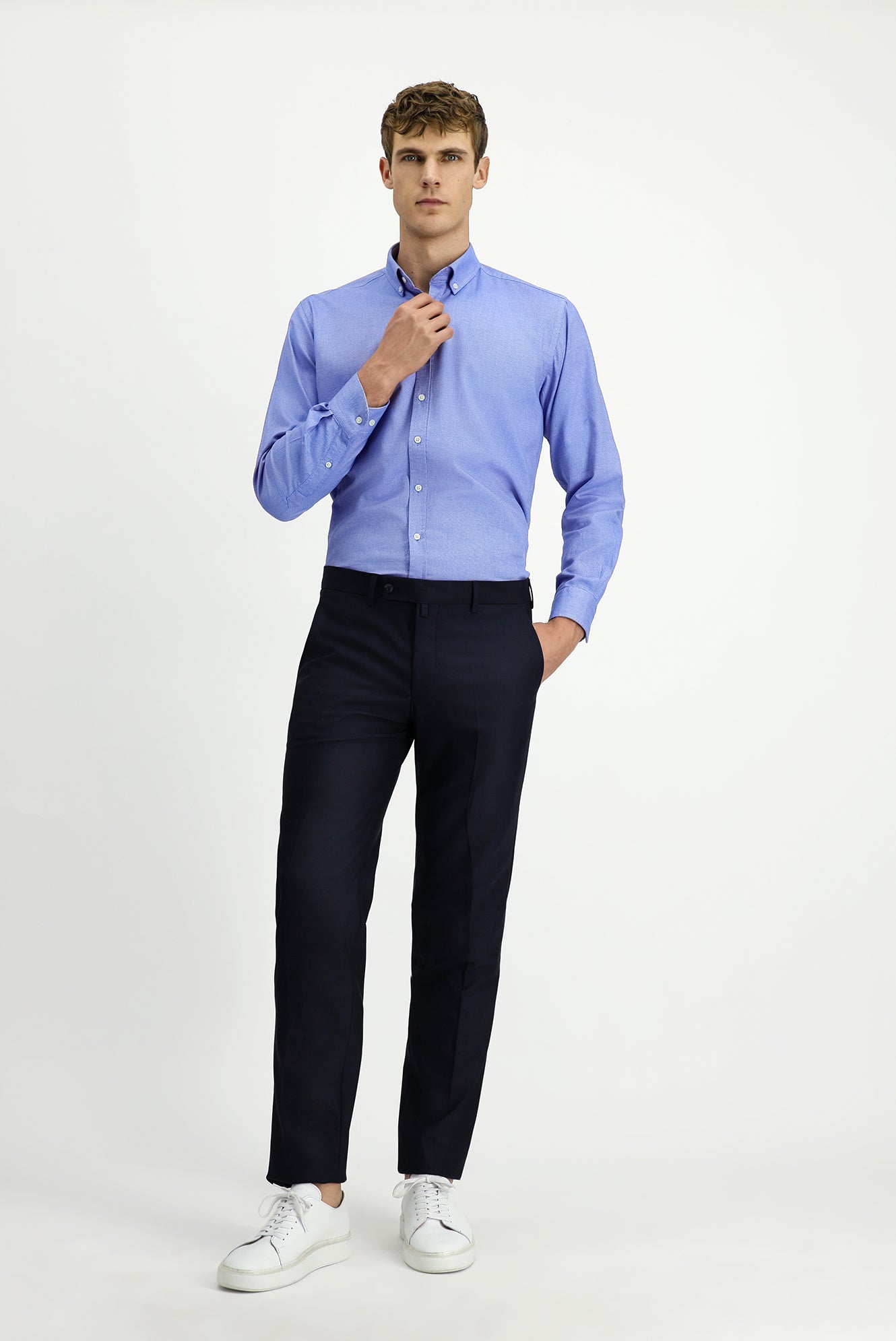 Koyu Lacivert Relaxed Fit Rahat Kesim Yünlü Klasik Kumaş Pantolon