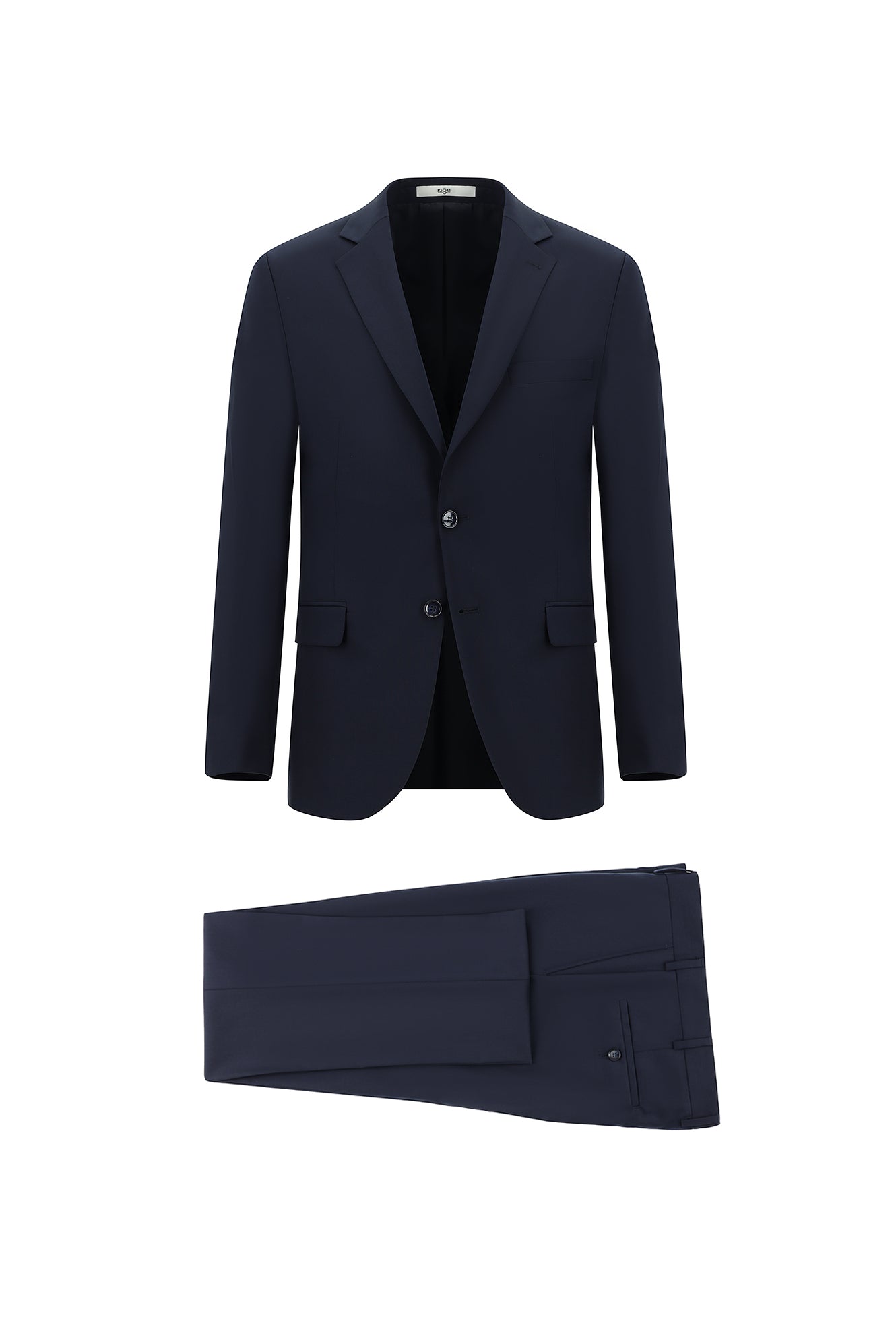 Koyu Lacivert 4 Drop Relaxed Fit Rahat Kesim Yünlü Klasik Takım Elbise