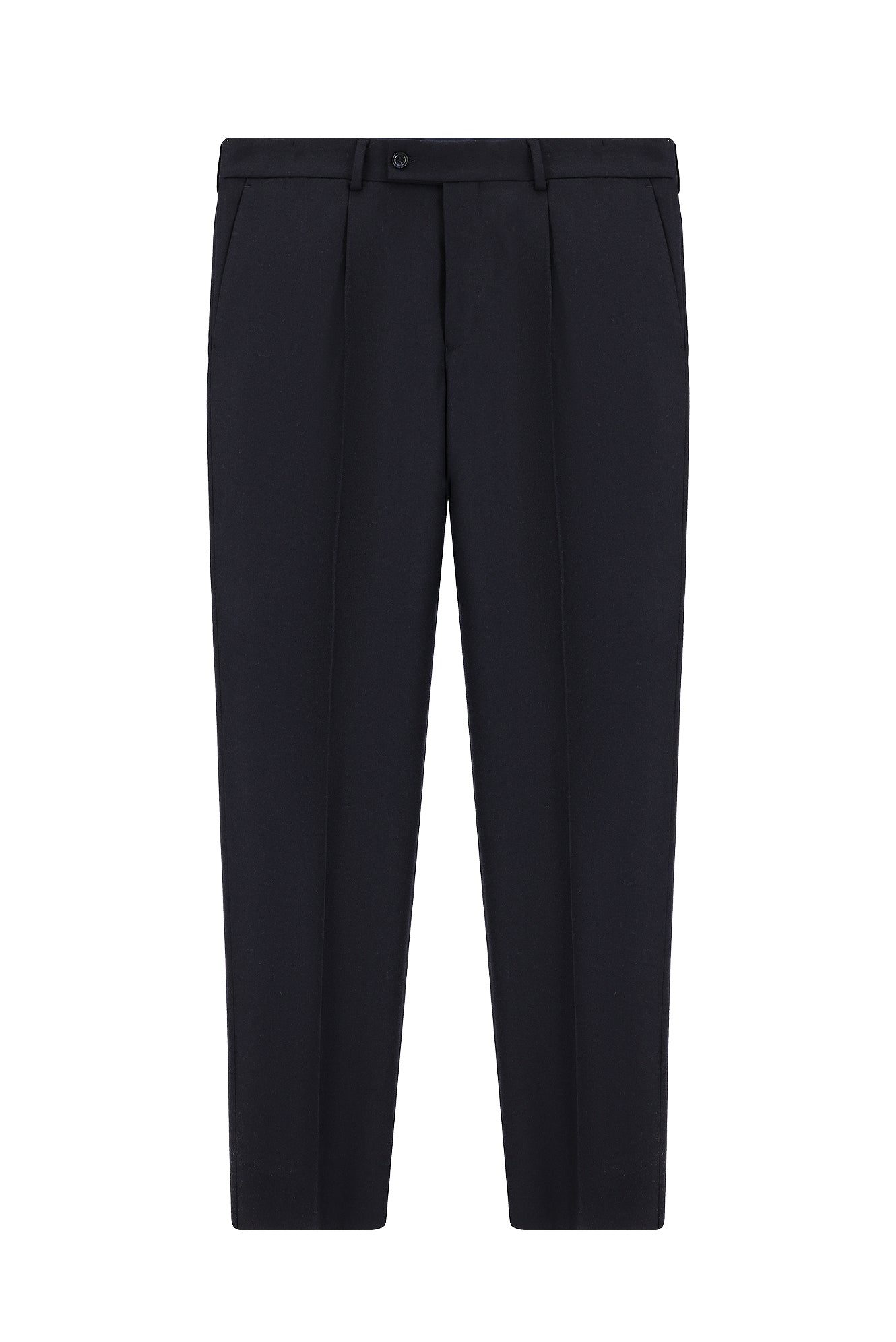 Koyu Lacivert Relaxed Fit Rahat Kesim Yünlü Pileli Flanel Klasik Kumaş Pantolon