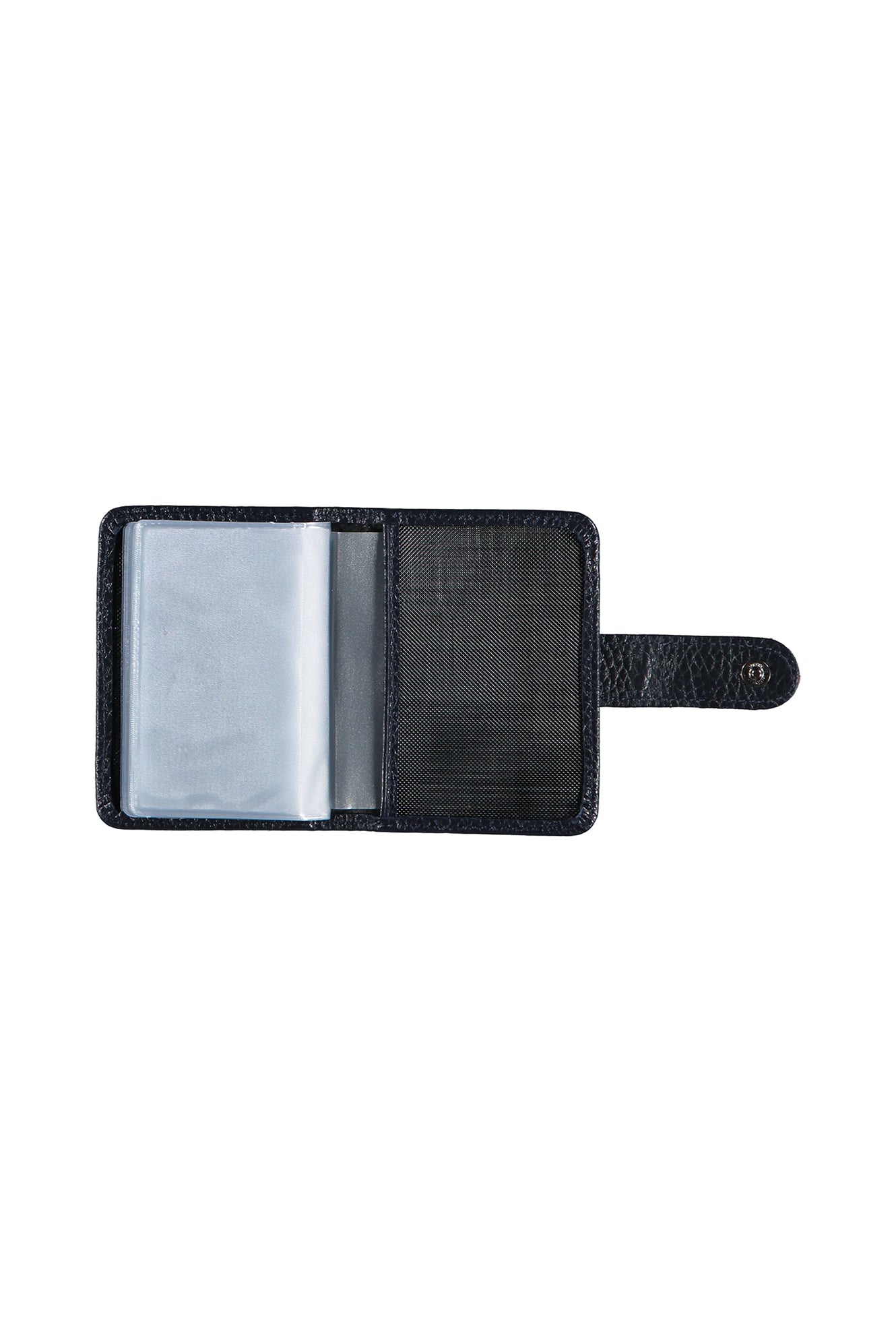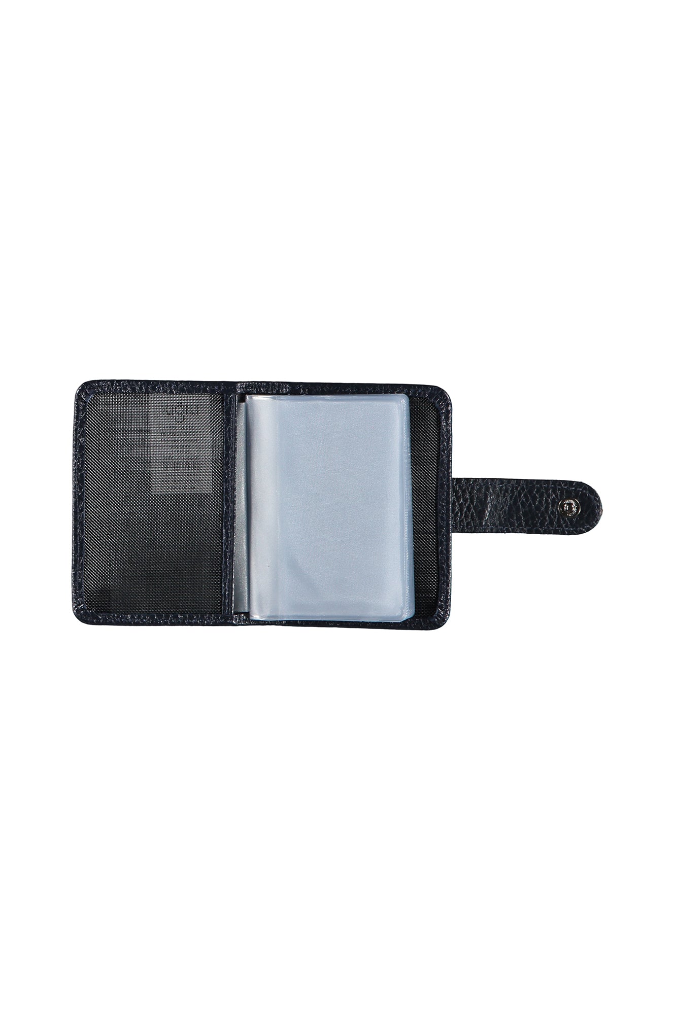 Koyu Lacivert Desenli Çıtçıtlı Şeffaf Deri Kartlık