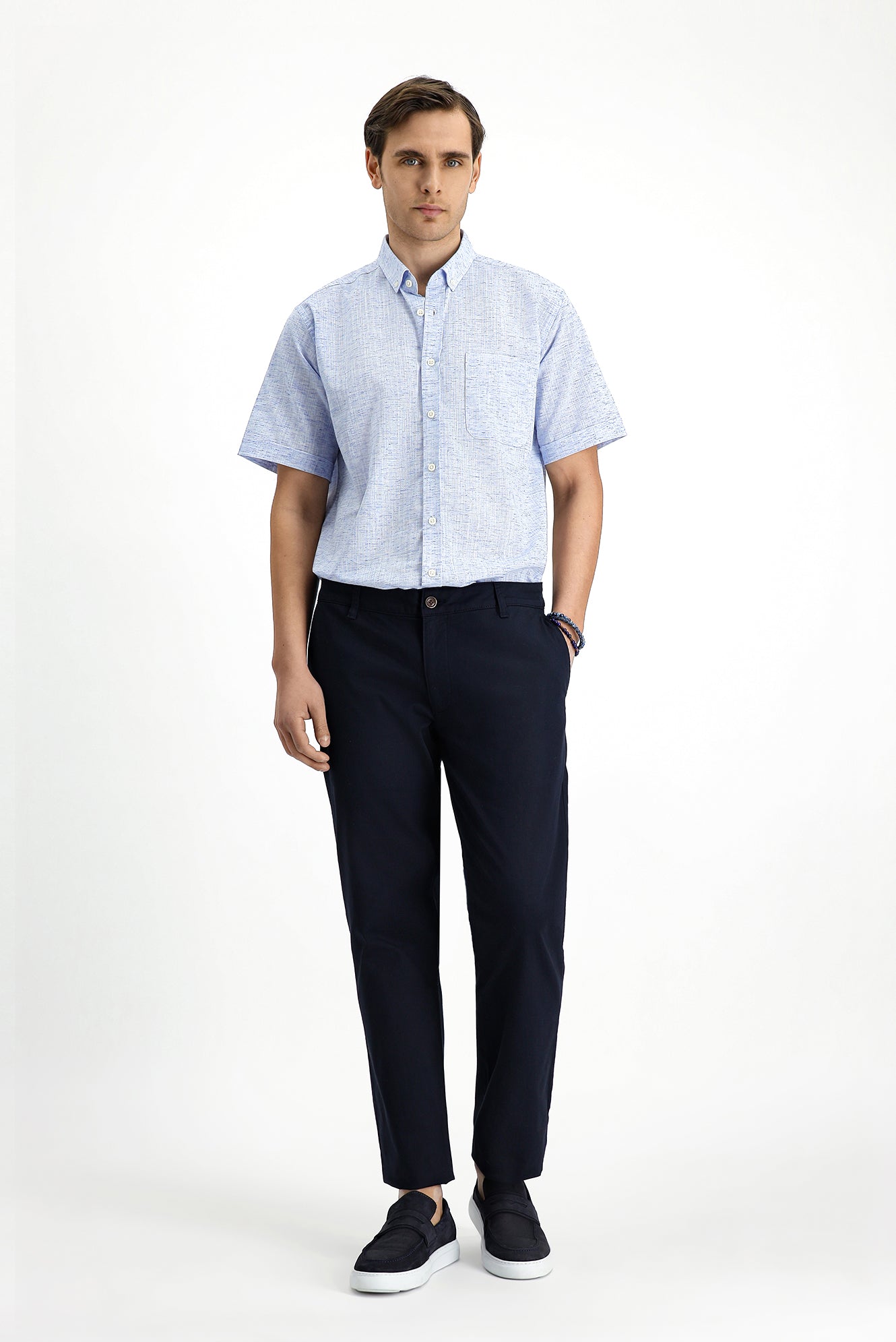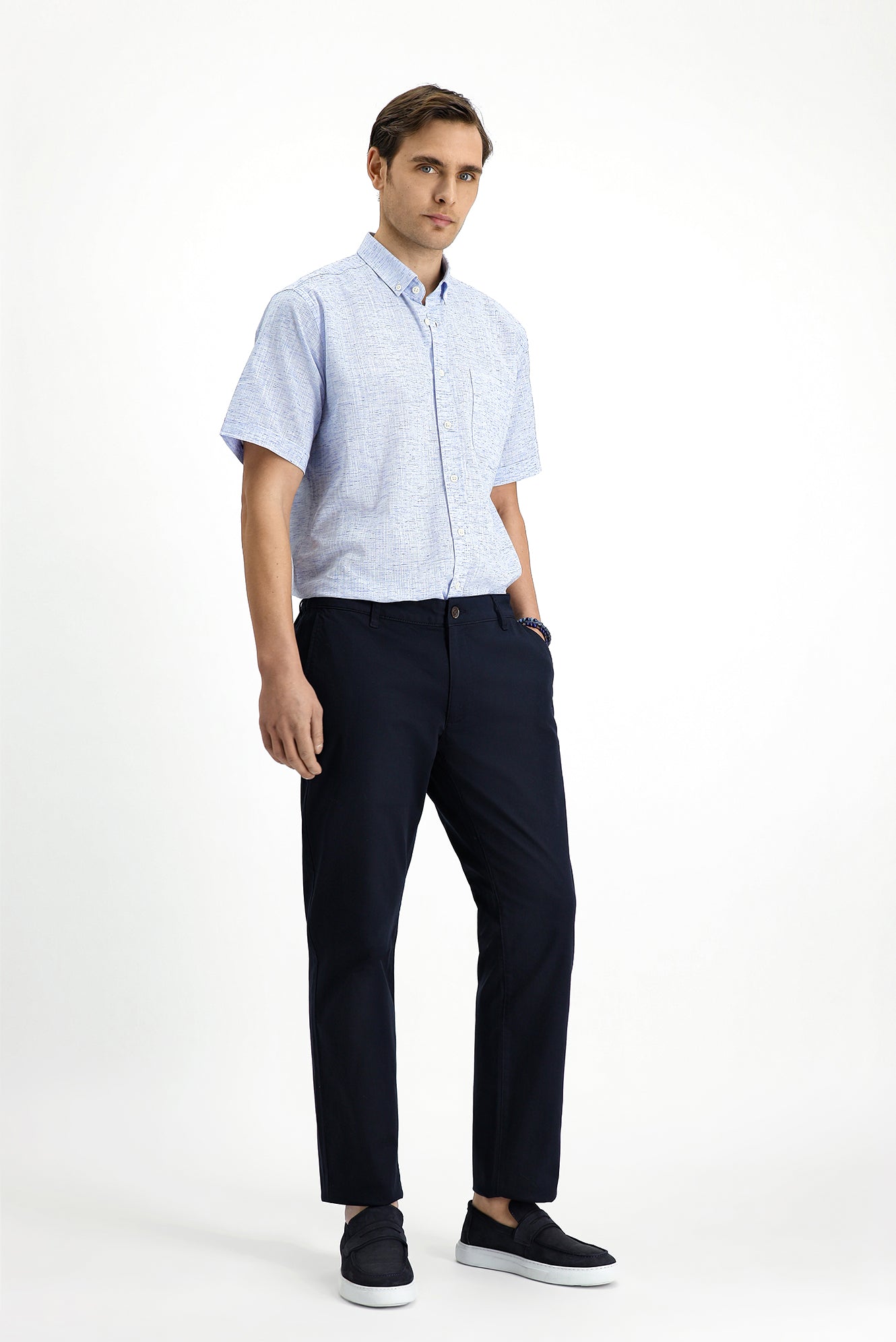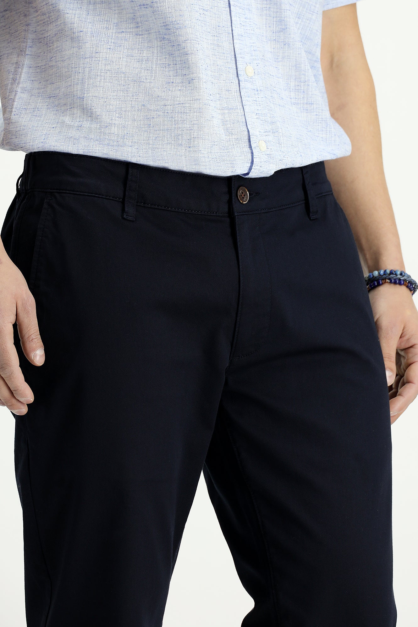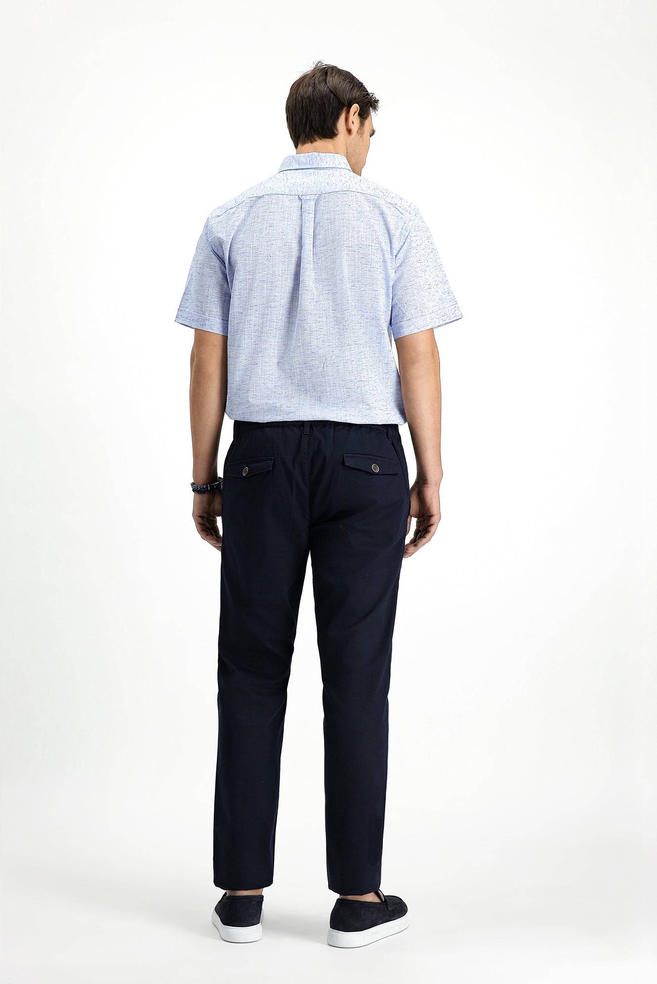 Koyu Lacivert Slim Fit Dar Kesim Beli Lastikli Likralı Kanvas / Chino Pantolon