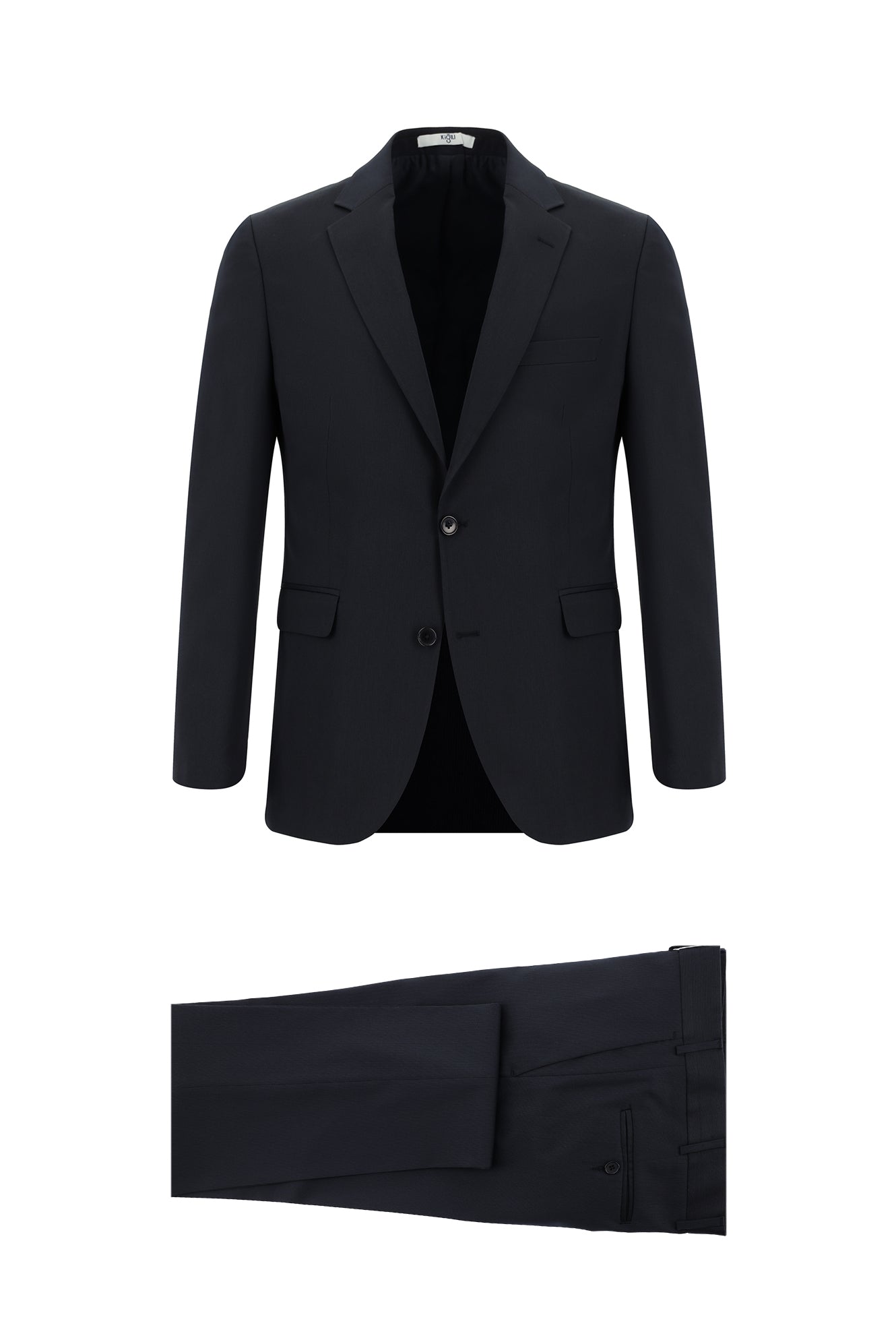 Koyu Lacivert Slim Fit Dar Kesim Desenli Klasik Takım Elbise