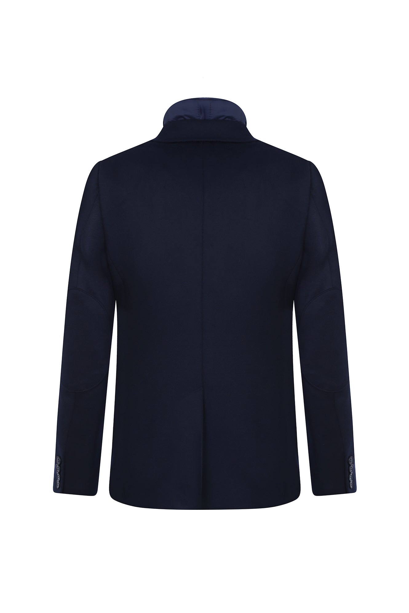 Koyu Lacivert Slim Fit Dar Kesim Dik Yaka Ceket