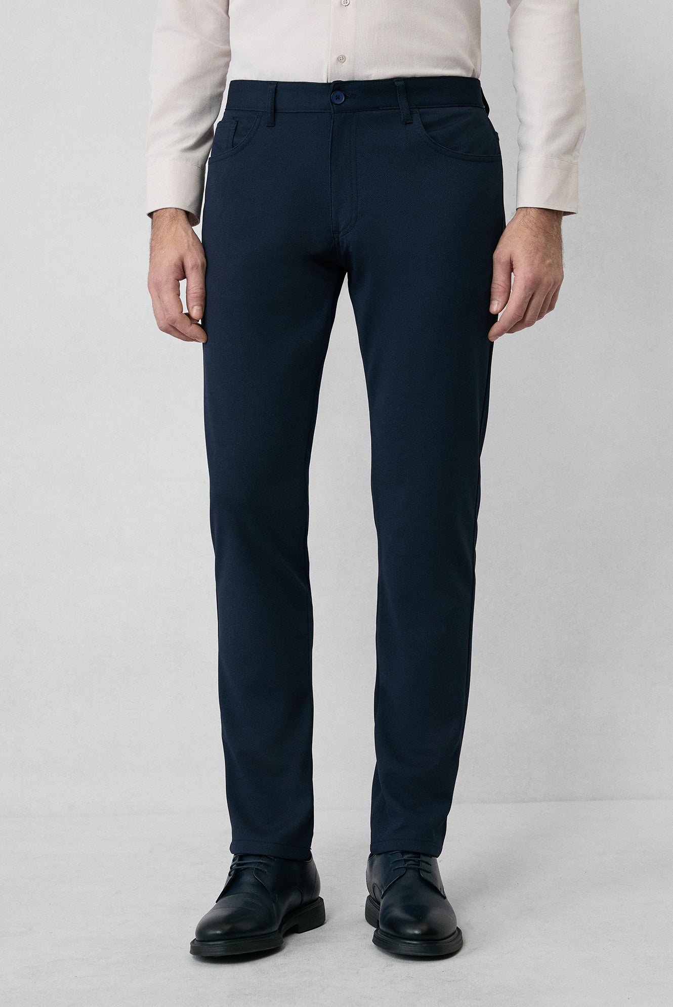 Koyu Lacivert 7 Drop Slim Fit Dar Kesim Kanvas / Chino Pantolon