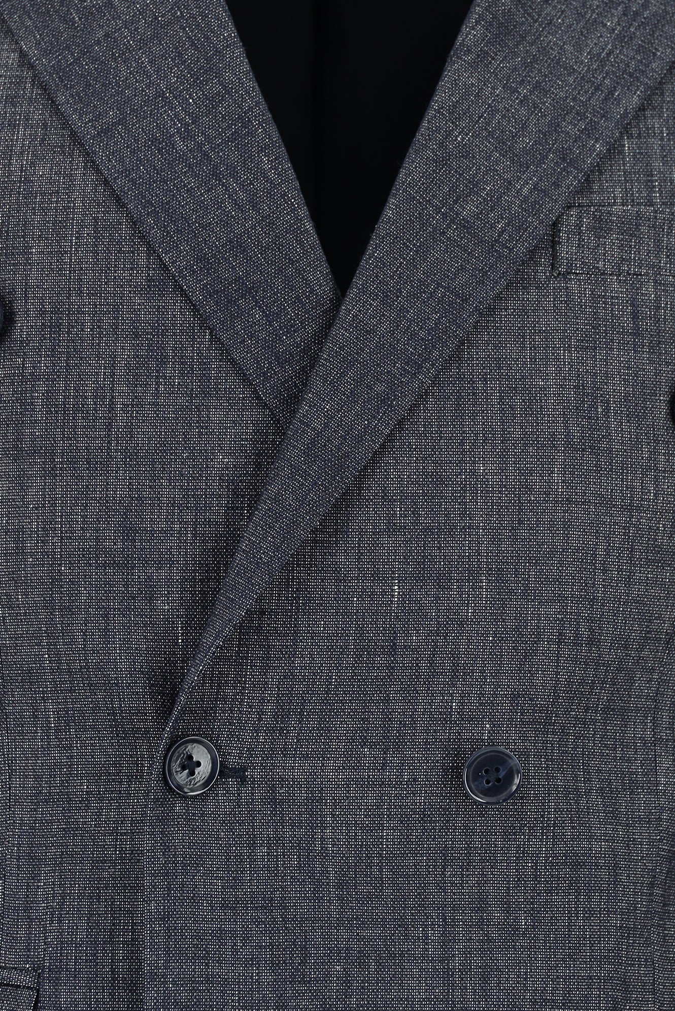 Koyu Lacivert 7 Drop Slim Fit Dar Kesim Keten Karışımlı Kruvaze Takım Elbise
